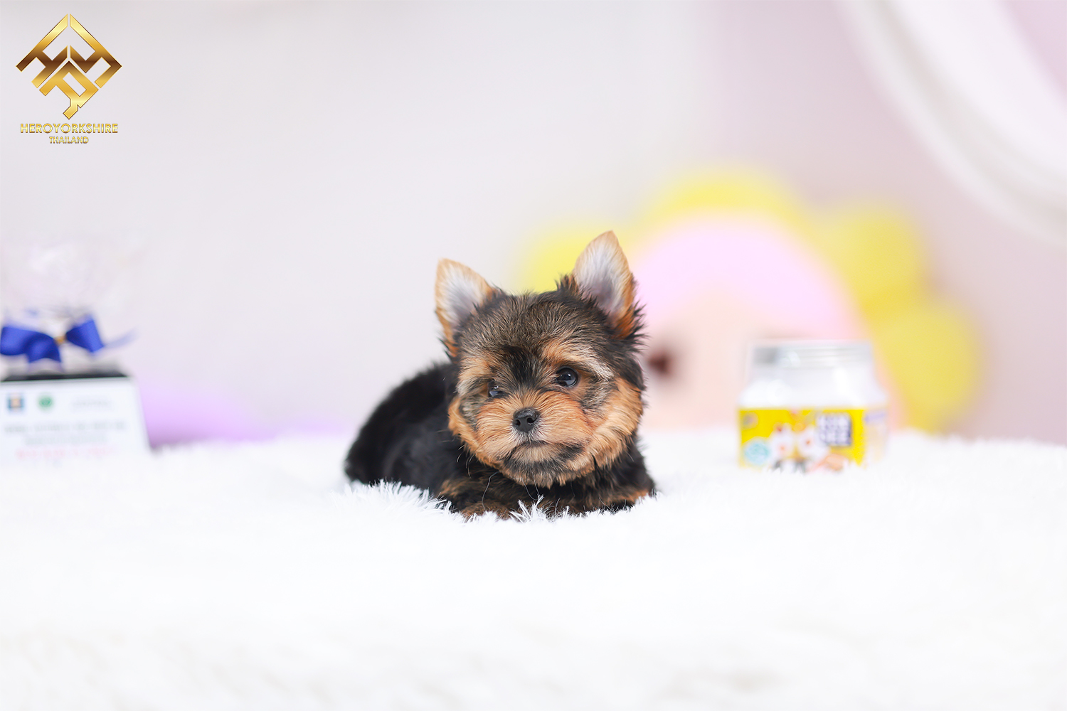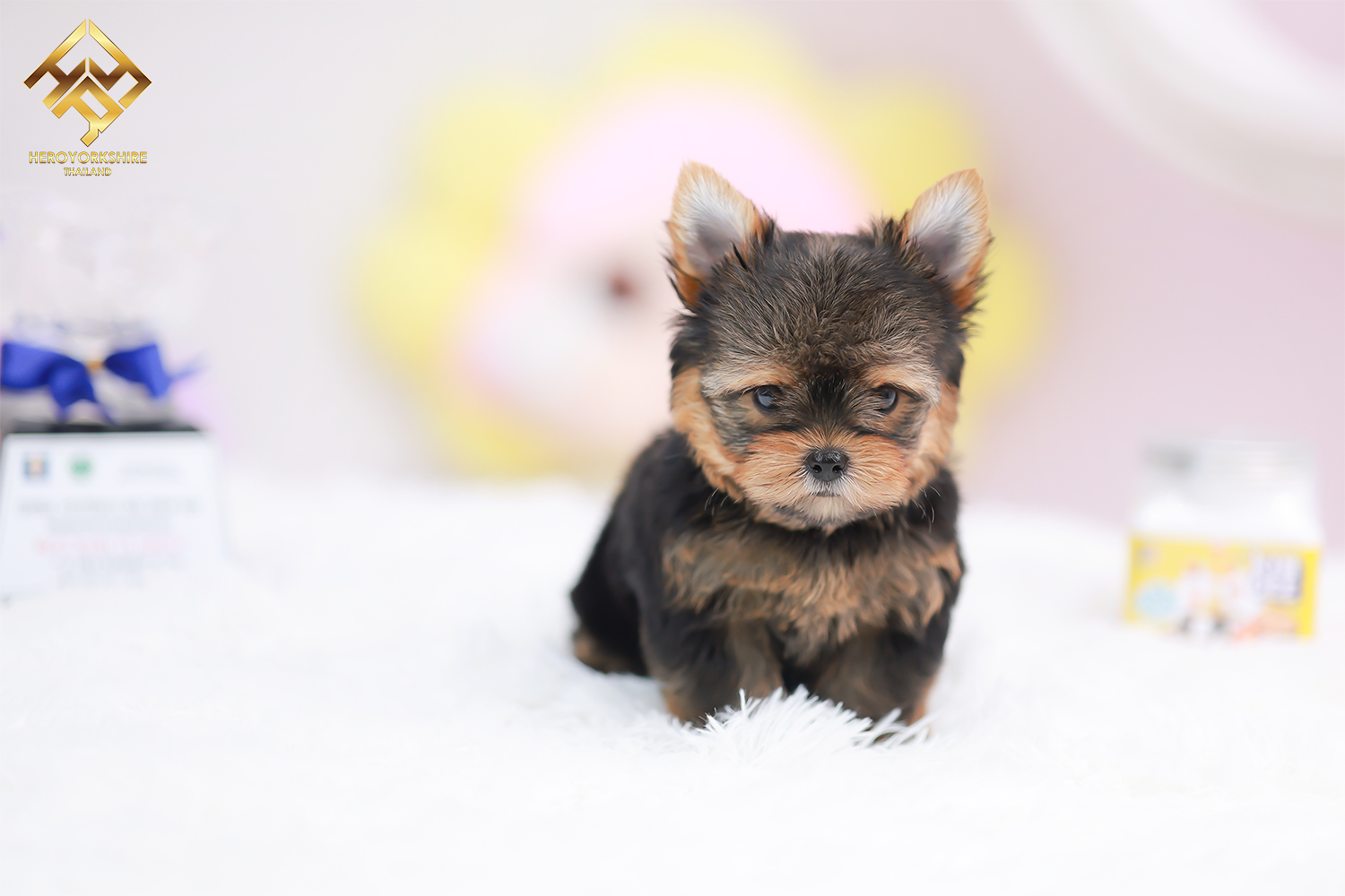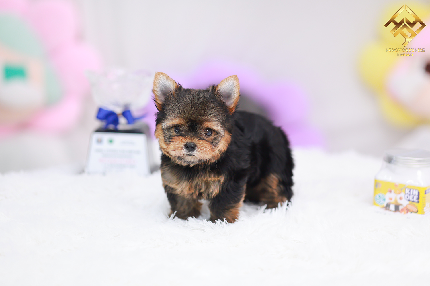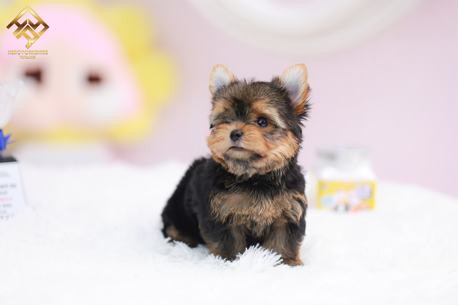 ยอร์คเชียร์ เทอร์เรีย HYM-50506 เพศชาย สีแบล็คแทน อายุ 2 เดือน ตัวเล็ก ขาสั้น หน้าสั้น ขนแน่นฟู