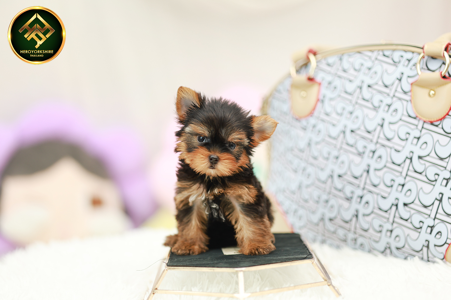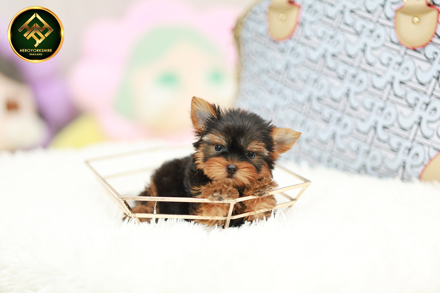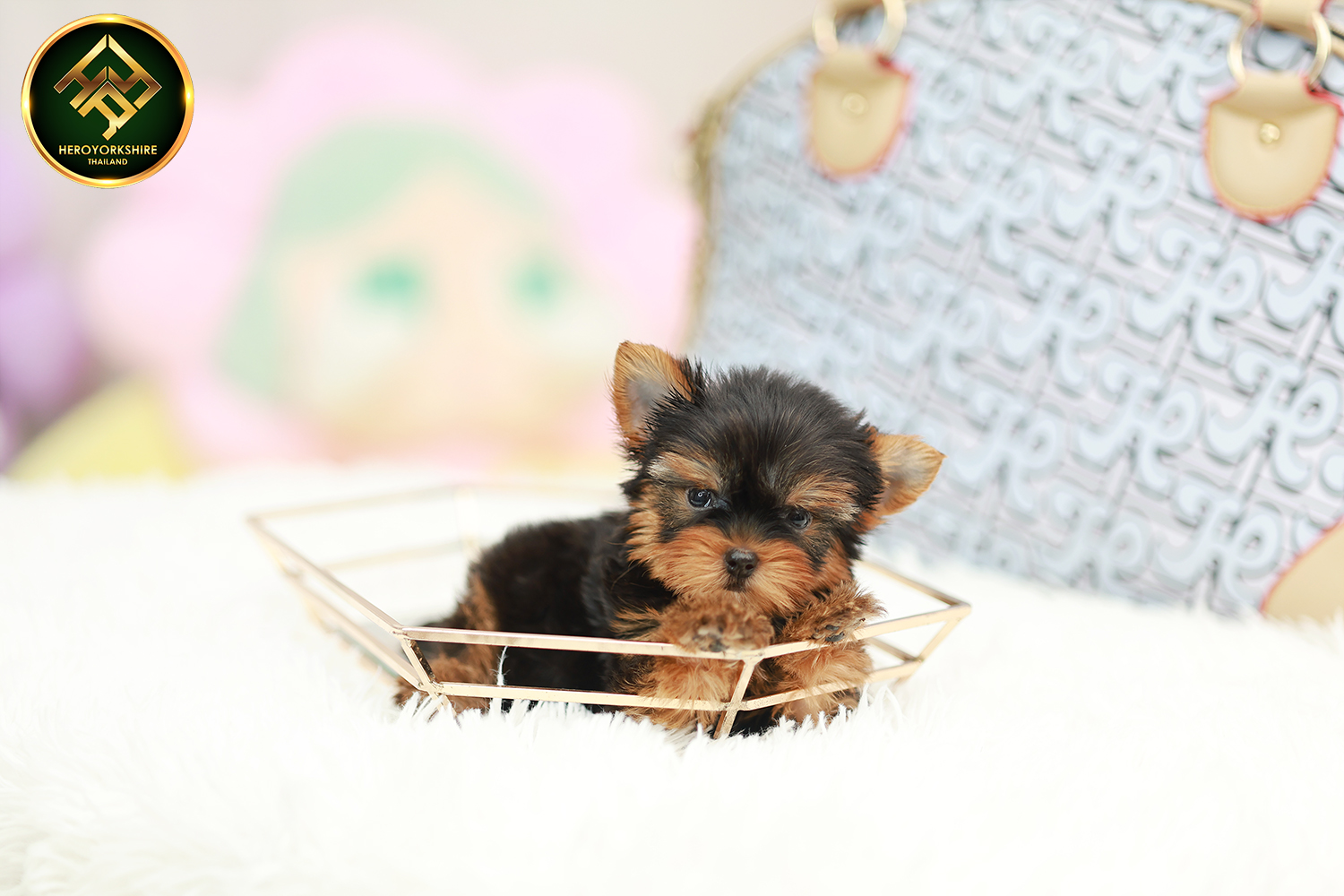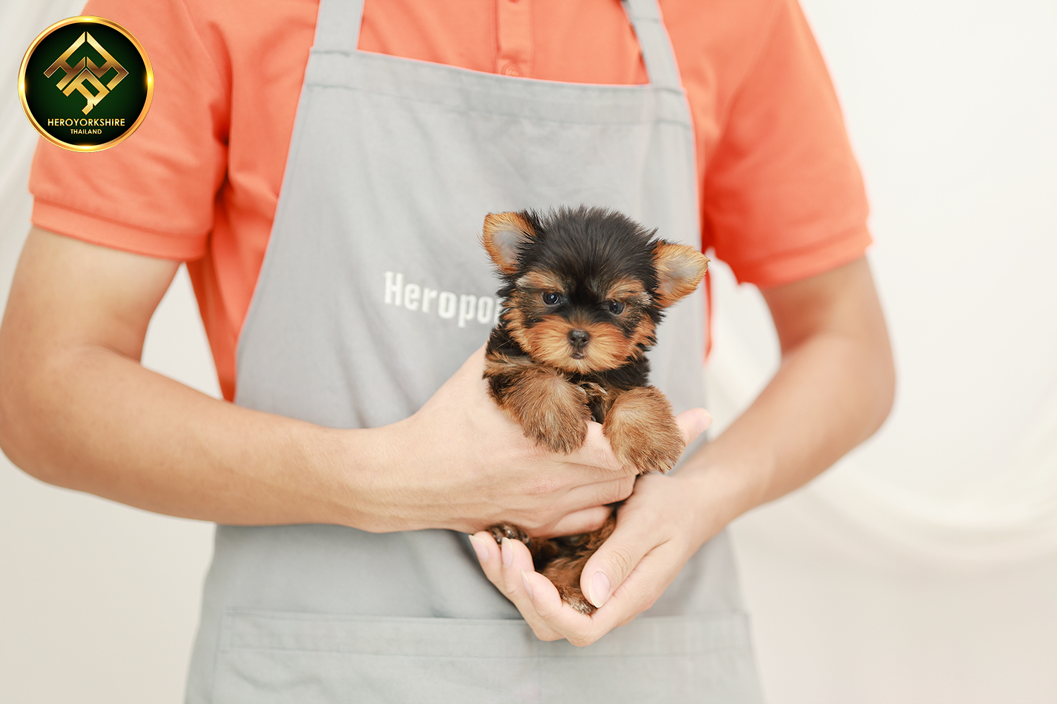 ยอร์คเชียร์ เทอร์เรีย HYF-50502 เพศหญิง สีแบล็คแทน อายุ 2 เดือน ตัวเล็ก ขาสั้น หน้าสั้น ขนแน่นฟู