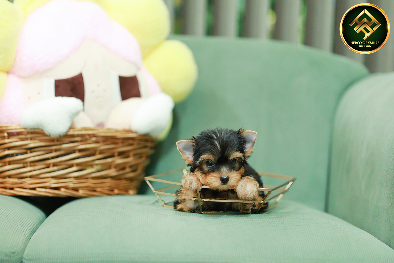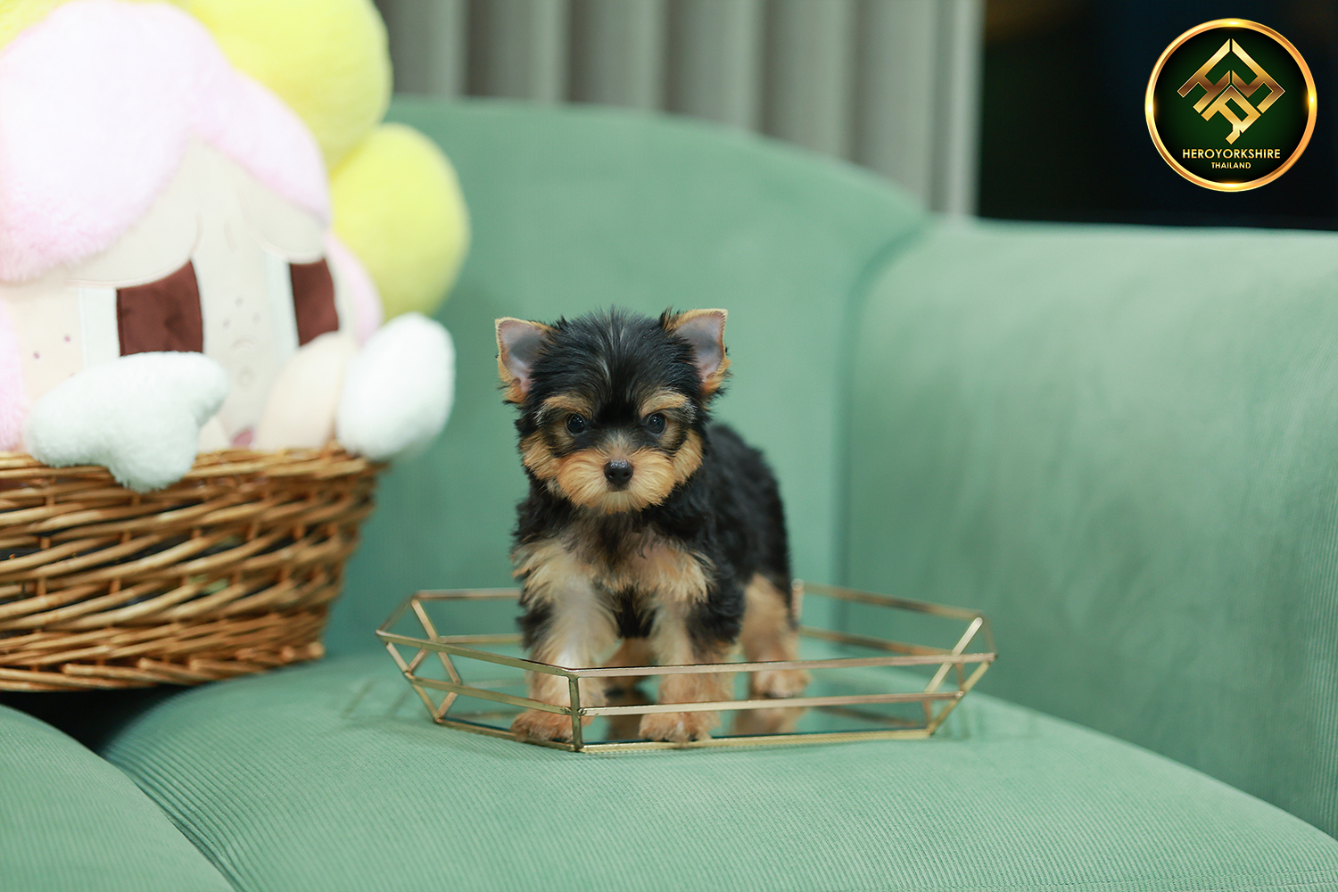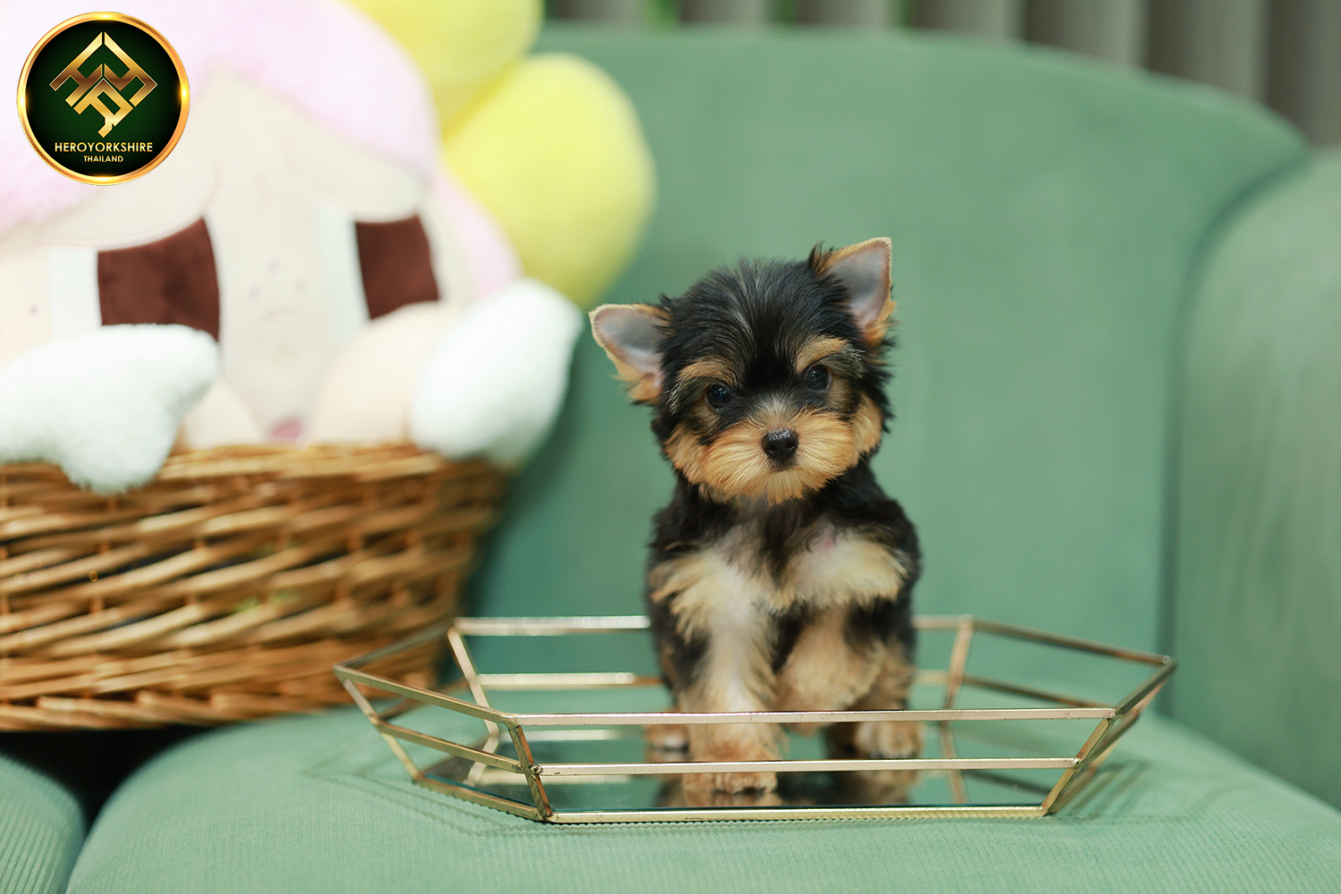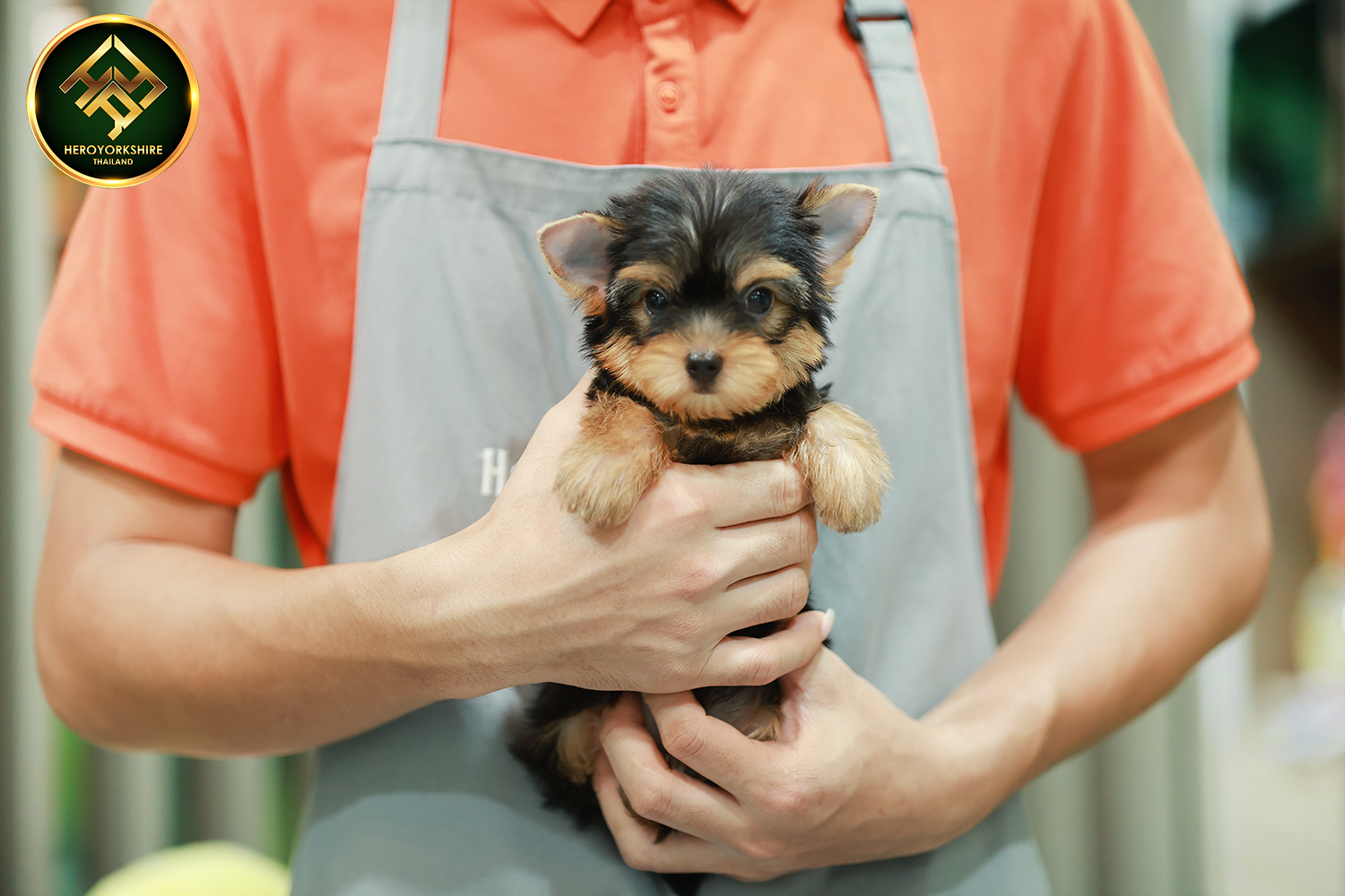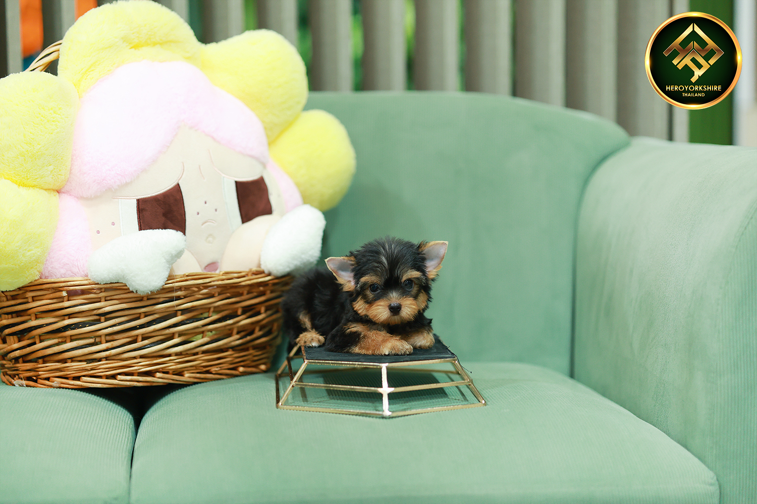 ยอร์คเชียร์ เทอร์เรีย HYF-50513 เพศหญิง สีซิลเวอร์ อายุ 2 เดือน ตัวเล็ก ขาสั้น หน้าสั้น ขนแน่นฟู