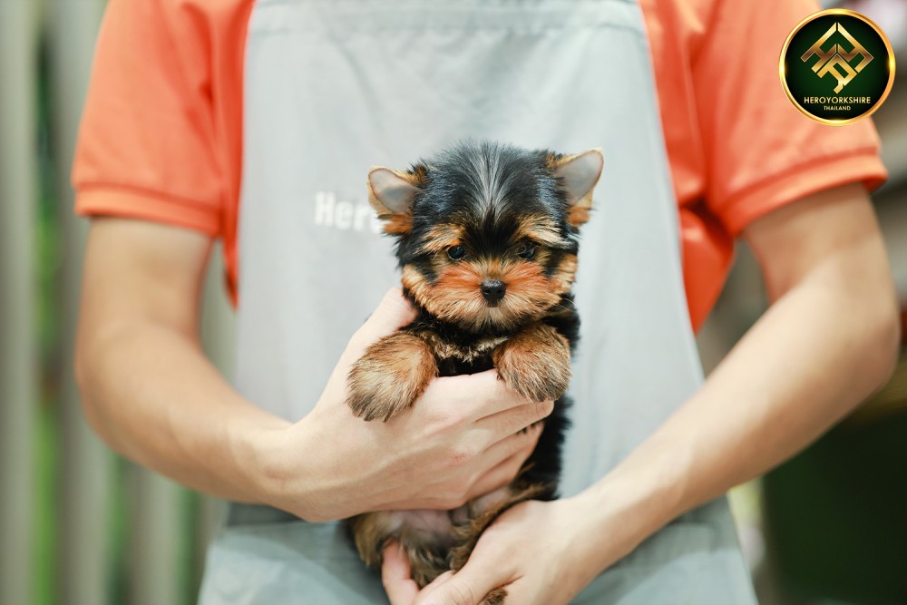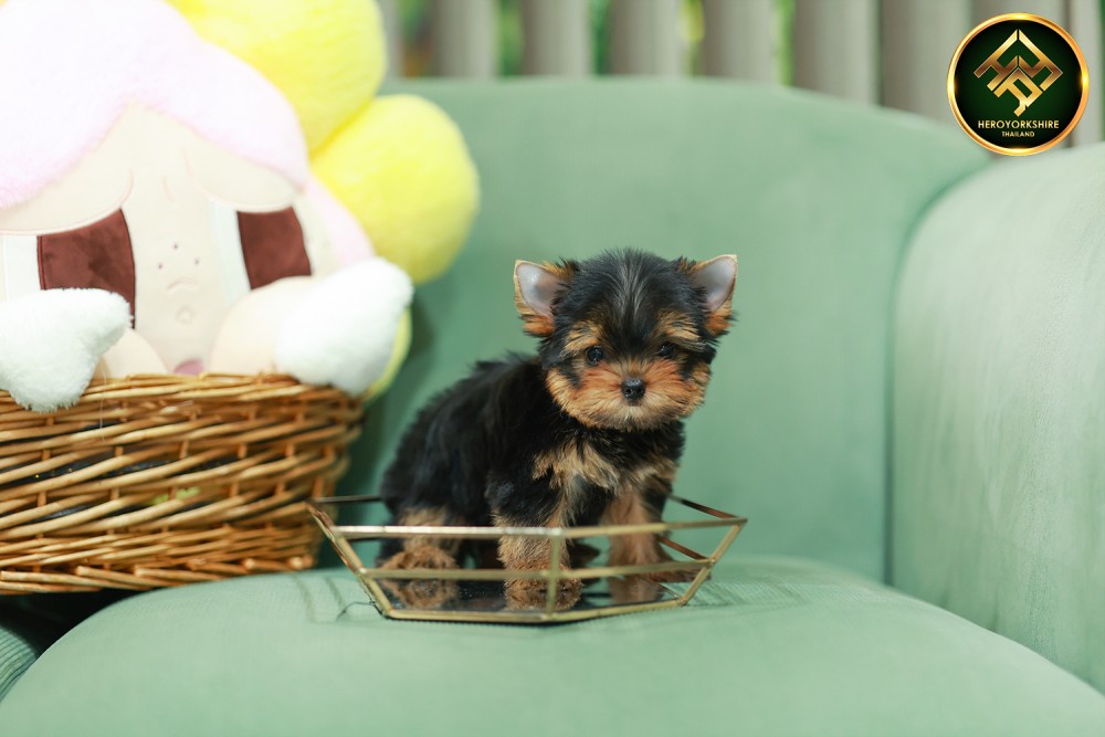ยอร์คเชียร์ เทอร์เรีย HYF-50514 เพศหญิง สีแบล็คแทน อายุ 2 เดือน ตัวเล็ก ขาสั้น หน้าสั้น ขนแน่นฟู