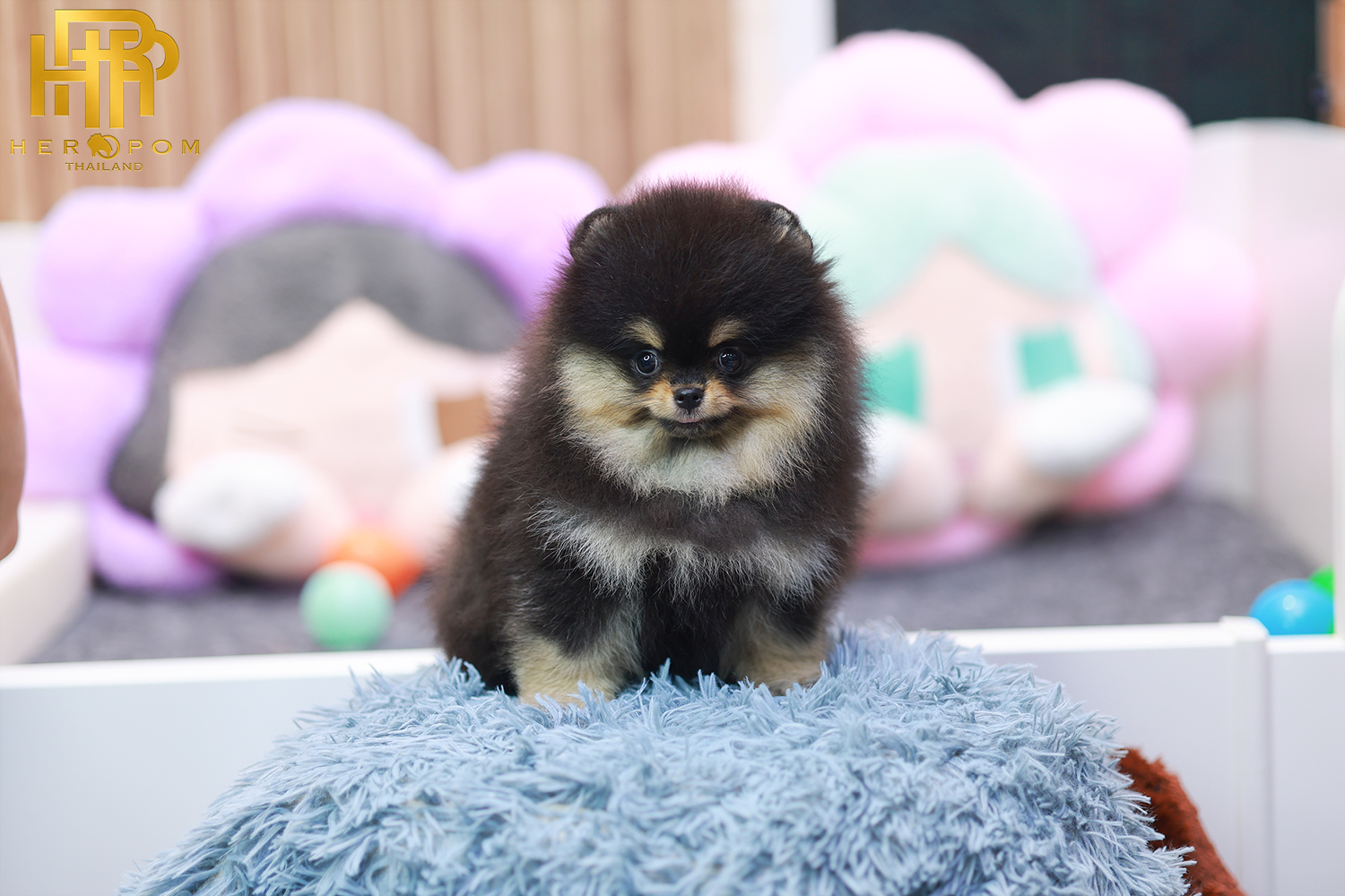 ปอมหน้าหมี ปอมแท้ ปอมเมอเรเนียน HRF-50863 เพศหญิง สีแบล็คแทน อายุ 2 เดือน ตัวเล็ก ขาสั้น หน้าสั้น ขนแน่นฟู