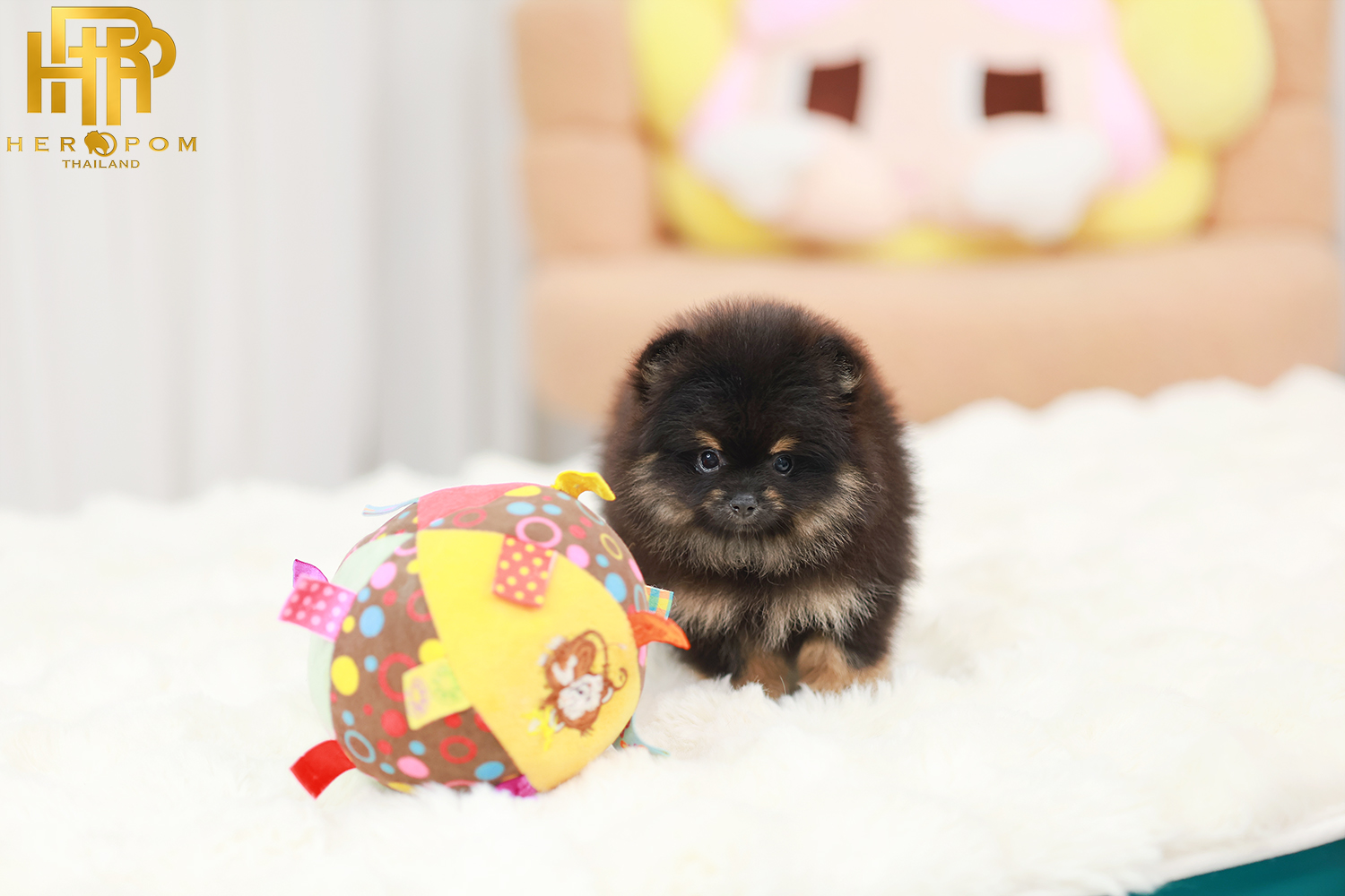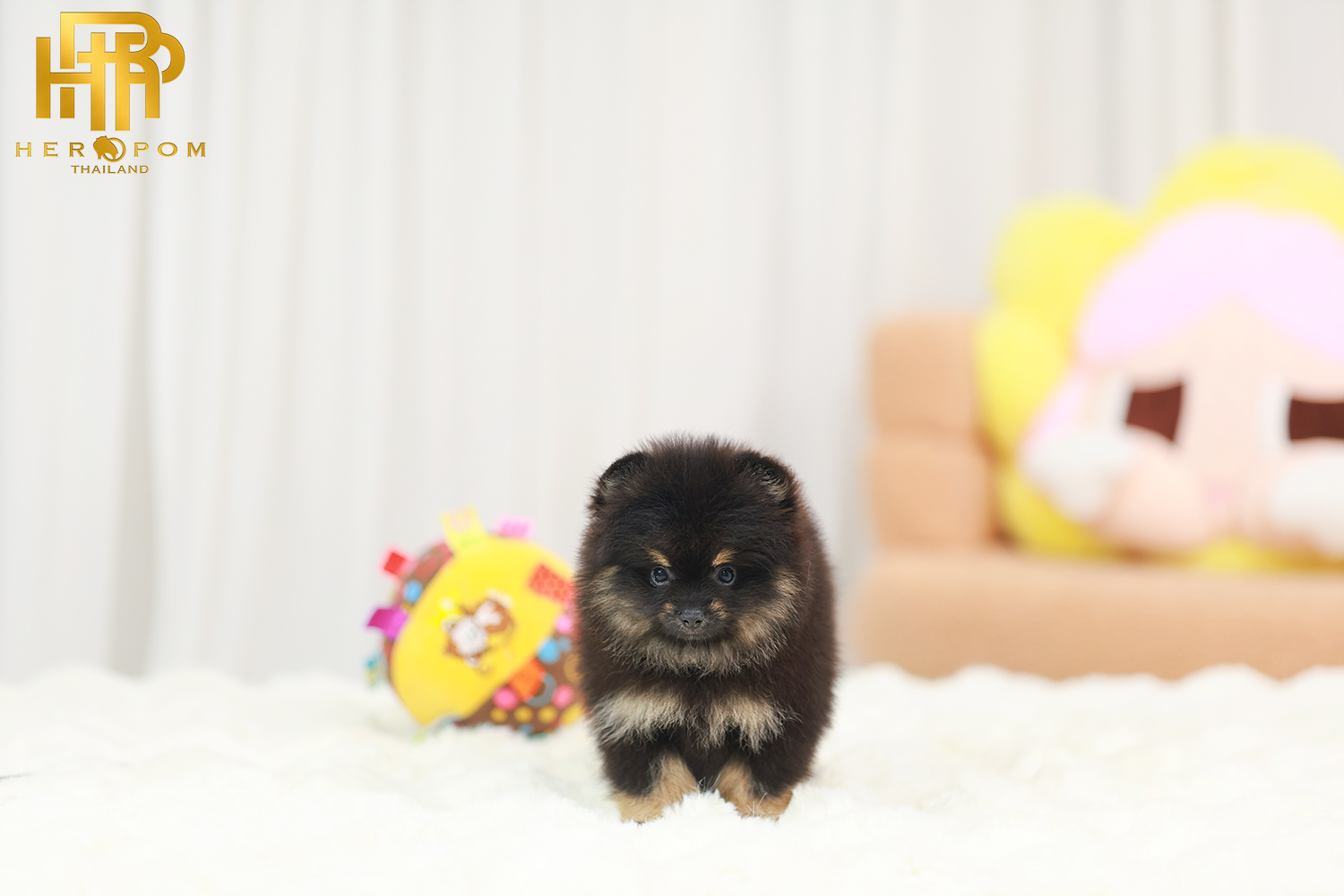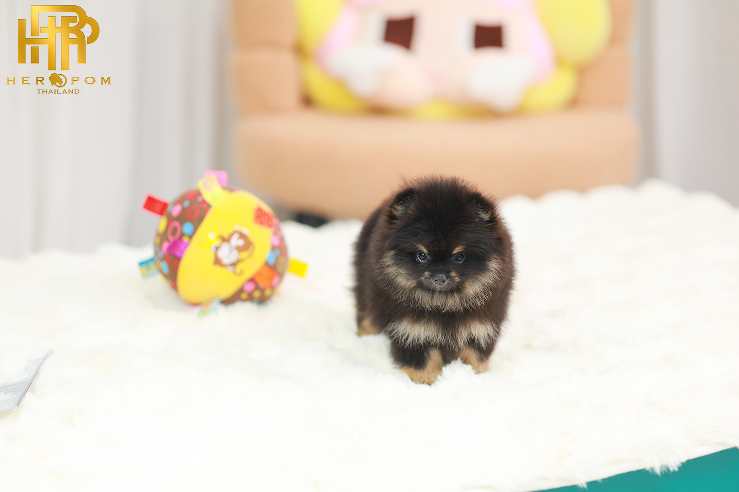 ปอมหน้าหมี ปอมแท้ ปอมเมอเรเนียน HRF-50567 เพศหญิง สีแบล็คแทน อายุ 2 เดือน ตัวเล็ก ขาสั้น หน้าสั้น ขนแน่นฟู