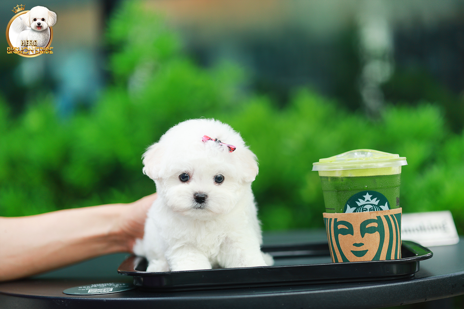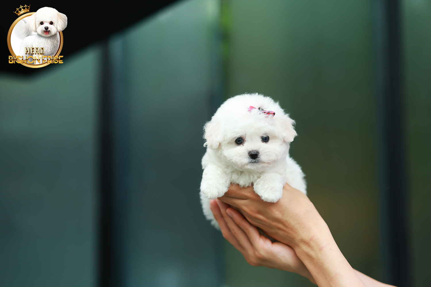 บิซอง ฟริเซ่ BCF-50931 เพศหญิง สีขาว อายุ 2 เดือน ตัวเล็ก ขาสั้น หน้าสั้น ขนแน่นฟู