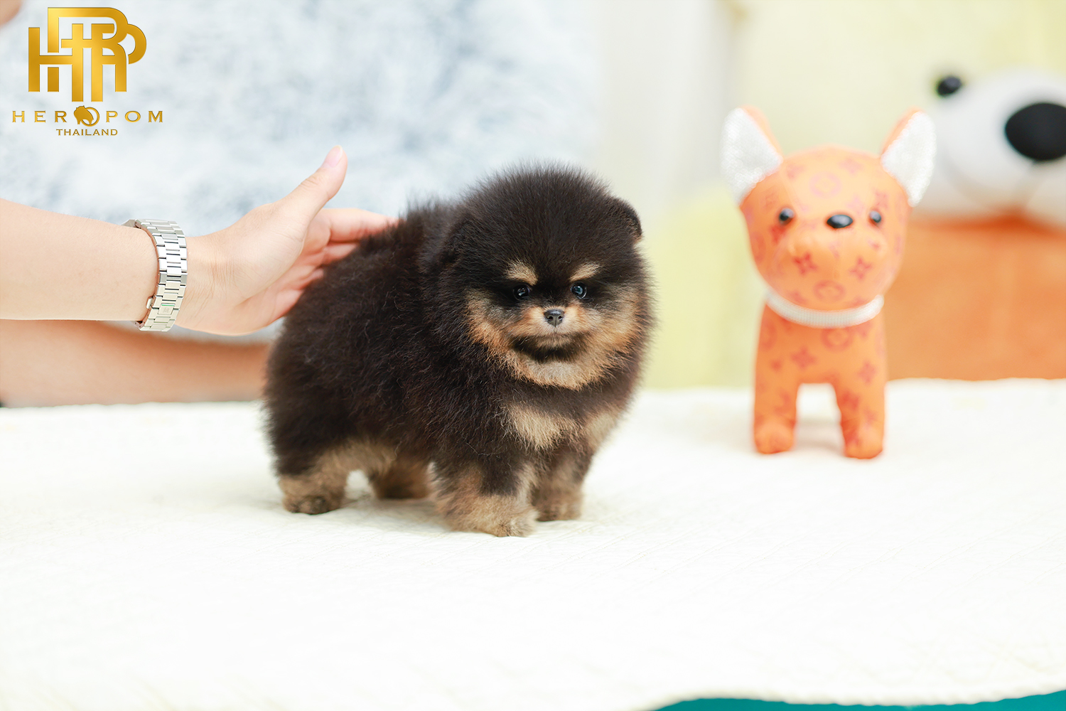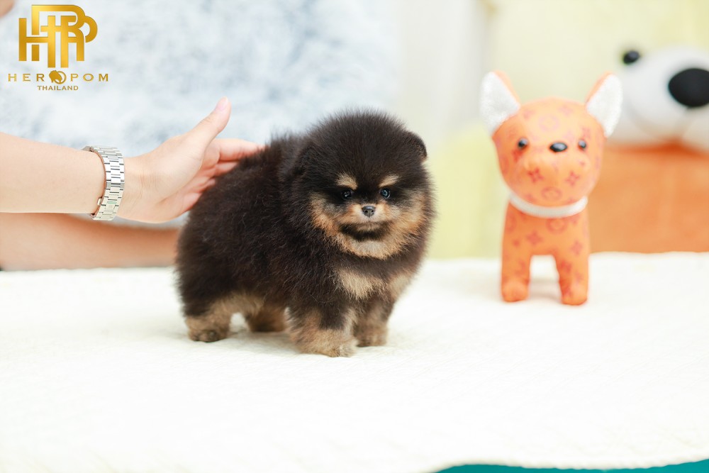 ปอมหน้าหมี ปอมแท้ ปอมเมอเรเนียน HRM-50939 เพศชาย สีแบล็คแทน อายุ 2 เดือน ตัวเล็ก ขาสั้น หน้าสั้น ขนแน่นฟู