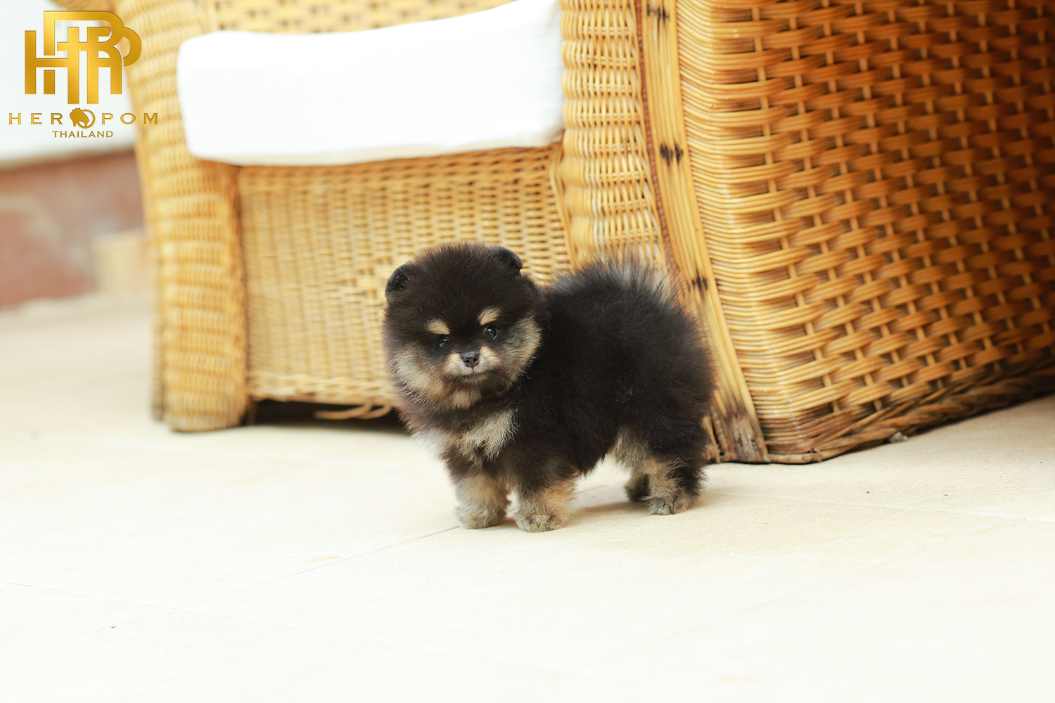 ปอมหน้าหมี ปอมแท้ ปอมเมอเรเนียน HRM-50547 เพศชาย สีแบล็คแทน อายุ 2 เดือน ตัวเล็ก ขาสั้น หน้าสั้น ขนแน่นฟู