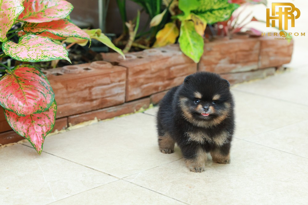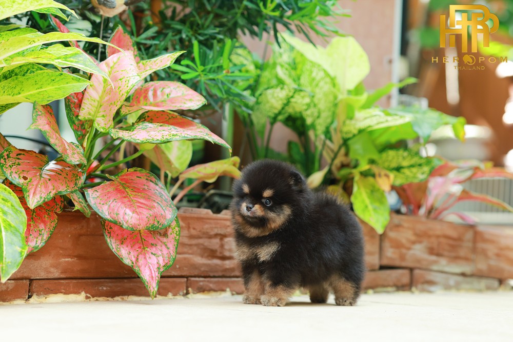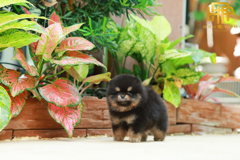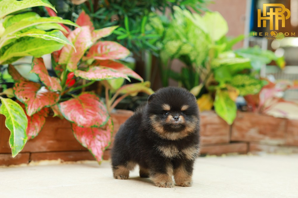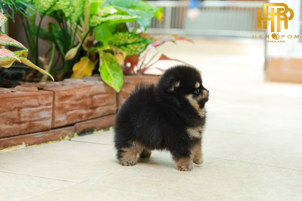 ปอมหน้าหมี ปอมแท้ ปอมเมอเรเนียน HRF-50907 เพศหญิง สีแบล็คแทน อายุ 2 เดือน ตัวเล็ก ขาสั้น หน้าสั้น ขนแน่นฟู