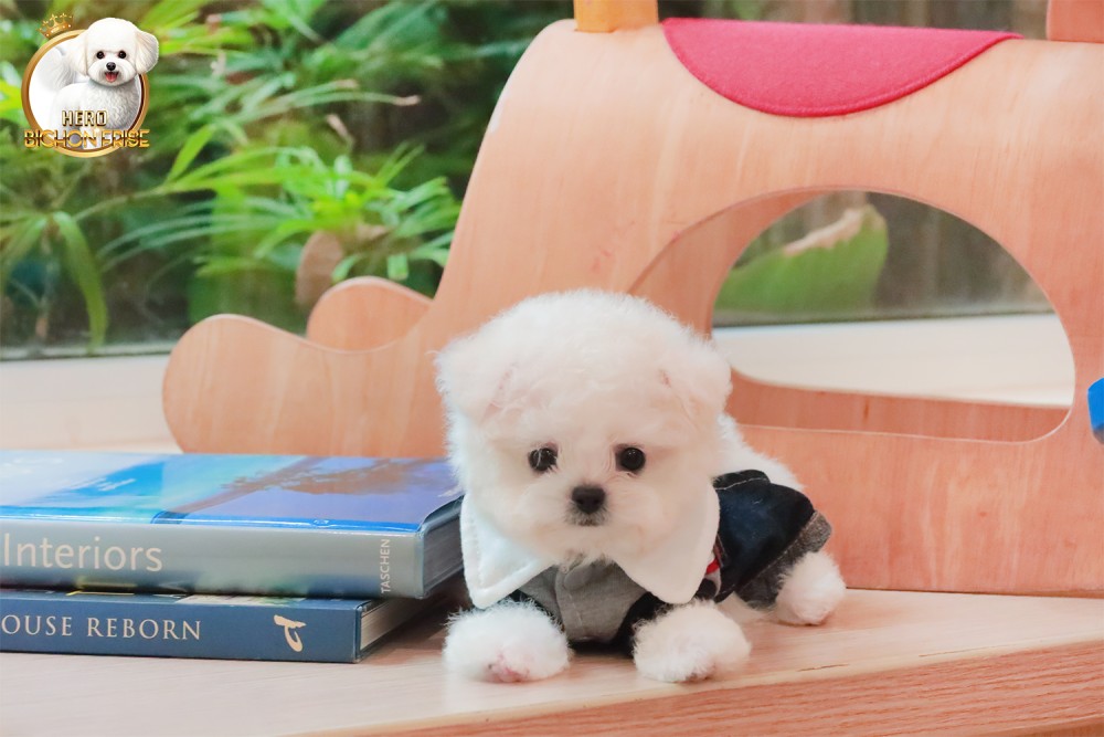 บิซอง ฟริเซ่ BCM-50933 เพศชาย สีขาว อายุ 2 เดือน ตัวเล็ก ขาสั้น หน้าสั้น ขนแน่นฟู