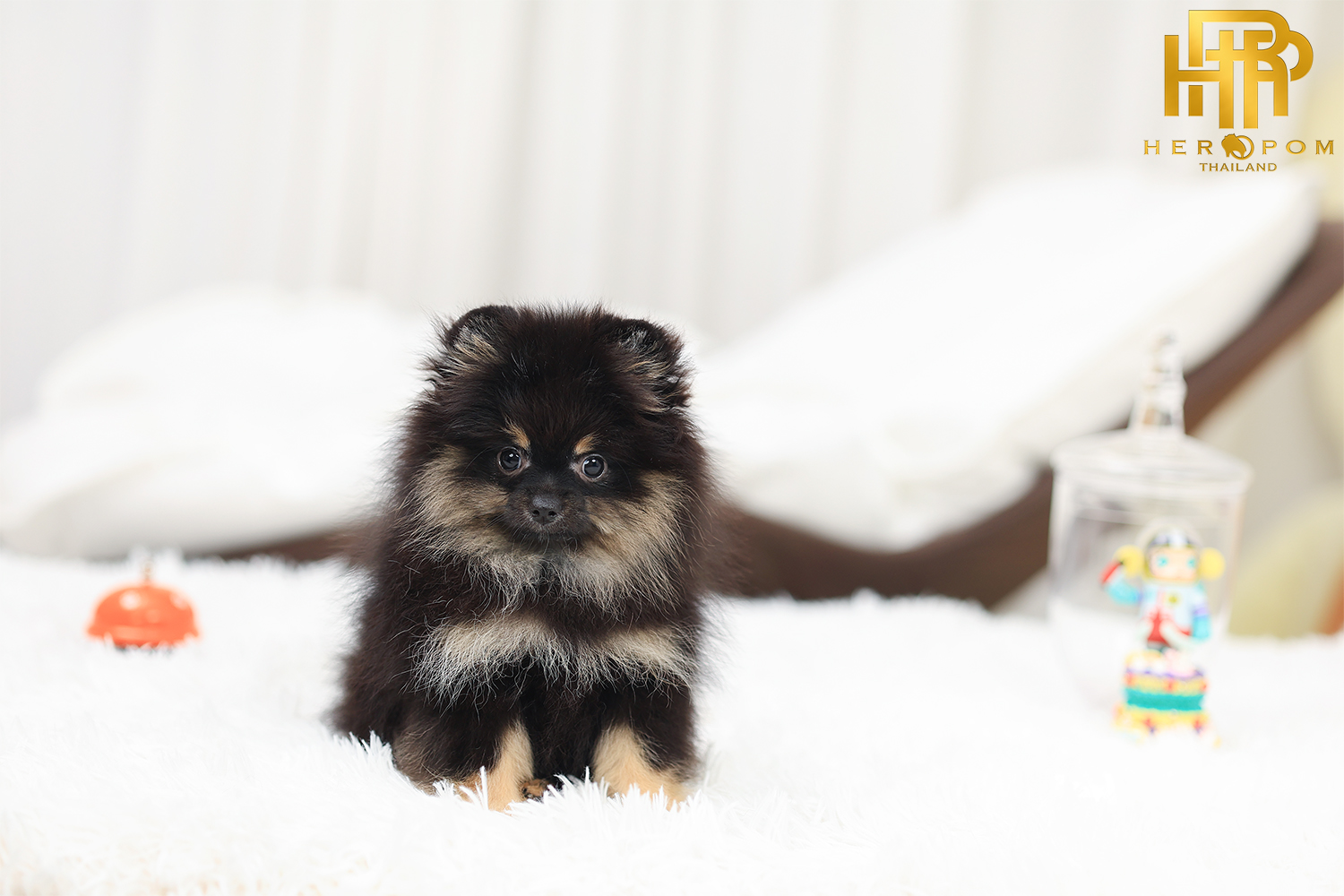 ปอมหน้าหมี ปอมแท้ ปอมเมอเรเนียน HRF-50567 เพศหญิง สีแบล็คแทน อายุ 2 เดือน ตัวเล็ก ขาสั้น หน้าสั้น ขนแน่นฟู
