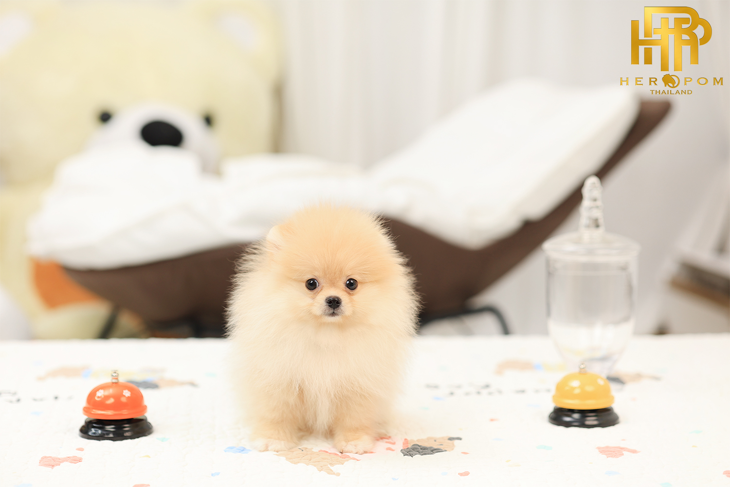 ปอมหน้าหมี ปอมแท้ ปอมเมอเรเนียน HRF-50549 เพศหญิง สีครีม อายุ 2 เดือน ตัวเล็ก ขาสั้น หน้าสั้น ขนแน่นฟู