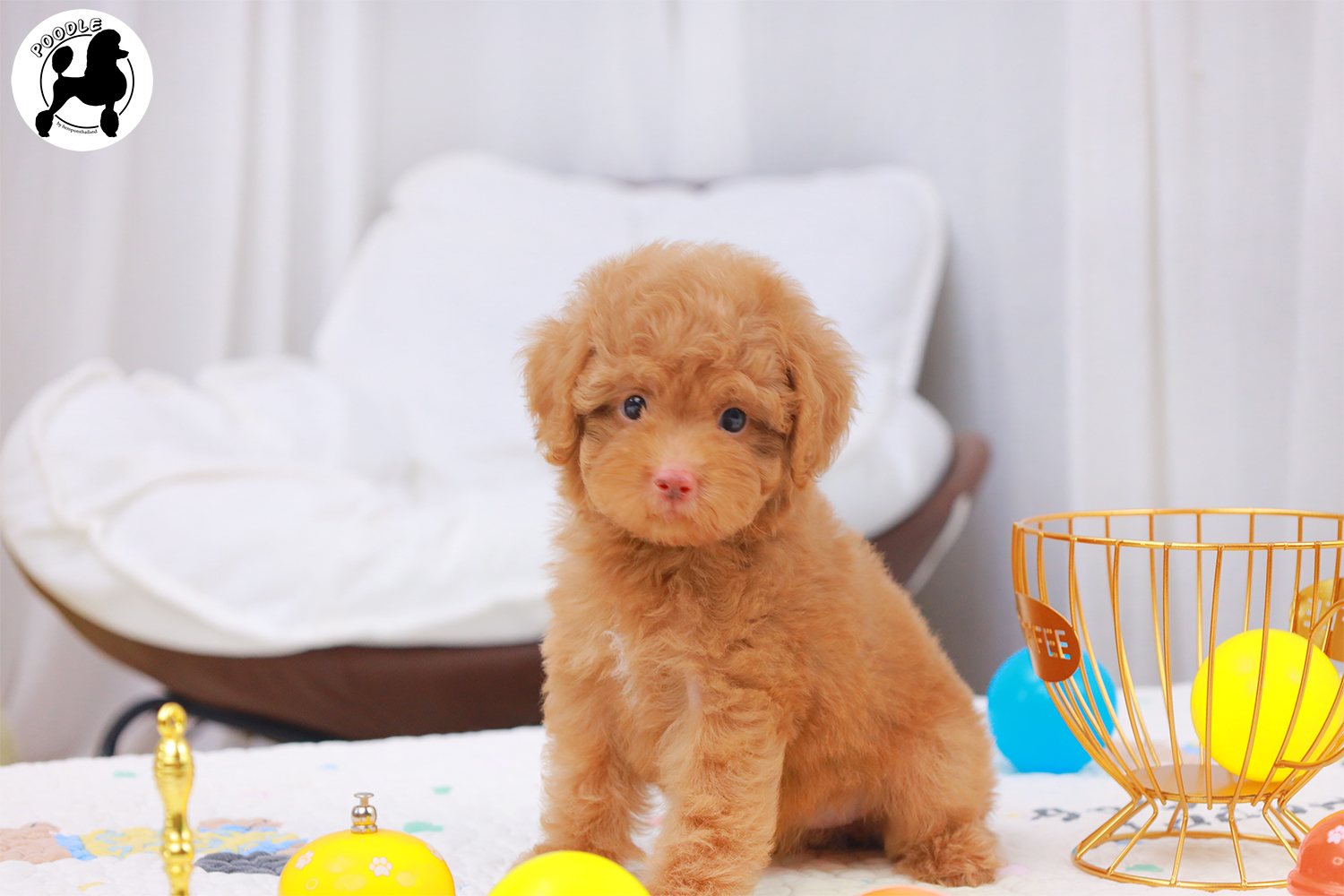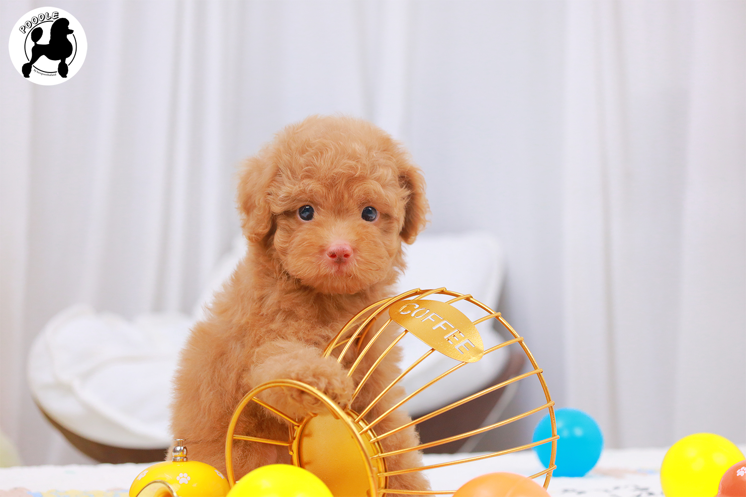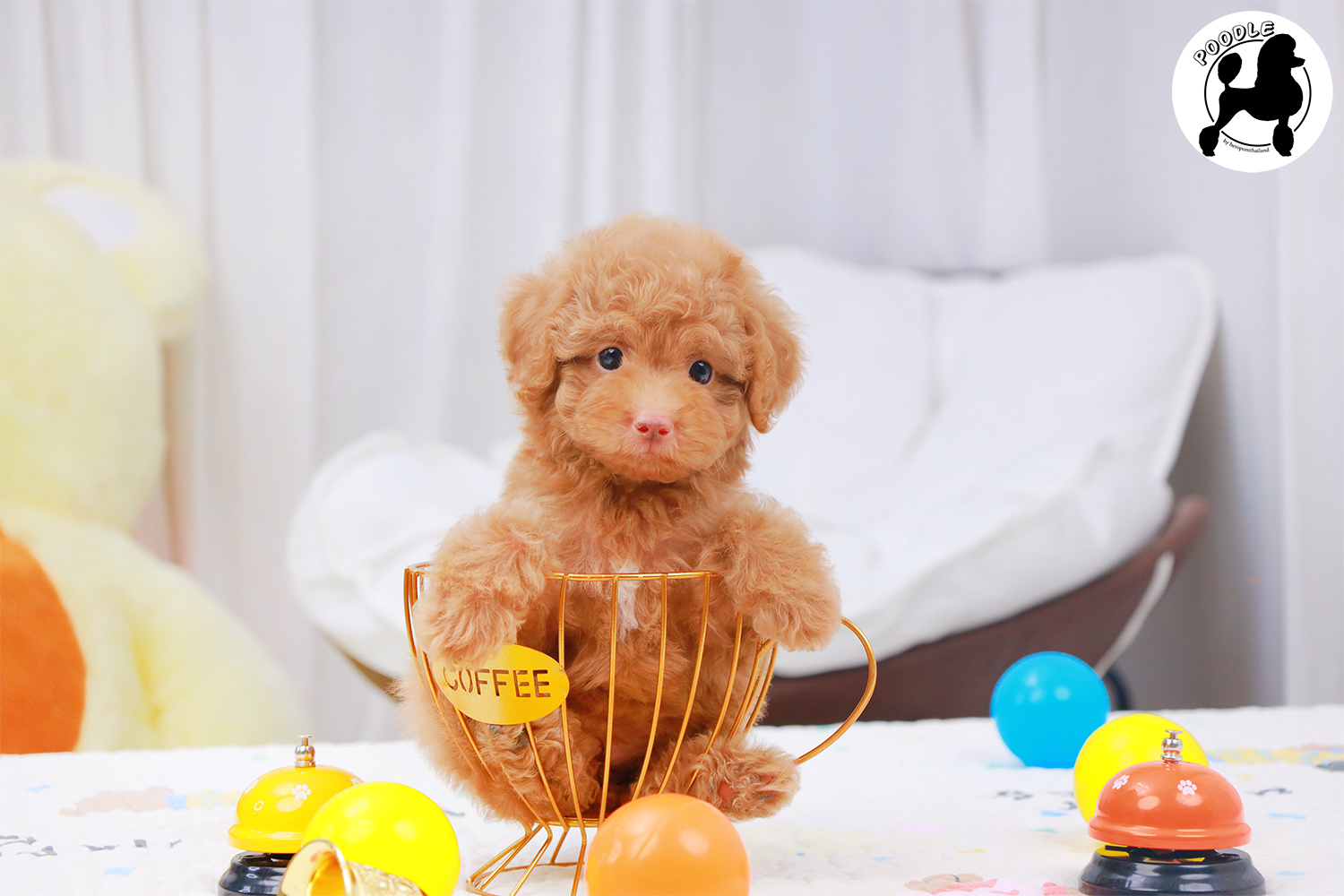 พุดเดิ้ล PDF-50468 เพศหญิง สีน้ำตาล อายุ 2 เดือน ตัวเล็ก ขาสั้น หน้าสั้น ขนแน่นฟู