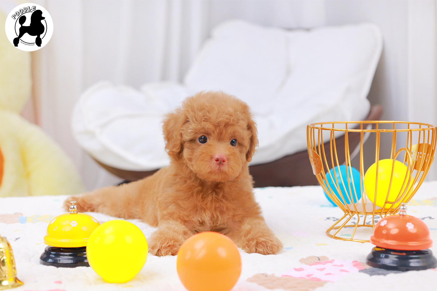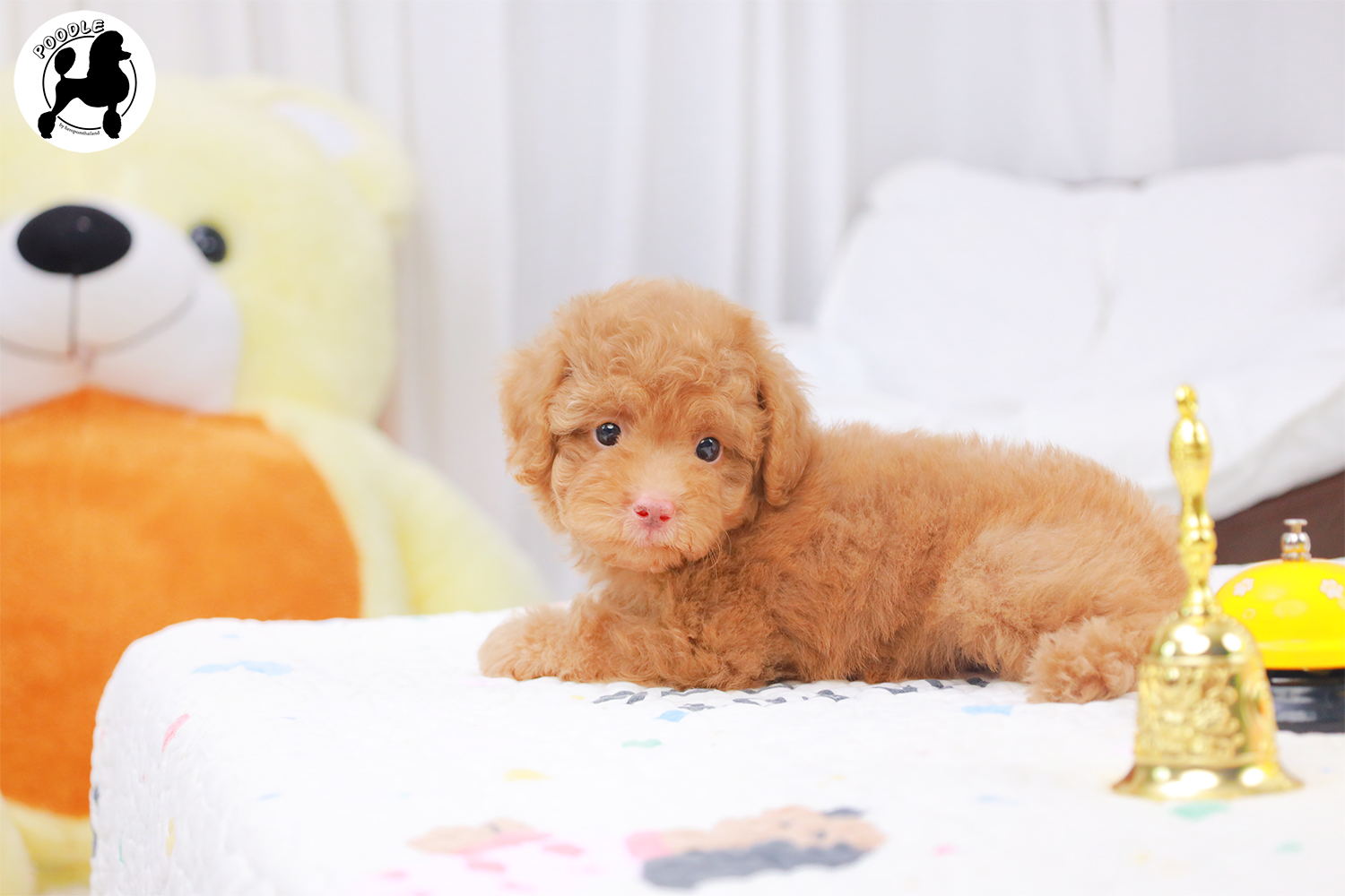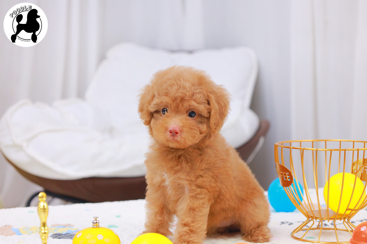 พุดเดิ้ล PDF-50468 เพศหญิง สีน้ำตาล อายุ 2 เดือน ตัวเล็ก ขาสั้น หน้าสั้น ขนแน่นฟู