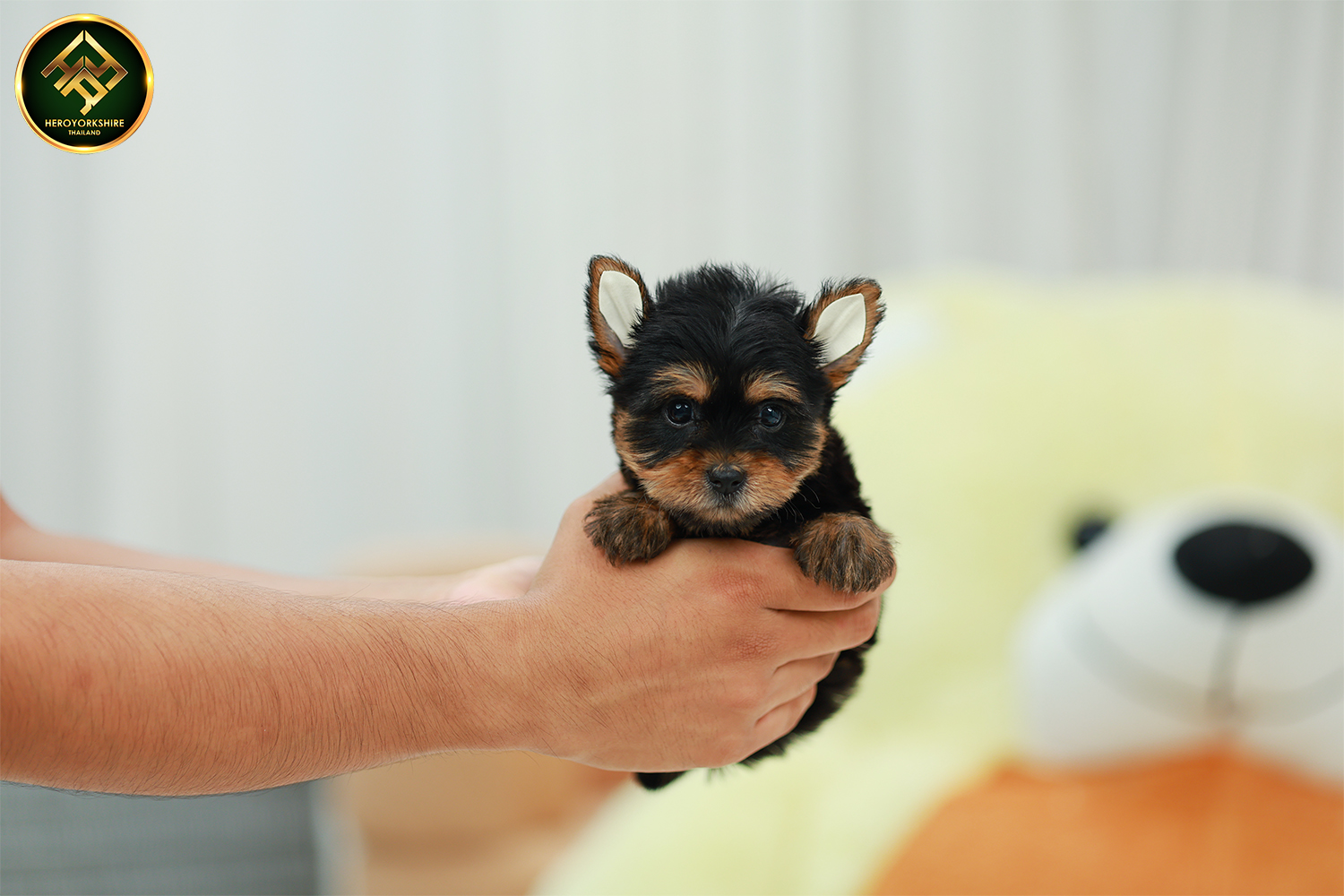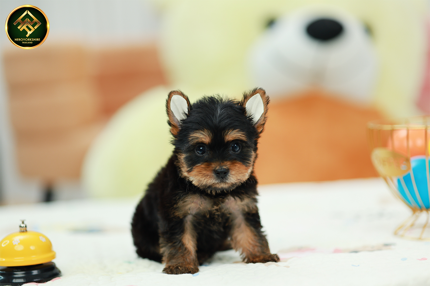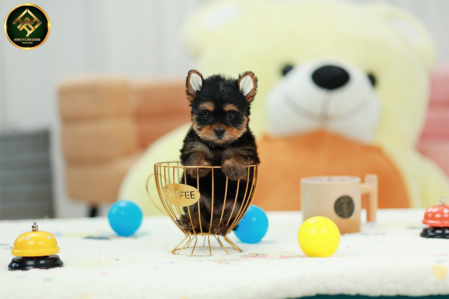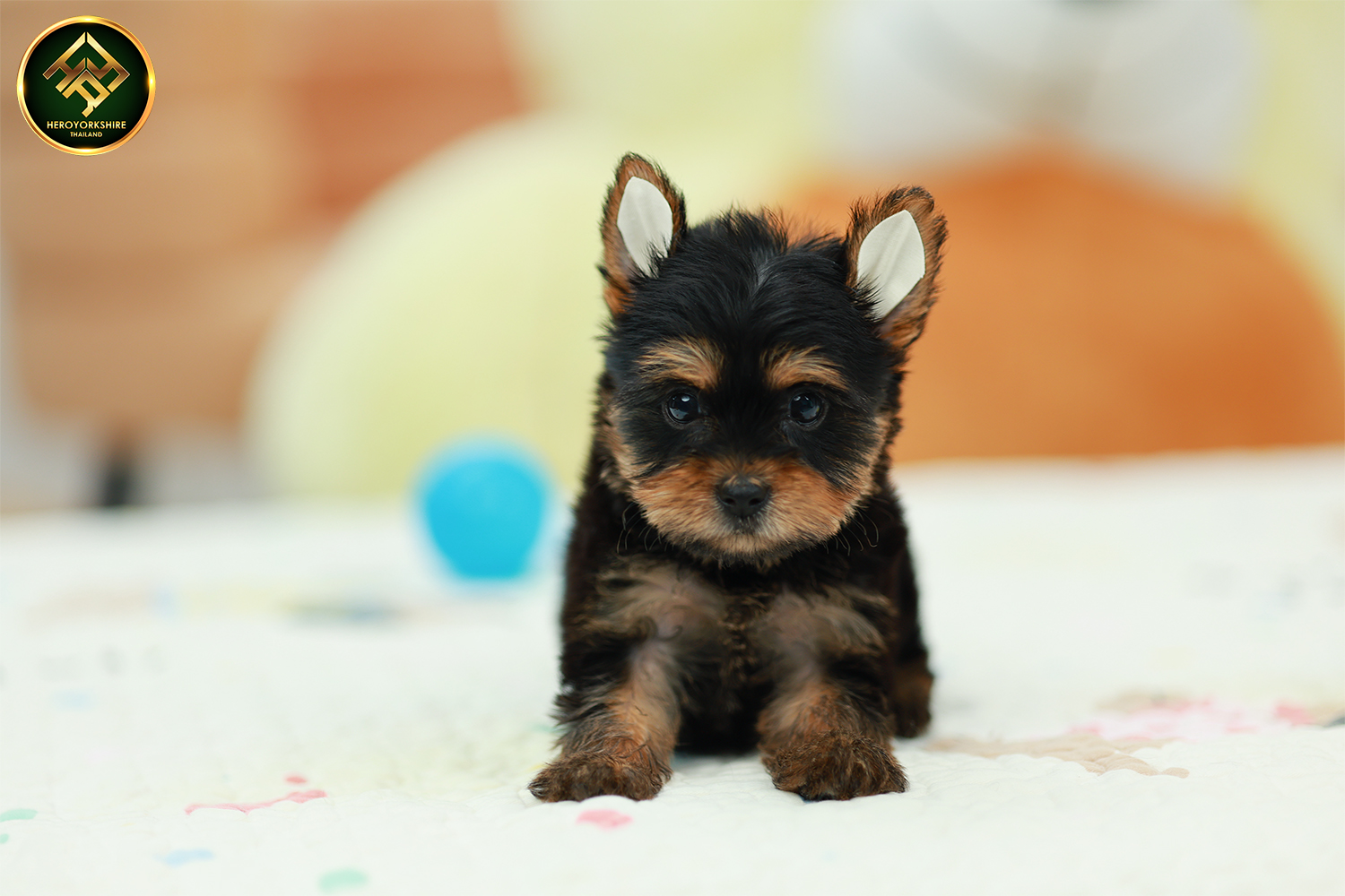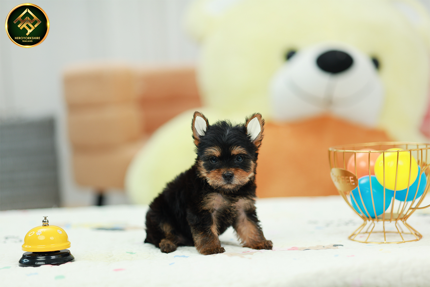 ยอร์คเชียร์ เทอร์เรีย HYF-50618 เพศหยิง สีแบล็คแทน อายุ 2 เดือน ตัวเล็ก ขาสั้น หน้าสั้น ขนแน่นฟู