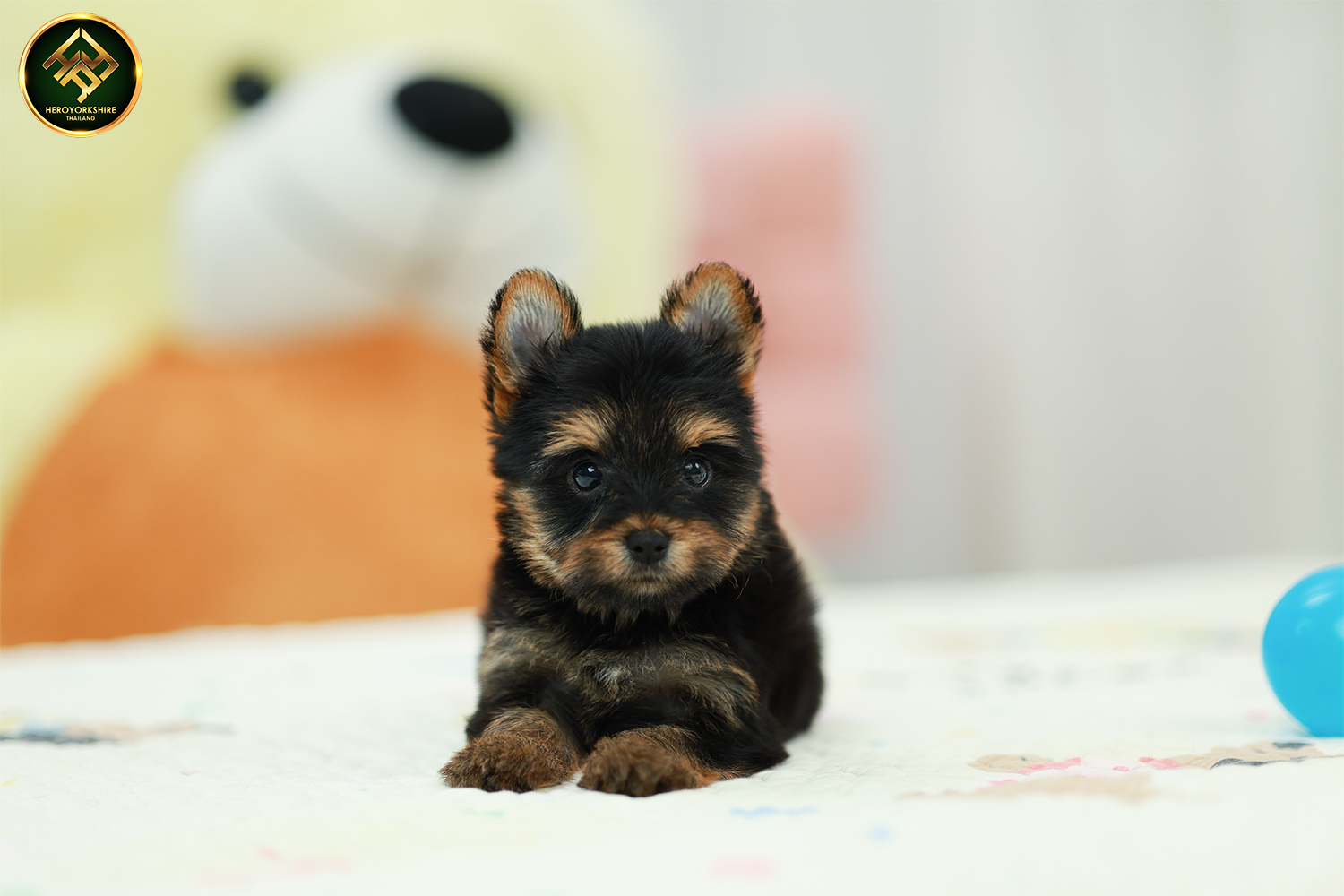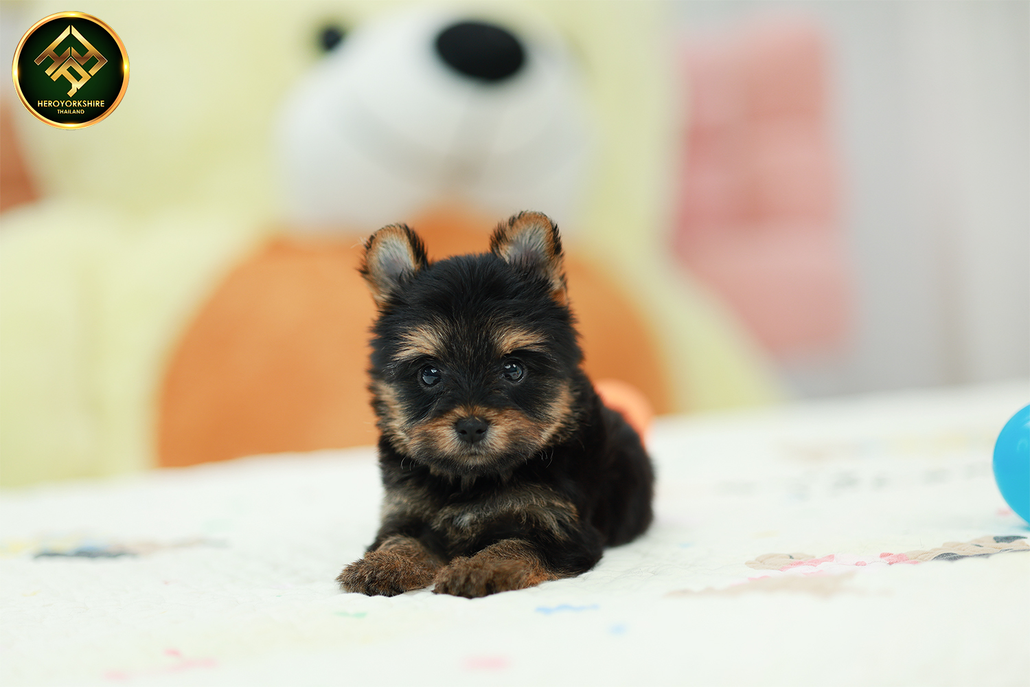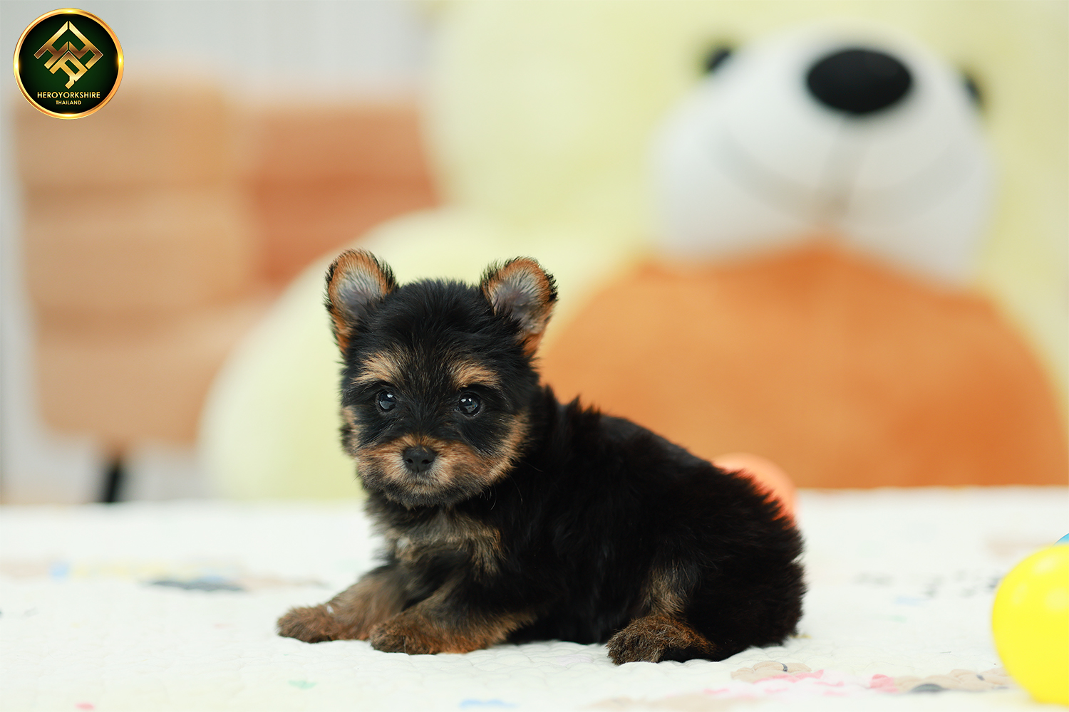 ยอร์คเชียร์ เทอร์เรีย HYF-50620 เพศหญิง สีแบล็คแทน อายุ 2 เดือน ตัวเล็ก ขาสั้น หน้าสั้น ขนแน่นฟู