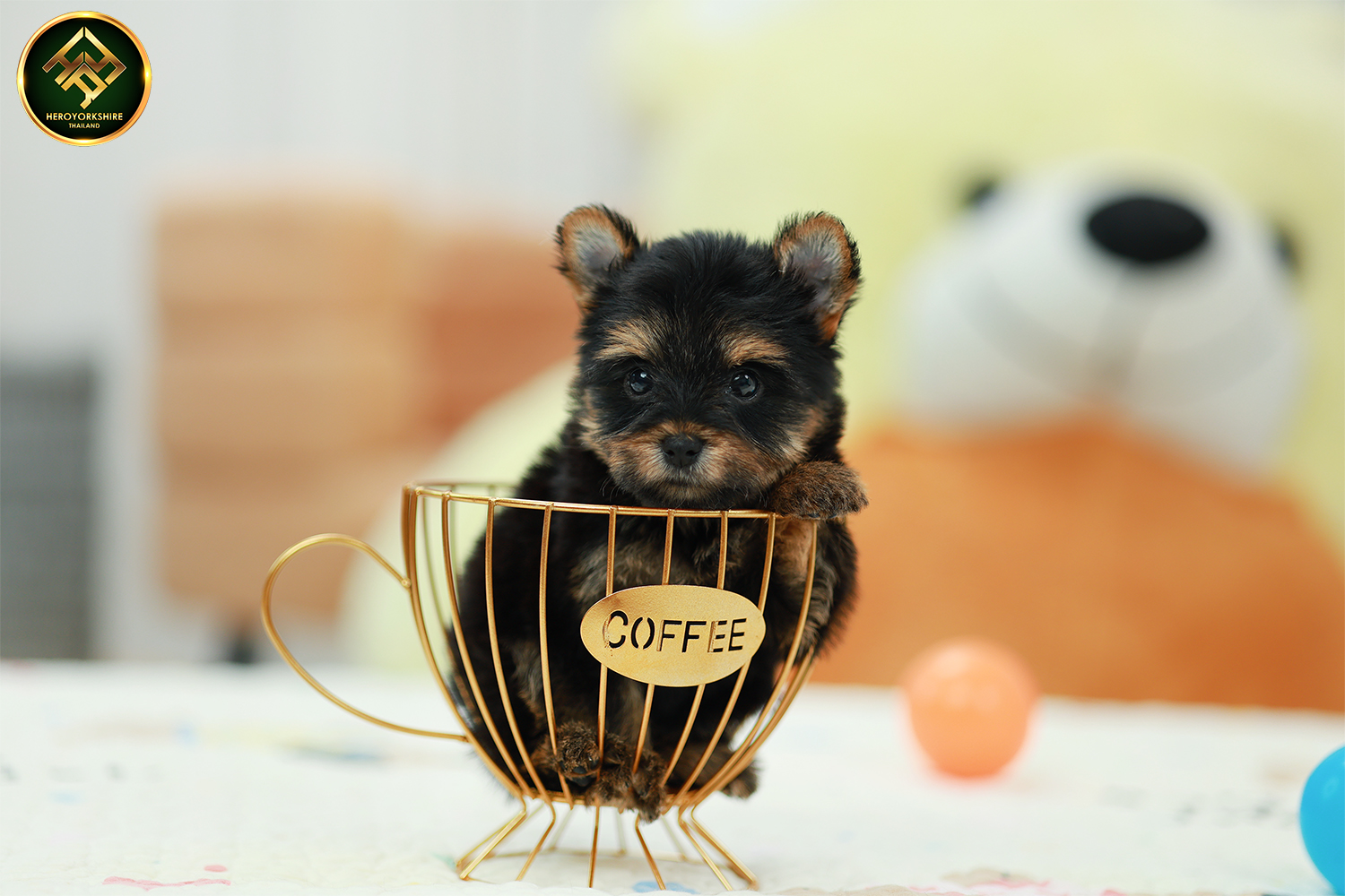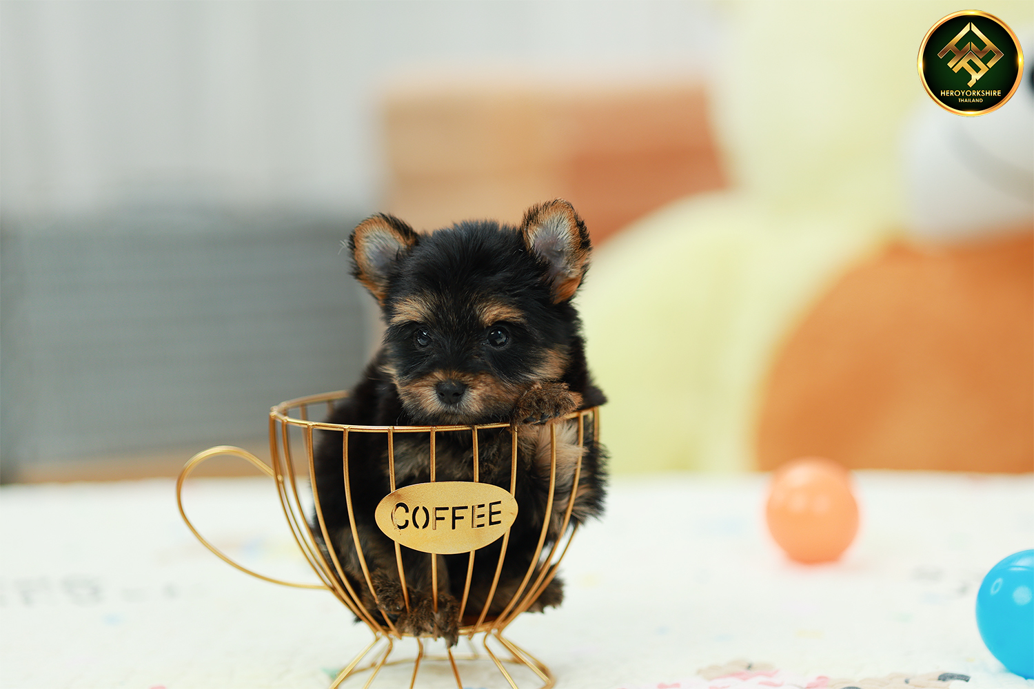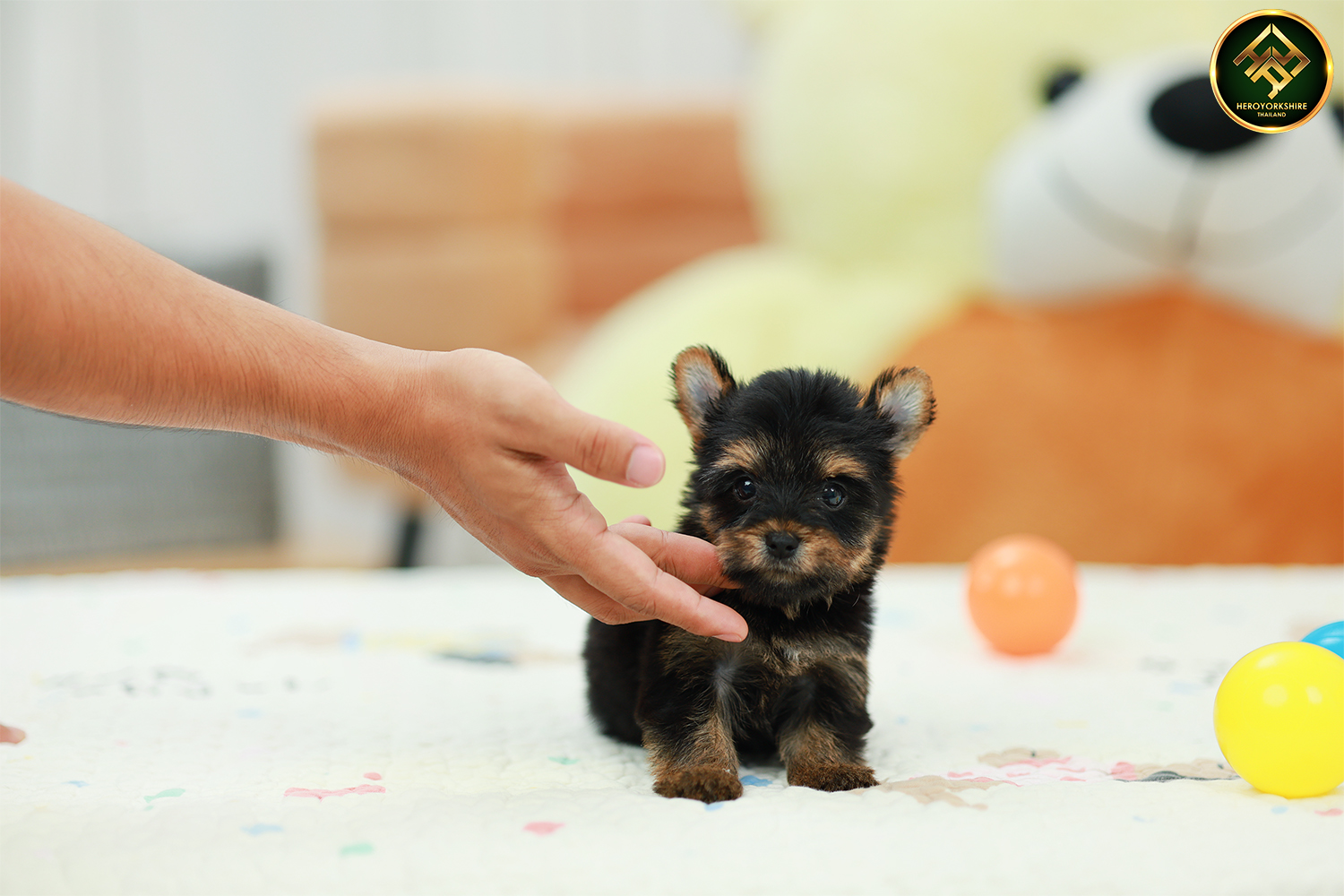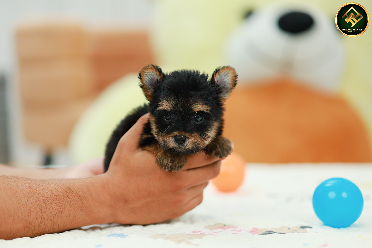 ยอร์คเชียร์ เทอร์เรีย HYF-50620 เพศหญิง สีแบล็คแทน อายุ 2 เดือน ตัวเล็ก ขาสั้น หน้าสั้น ขนแน่นฟู