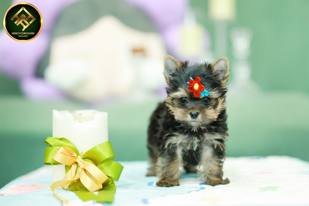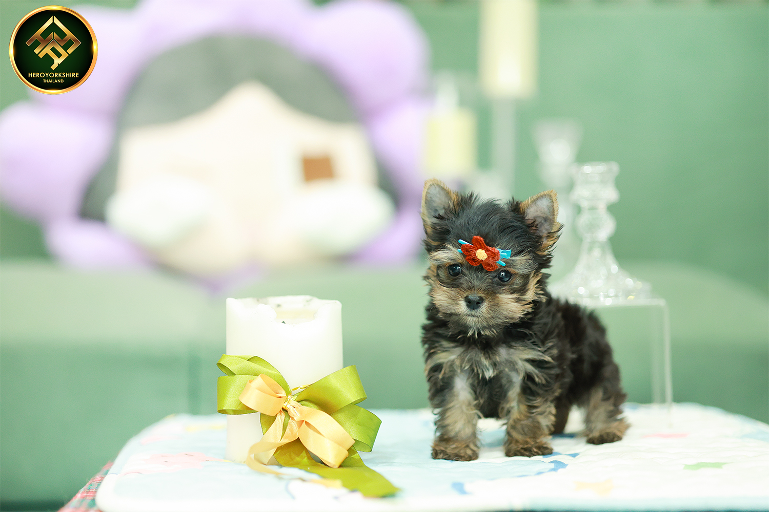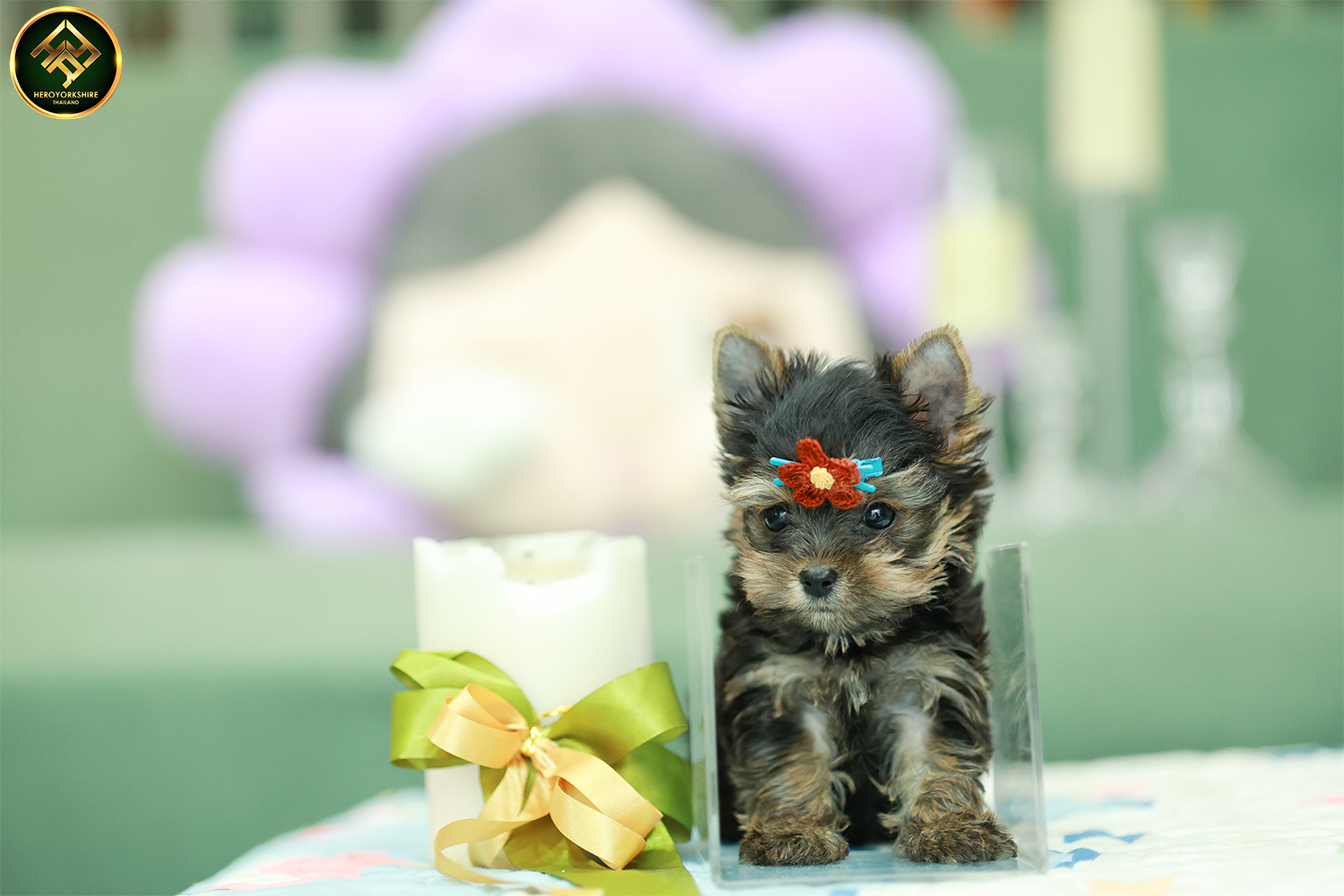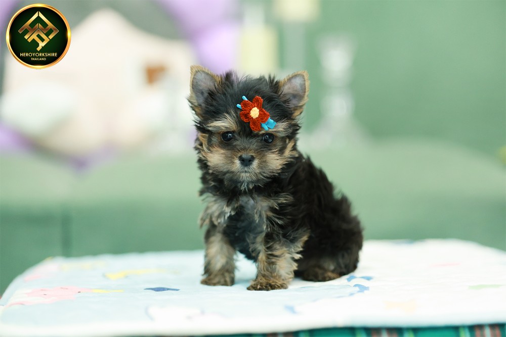 ยอร์คเชียร์ เทอร์เรีย HYM-50605 เพศชาย สีแบล็คแทน อายุ 2 เดือน ตัวเล็ก ขาสั้น หน้าสั้น ขนแน่นฟู