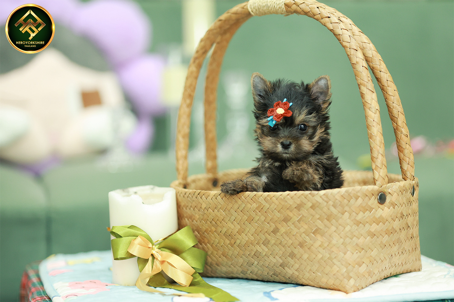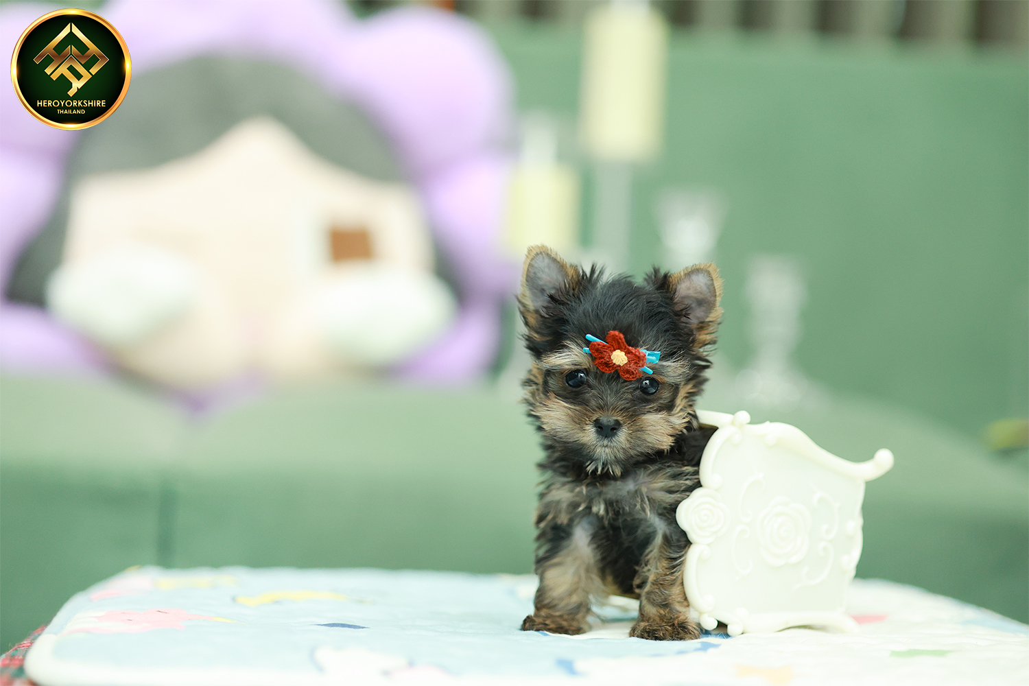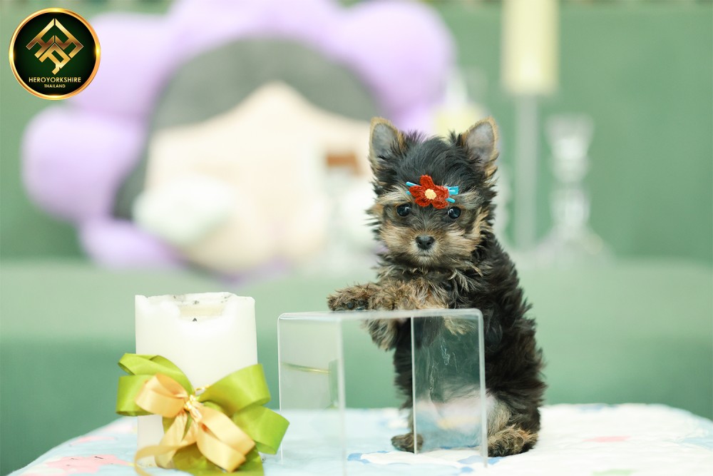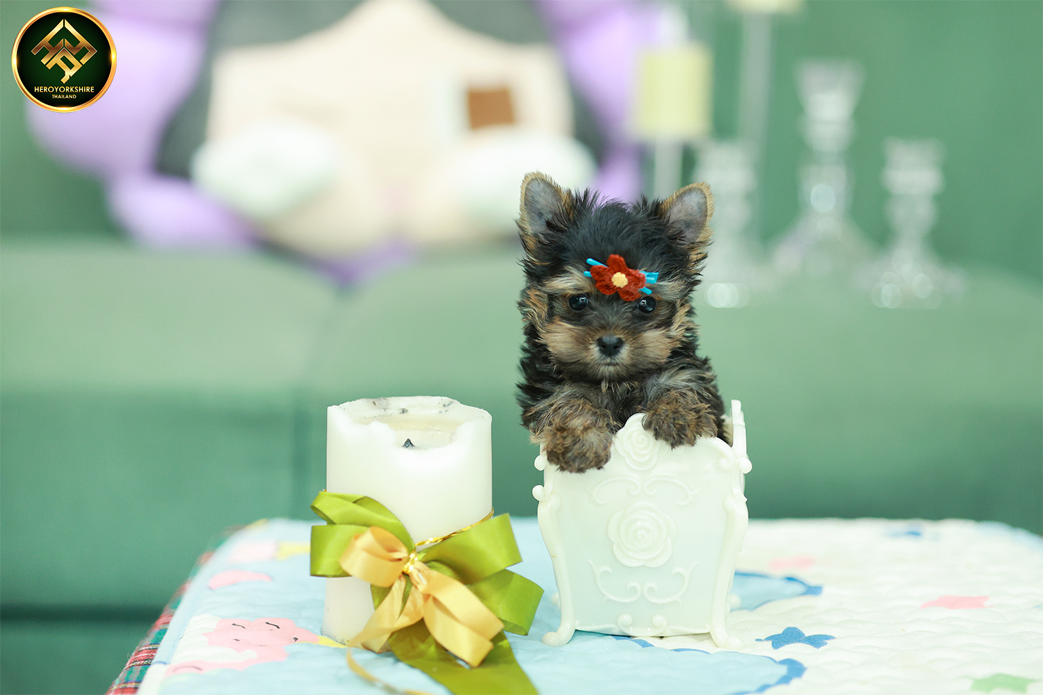 ยอร์คเชียร์ เทอร์เรีย HYM-50605 เพศชาย สีแบล็คแทน อายุ 2 เดือน ตัวเล็ก ขาสั้น หน้าสั้น ขนแน่นฟู