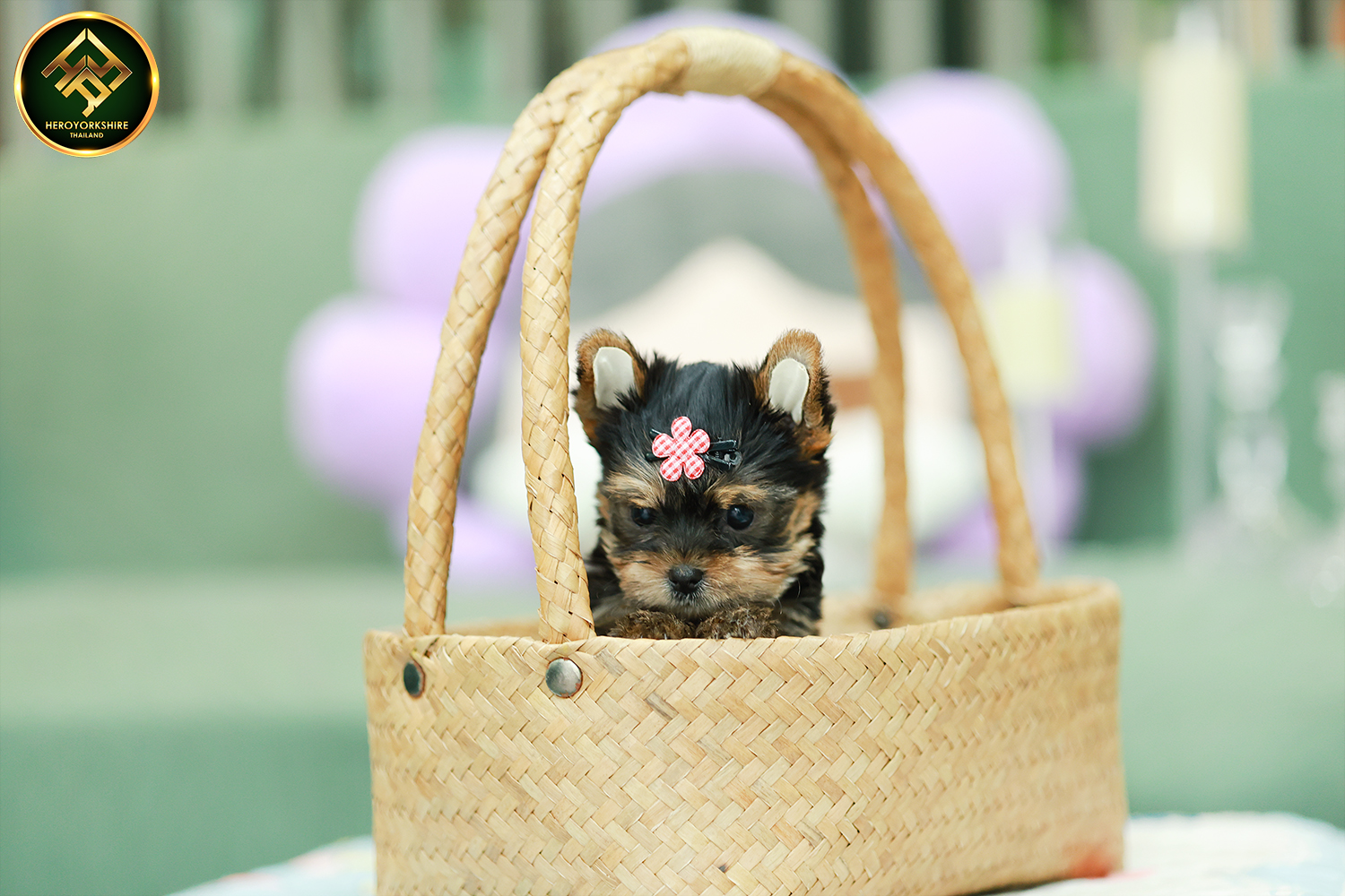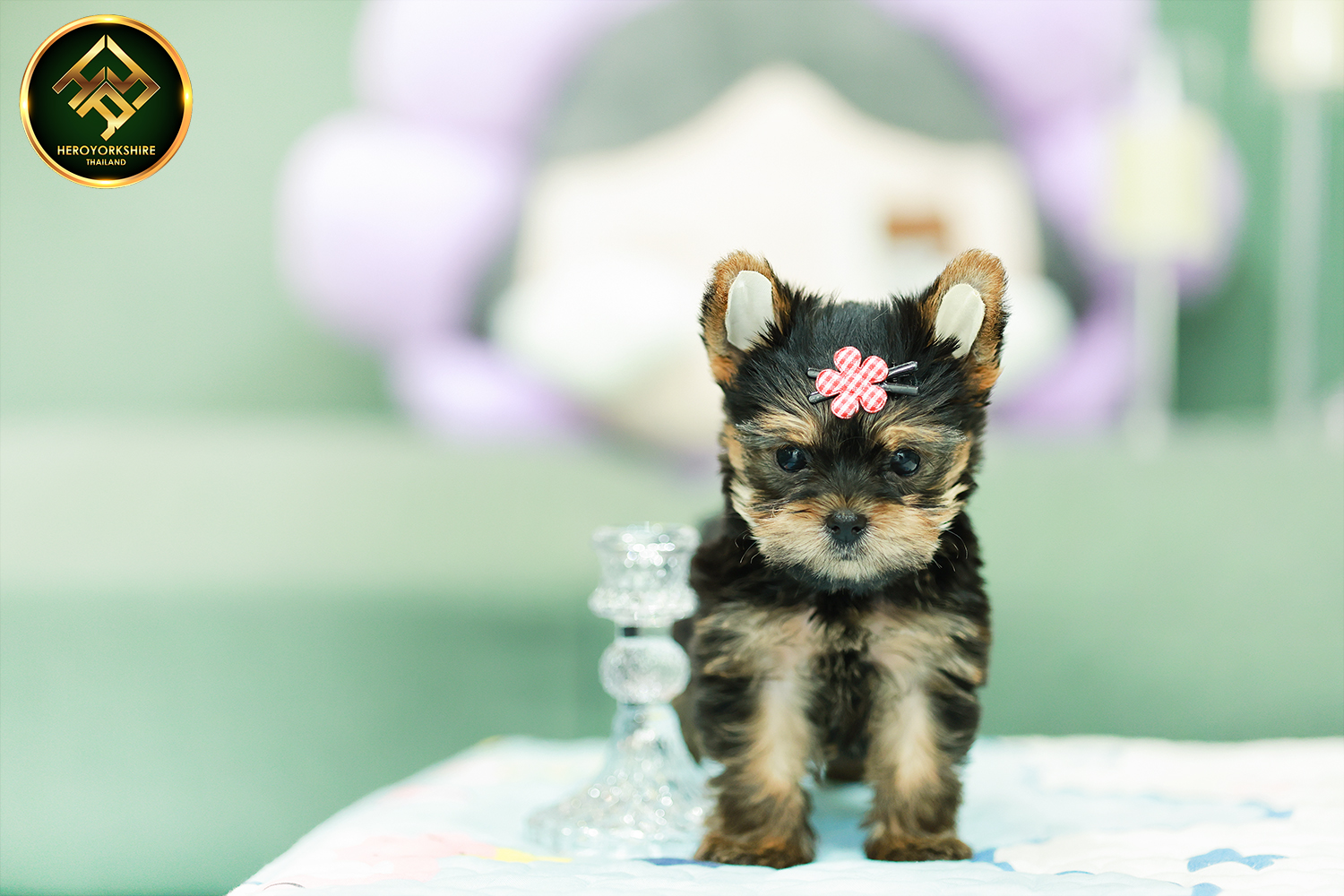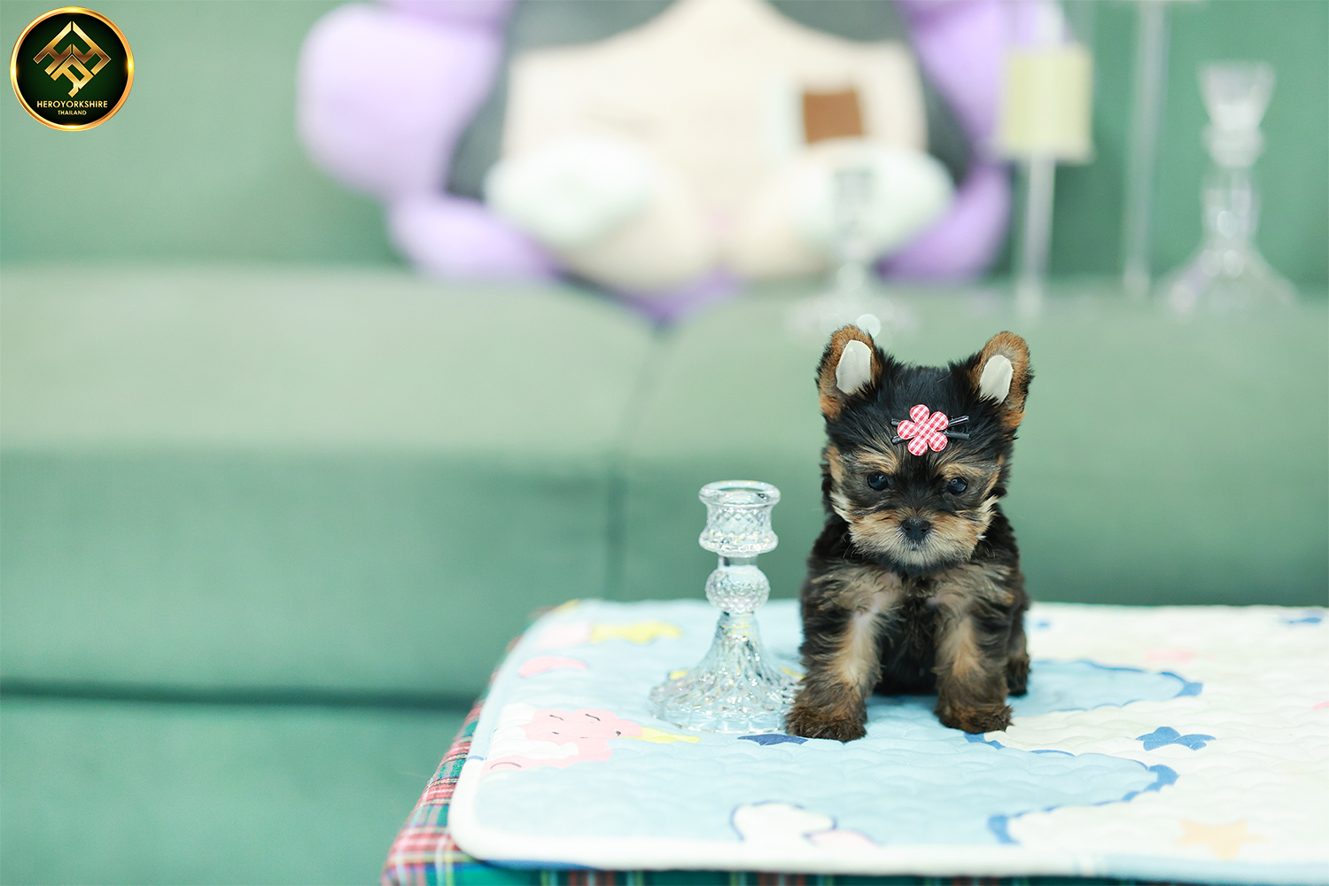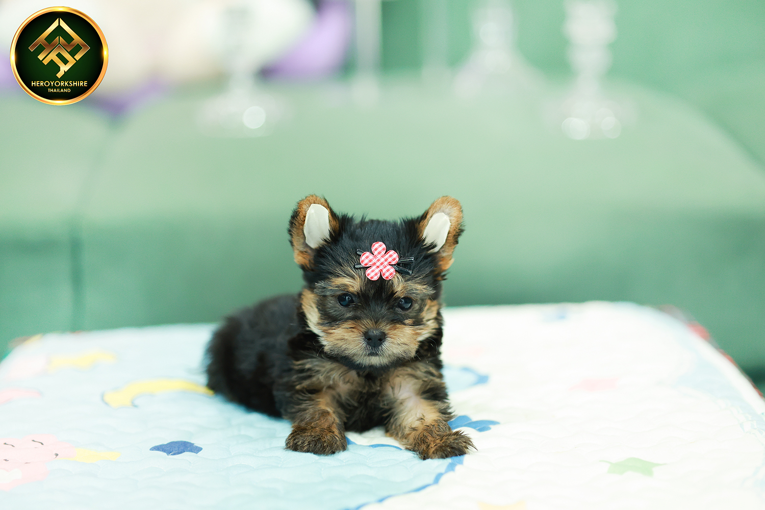 ยอร์คเชียร์ เทอร์เรีย HYM-50611 เพศชาย สีแบล็คแทน อายุ 2 เดือน ตัวเล็ก ขาสั้น หน้าสั้น ขนแน่นฟู