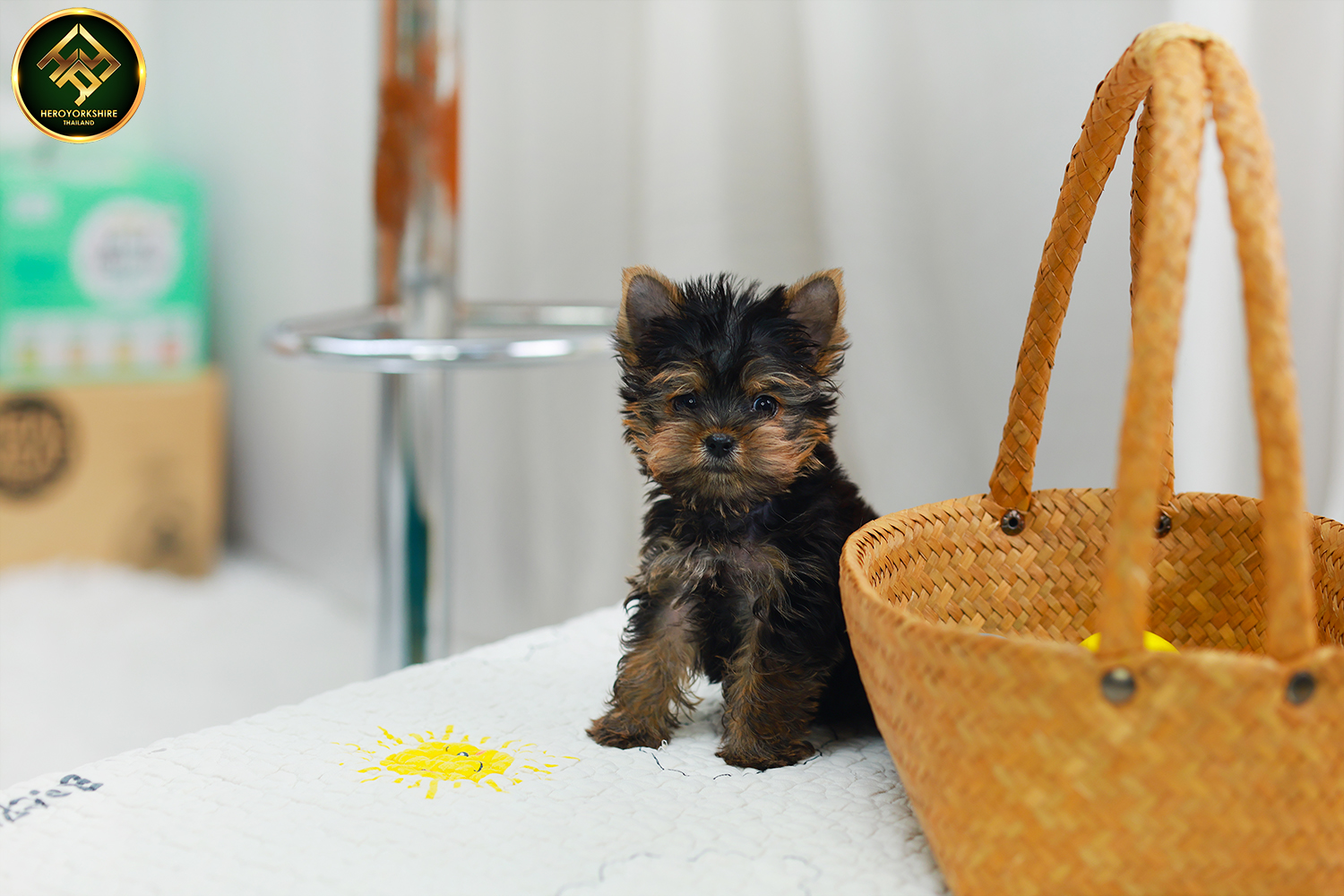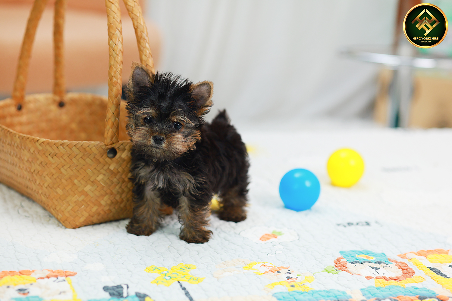 ยอร์คเชียร์ เทอร์เรีย HYM-50605 เพศชาย สีแบล็คแทน อายุ 2 เดือน ตัวเล็ก ขาสั้น หน้าสั้น ขนแน่นฟู