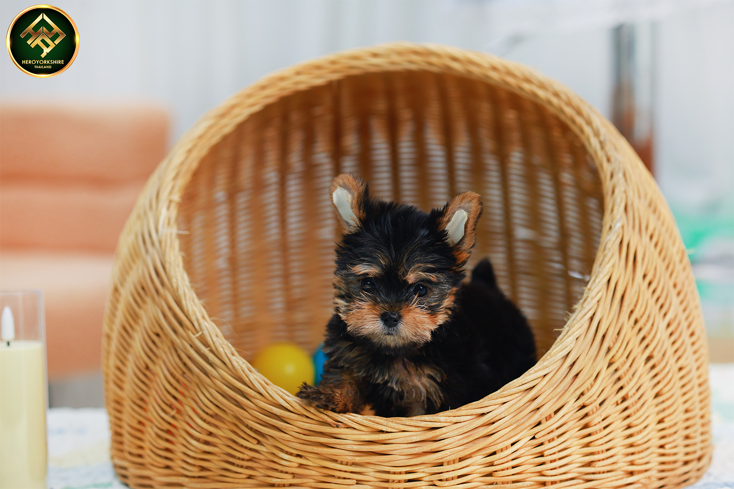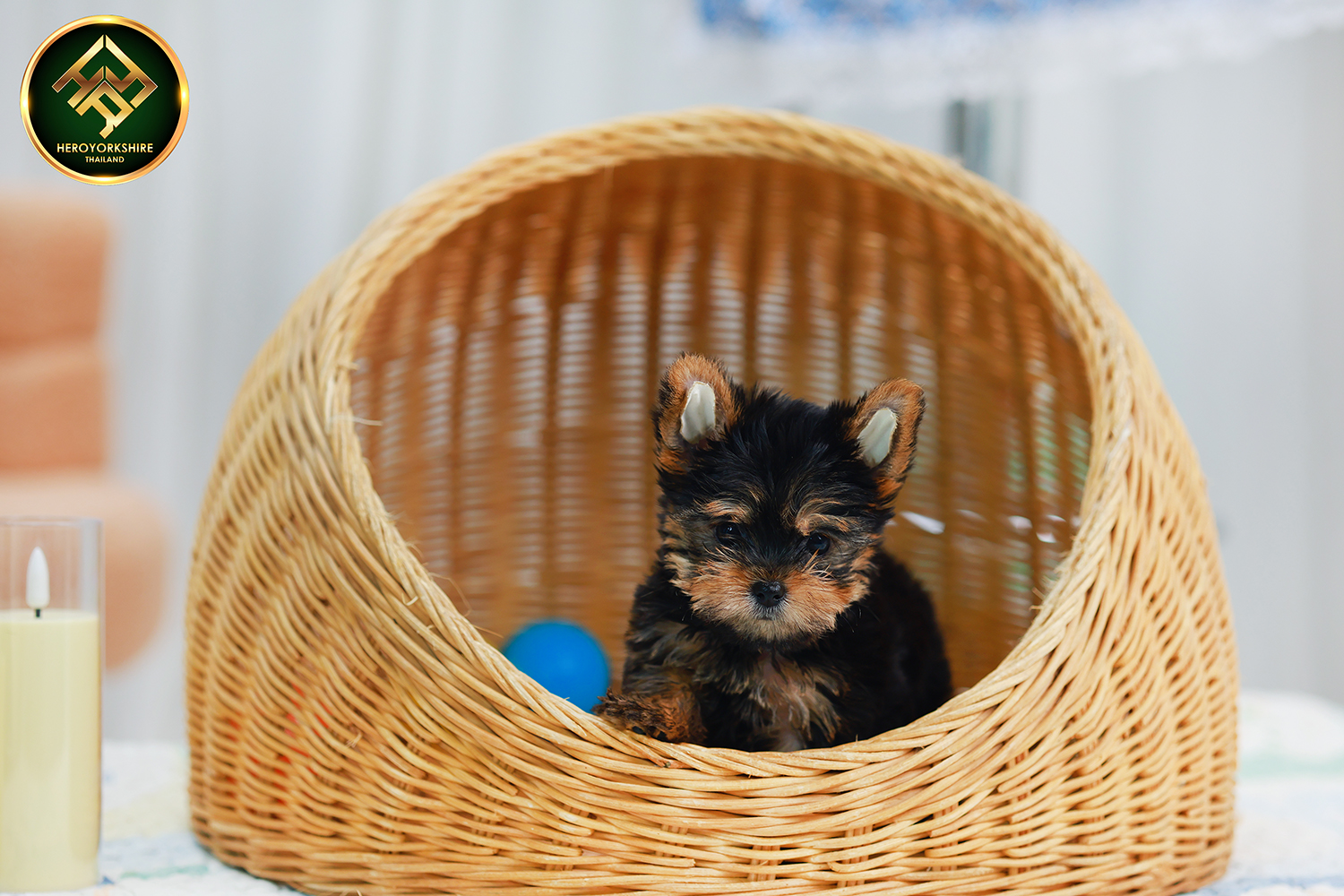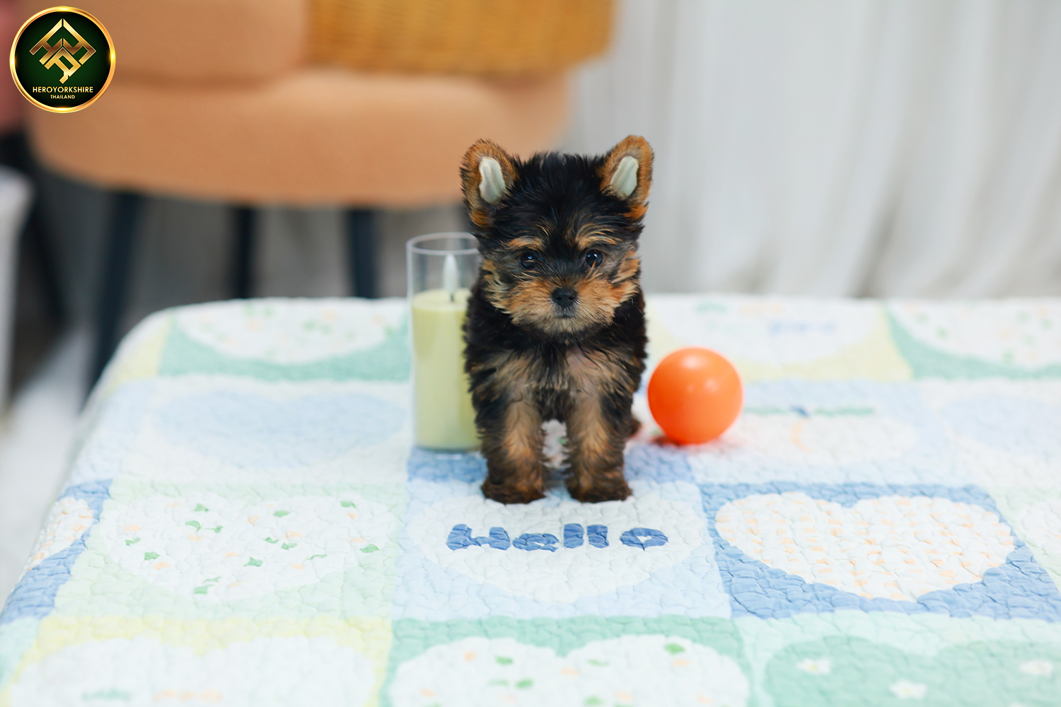 ยอร์คเชียร์ เทอร์เรีย HYM-50611 เพศชาย สีแบล็คแทน อายุ 2 เดือน ตัวเล็ก ขาสั้น หน้าสั้น ขนแน่นฟู