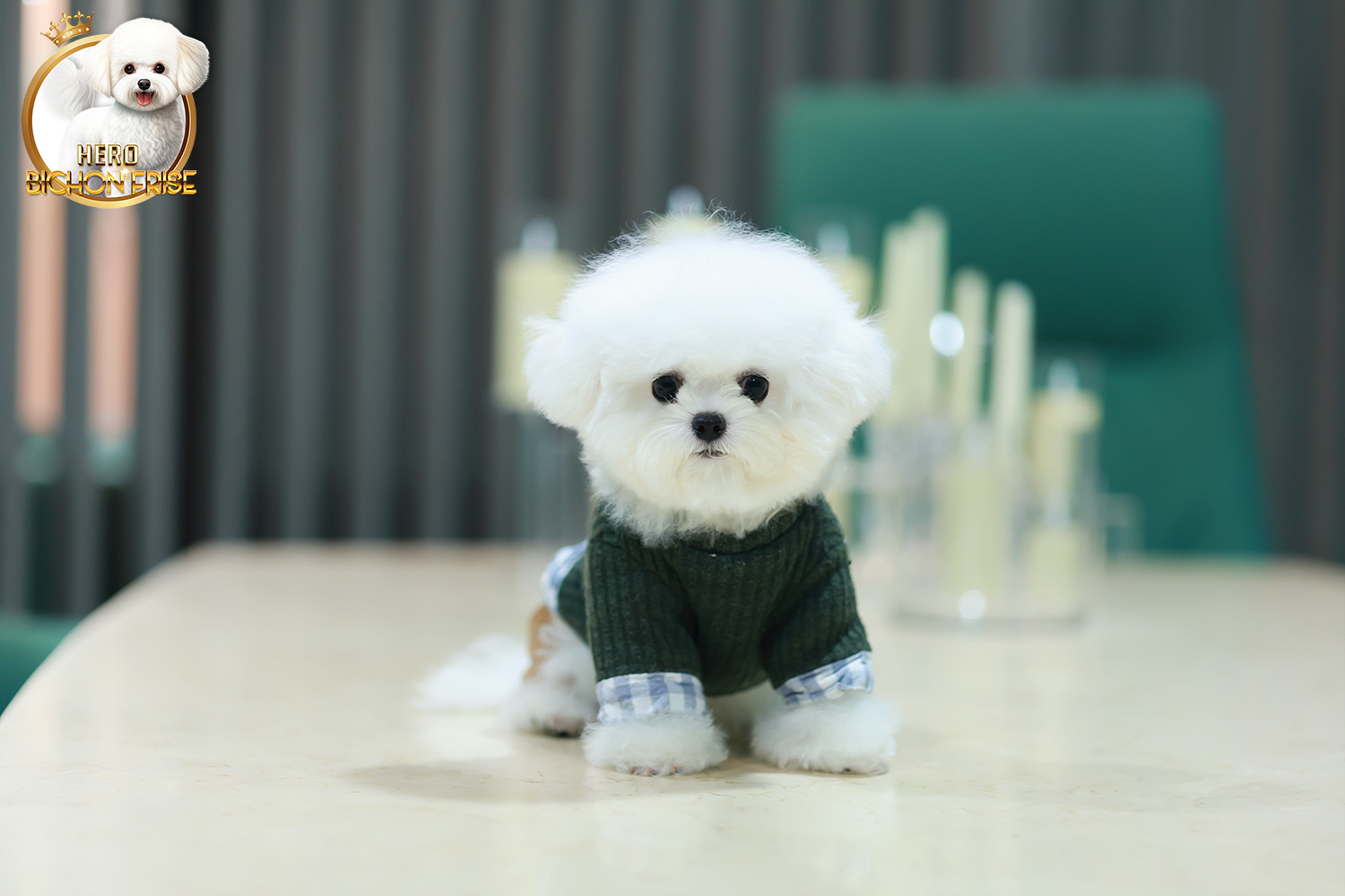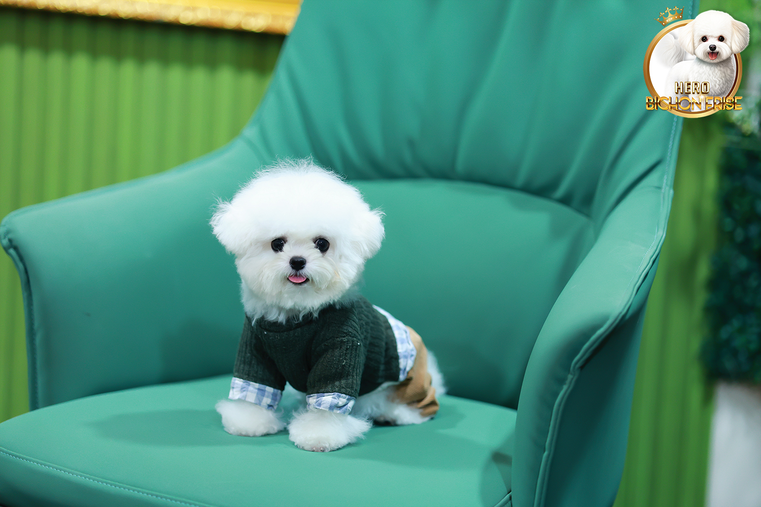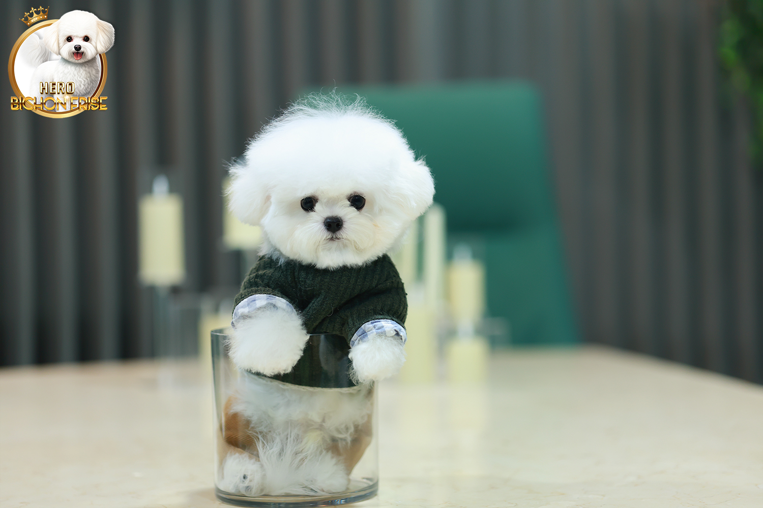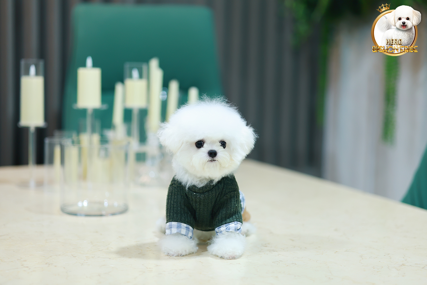 บิซอง ฟริเซ่ BCM-02056 เพศชาย สีขาว อายุ 2 เดือน ตัวเล็ก ขาสั้น หน้าสั้น ขนแน่นฟู