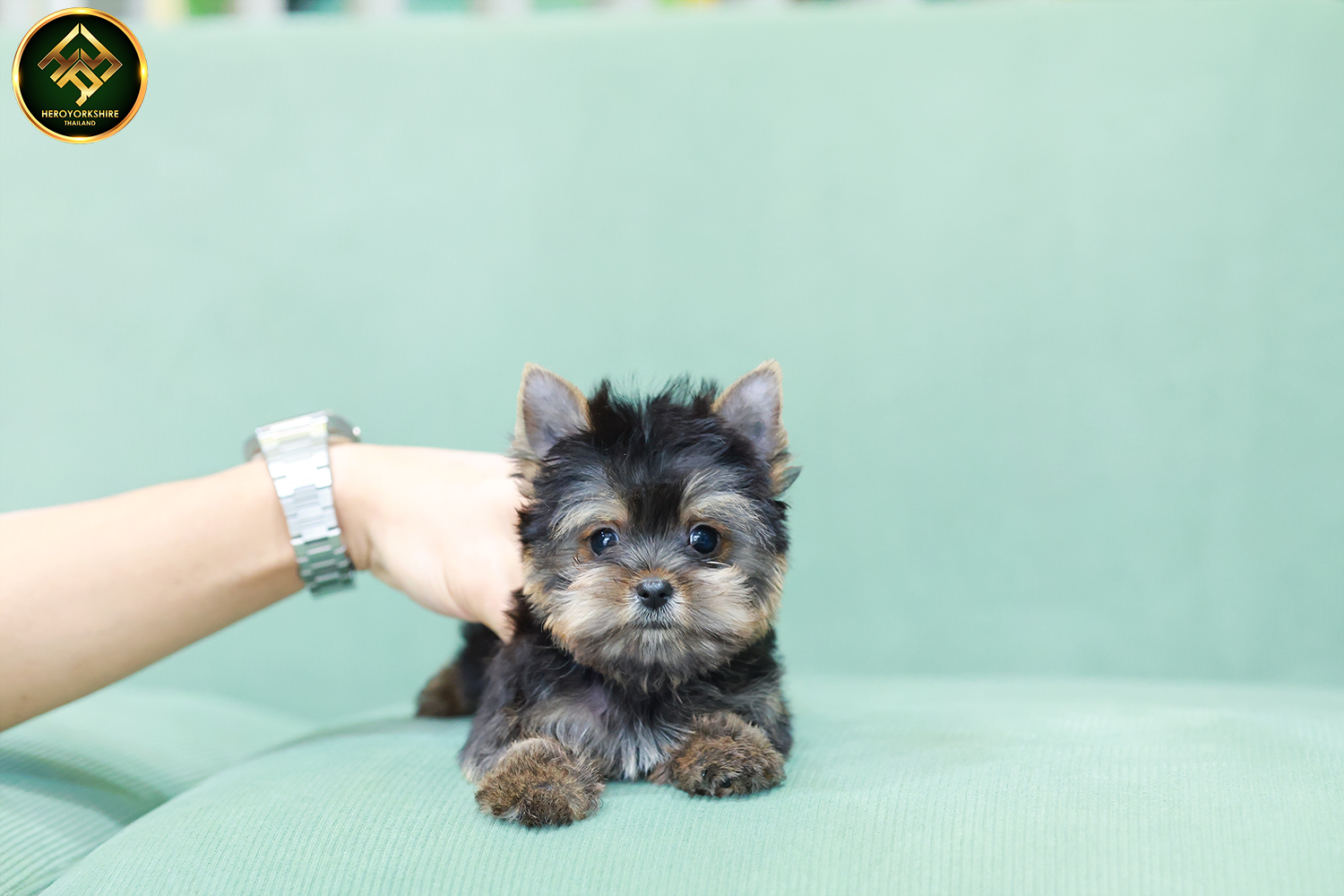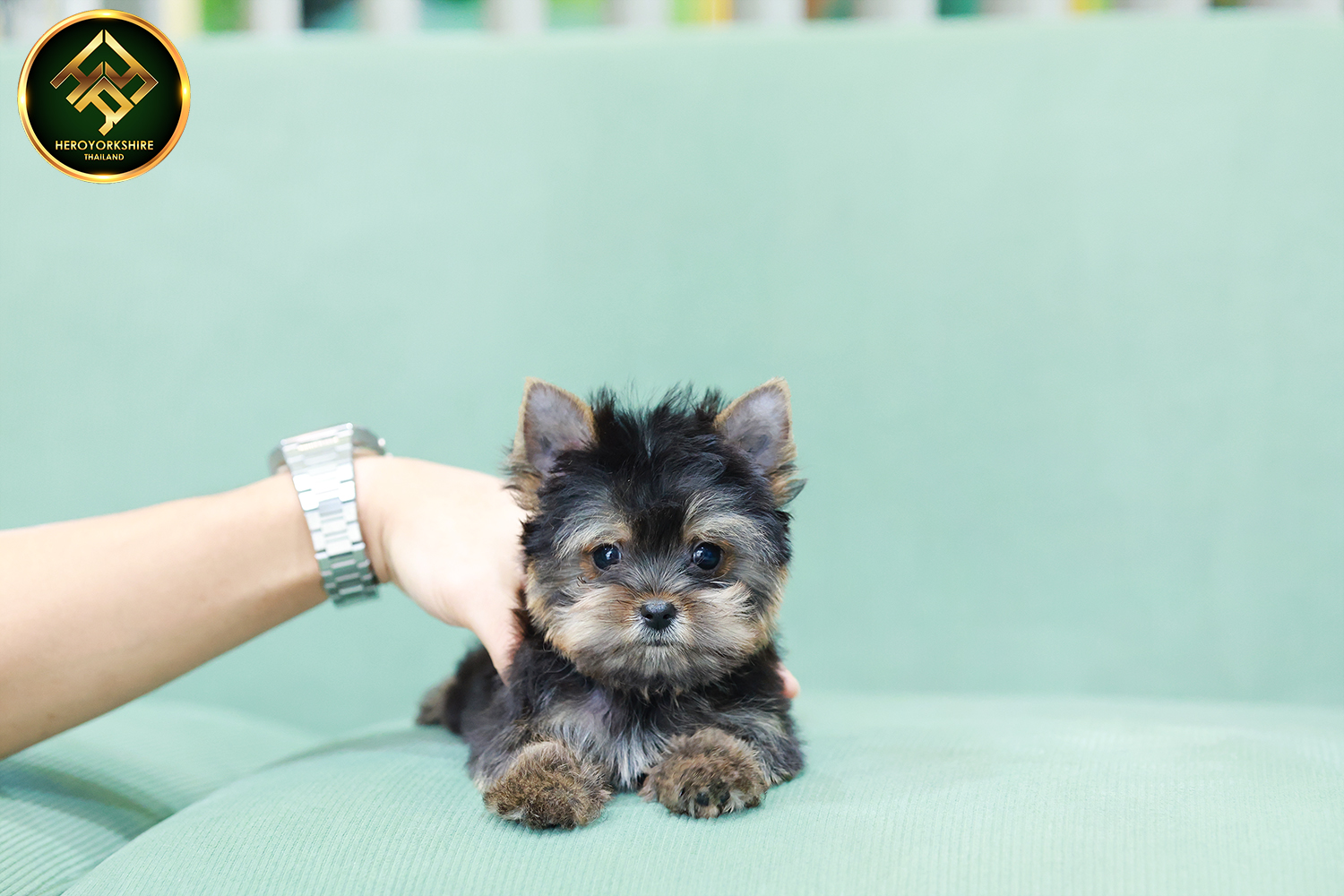 ยอร์คเชียร์ เทอร์เรีย HYM-50605 เพศชาย สีแบล็คแทน อายุ 2 เดือน ตัวเล็ก ขาสั้น หน้าสั้น ขนแน่นฟู