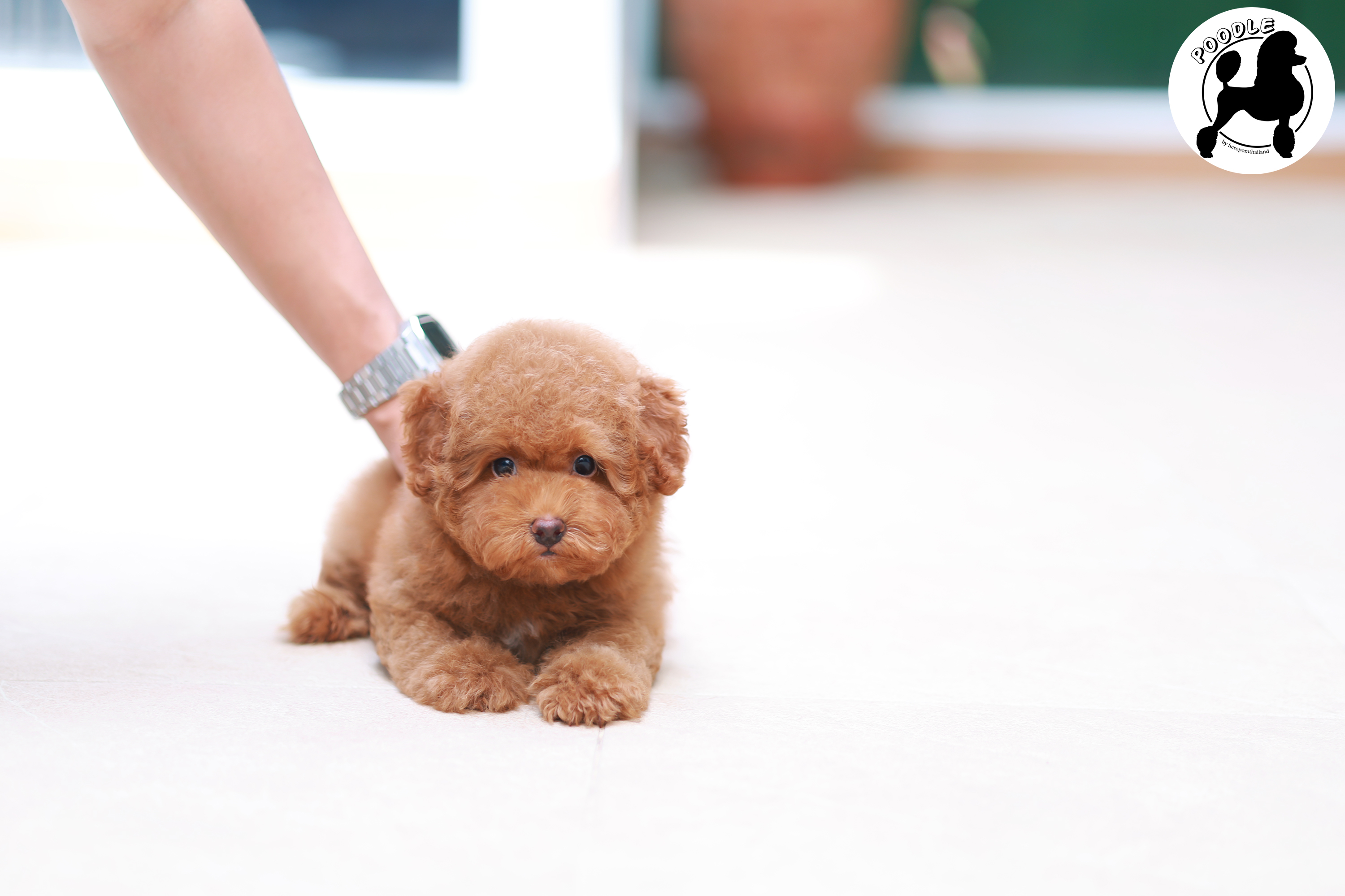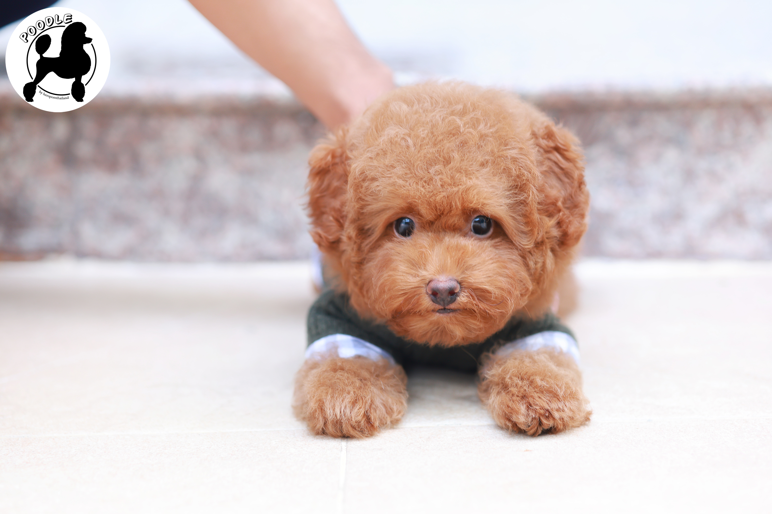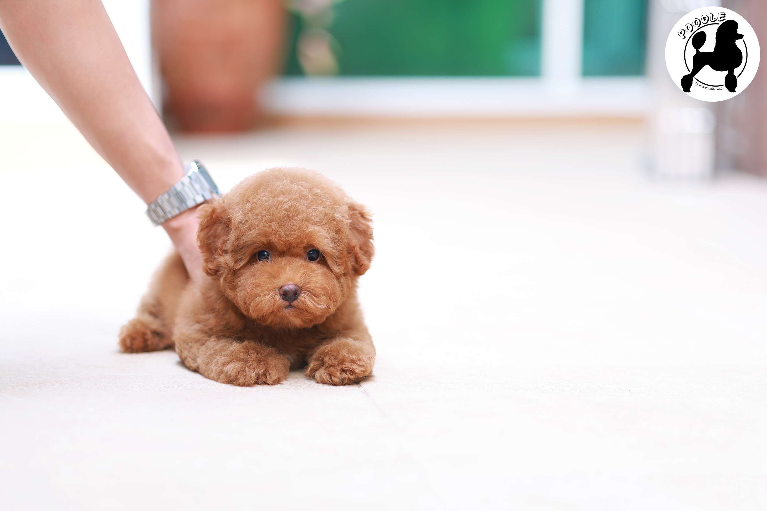 พุดเดิ้ล PDM-50466 เพศชาย สีน้ำตาล อายุ 2 เดือน ตัวเล็ก ขาสั้น หน้าสั้น ขนแน่นฟู