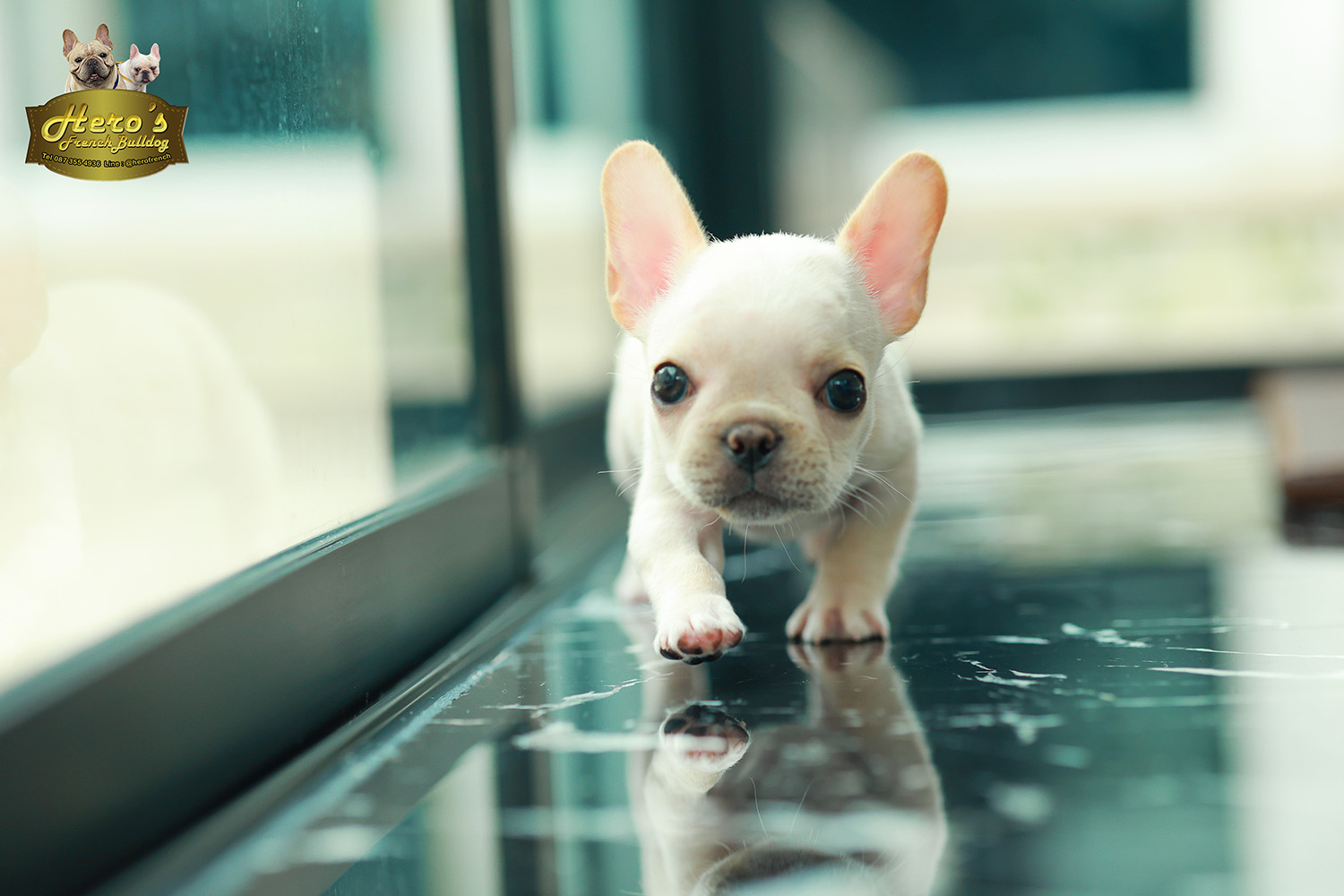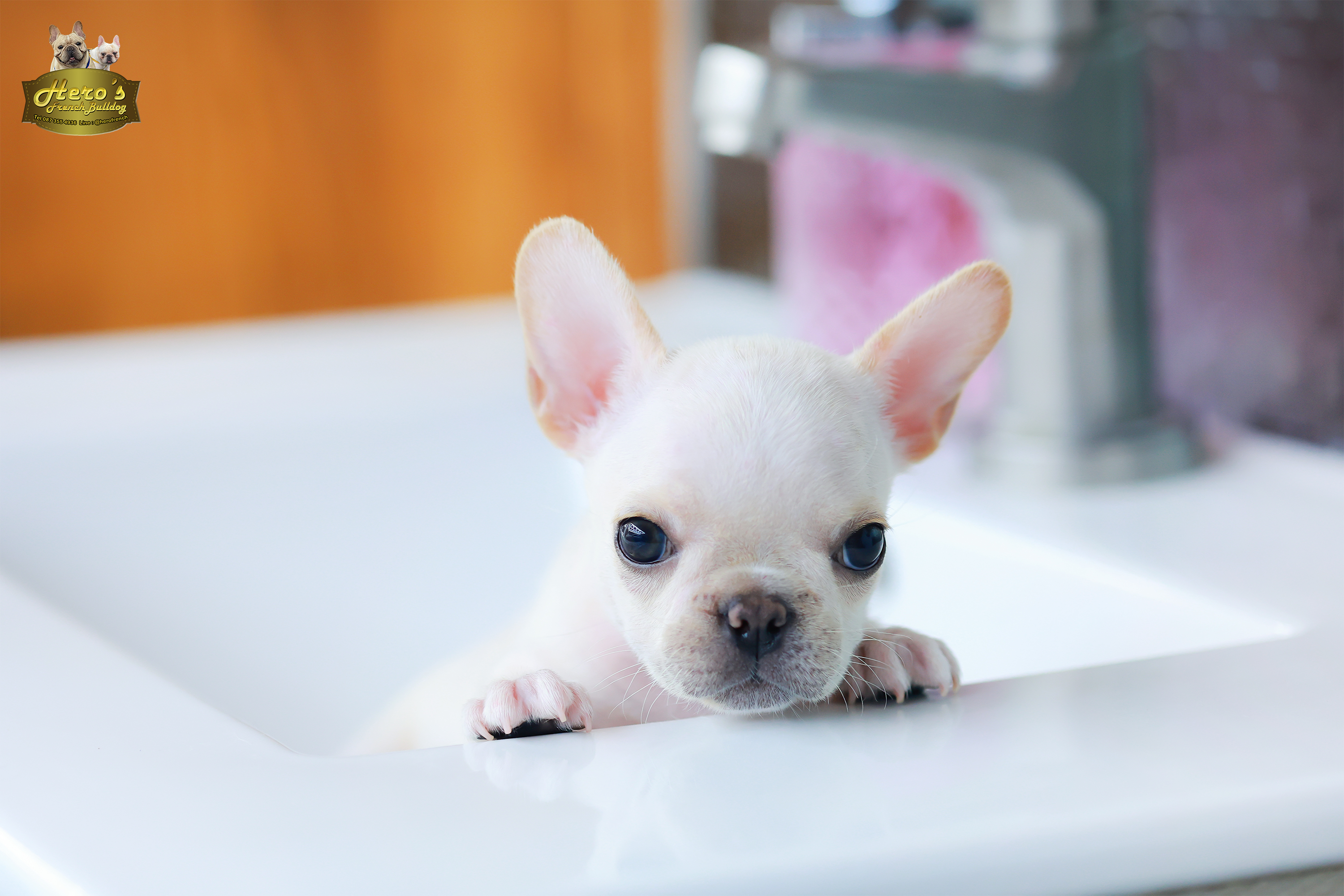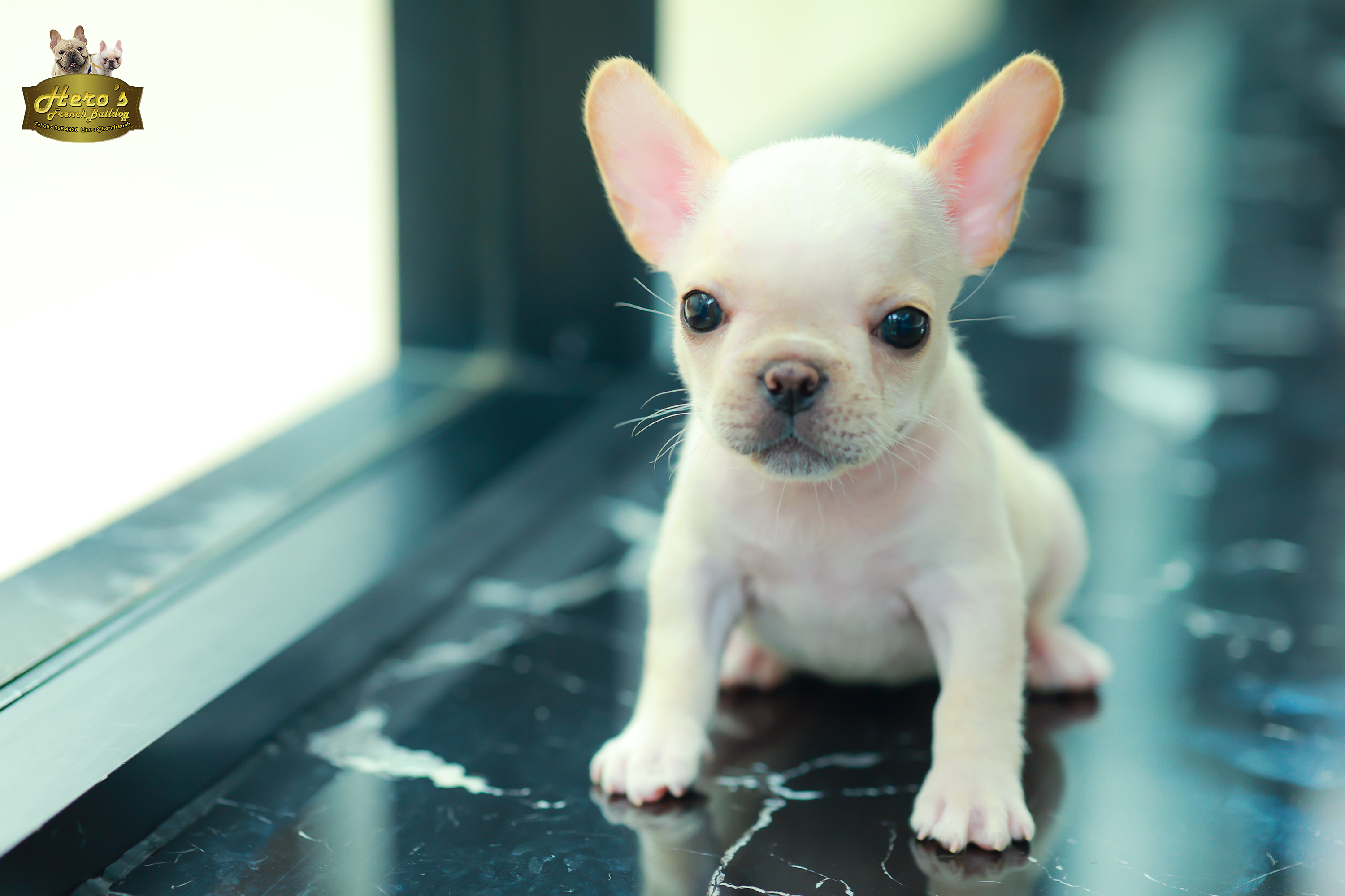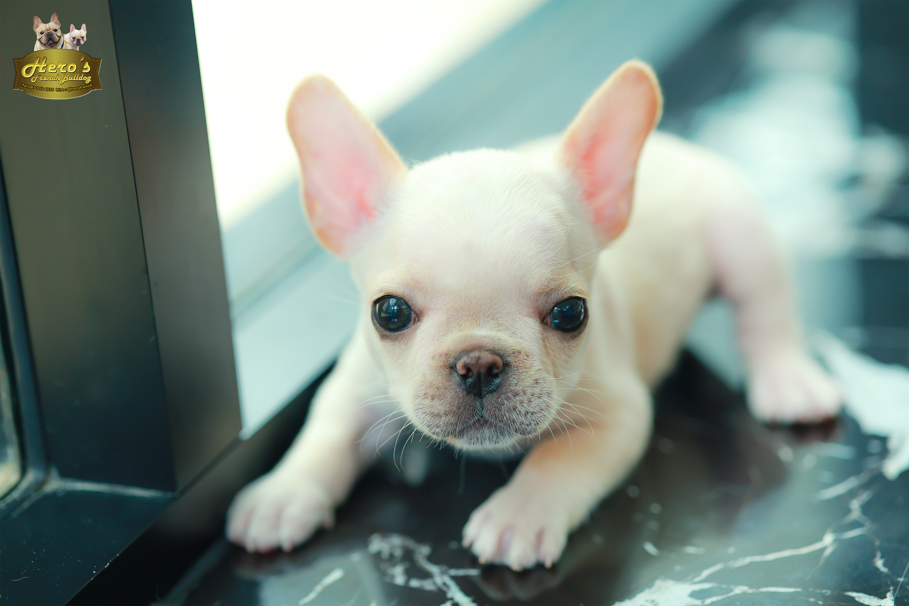 เฟรน บลูด็อก FHF-26237 เพศหญิง สีขาว อายุ 2 เดือน ตัวเล็ก ขาสั้น หน้าสั้น ขนแน่นฟู