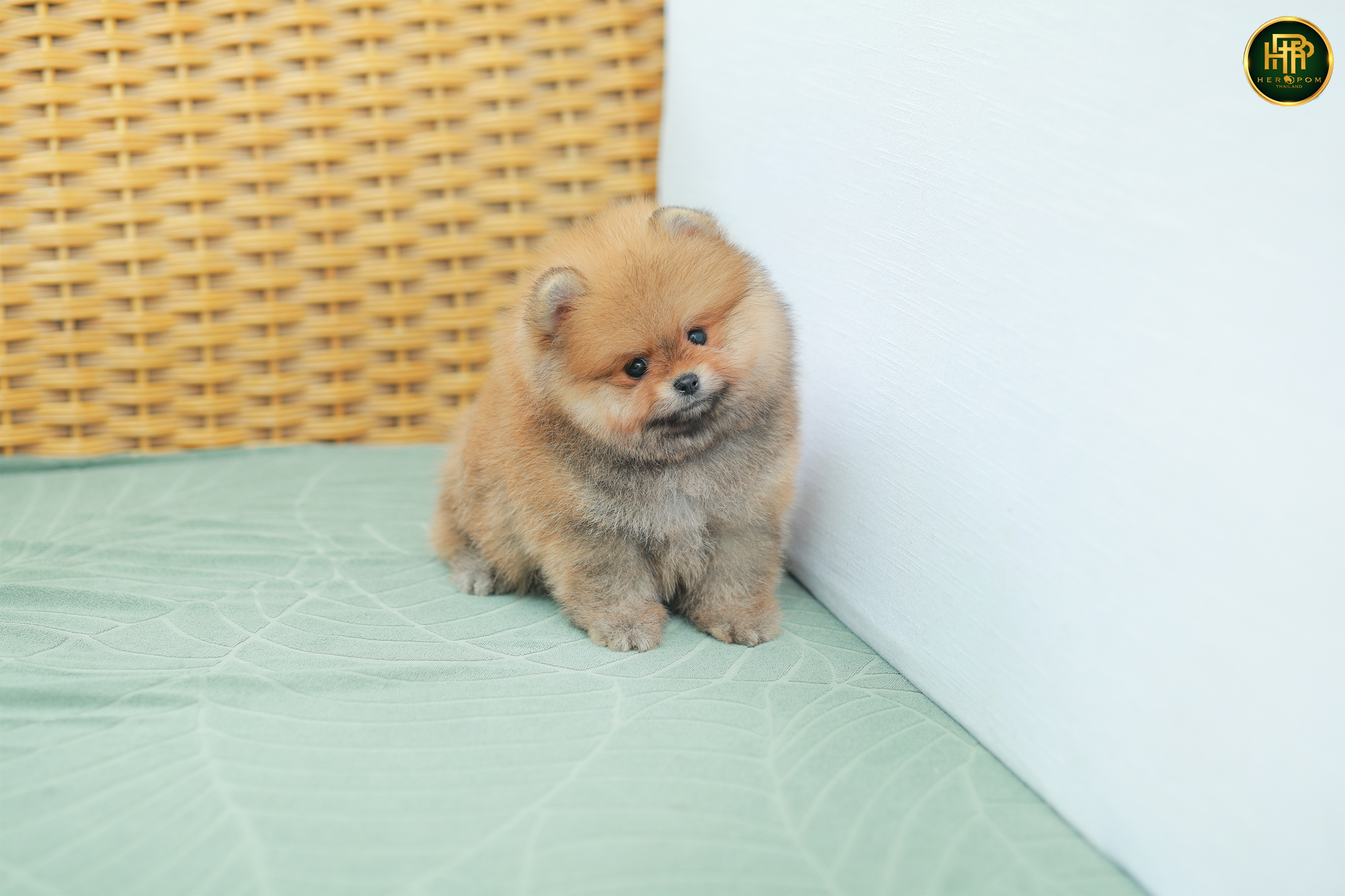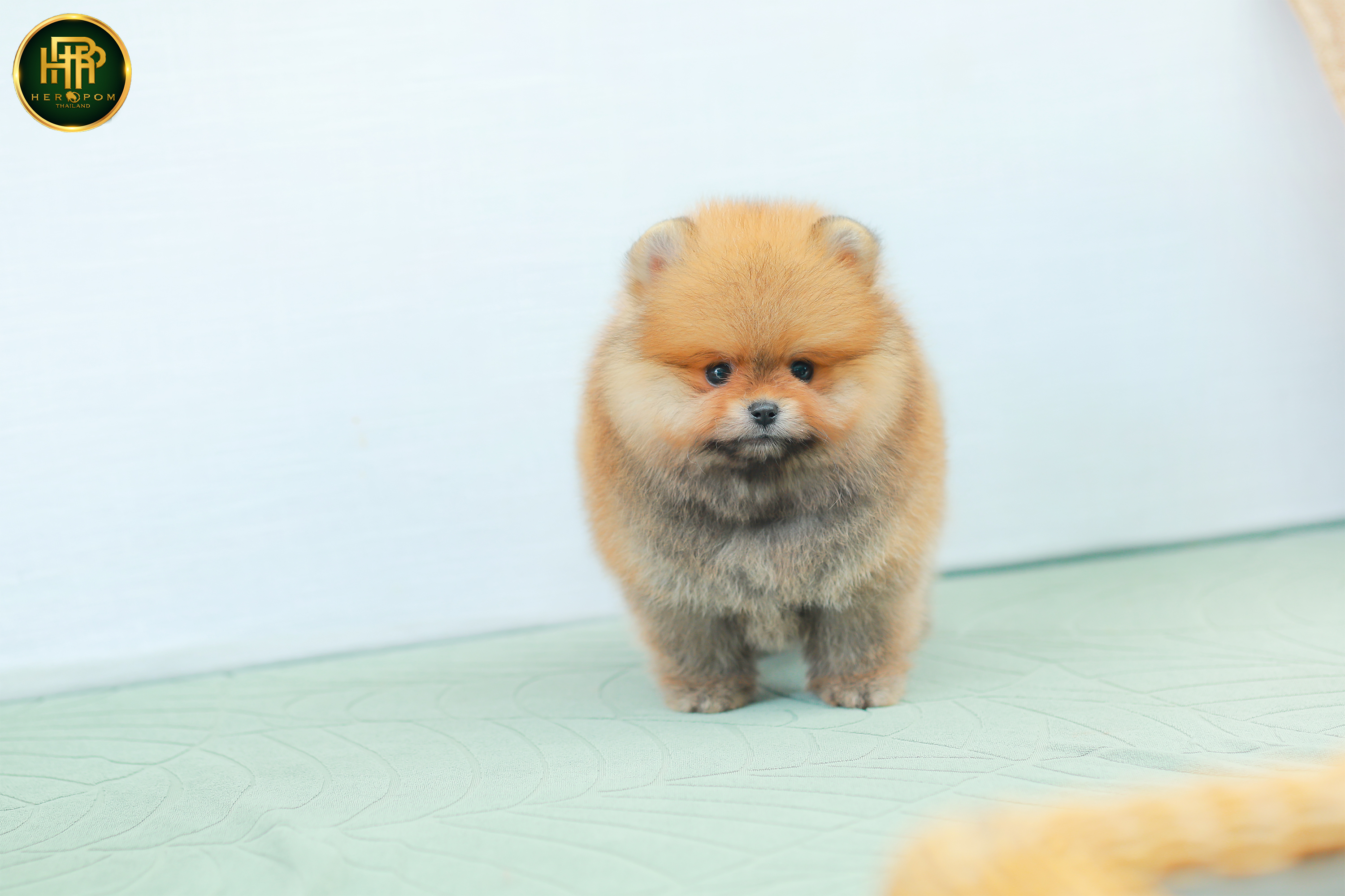 ปอมแท้ ปอมเมอเรเนียน HRM-68583 เพศชาย สีส้ม อายุ 2 เดือน หน้าตาน่ารัก ขาสั้น ขนแน่นฟู ขี้เล่นมาก