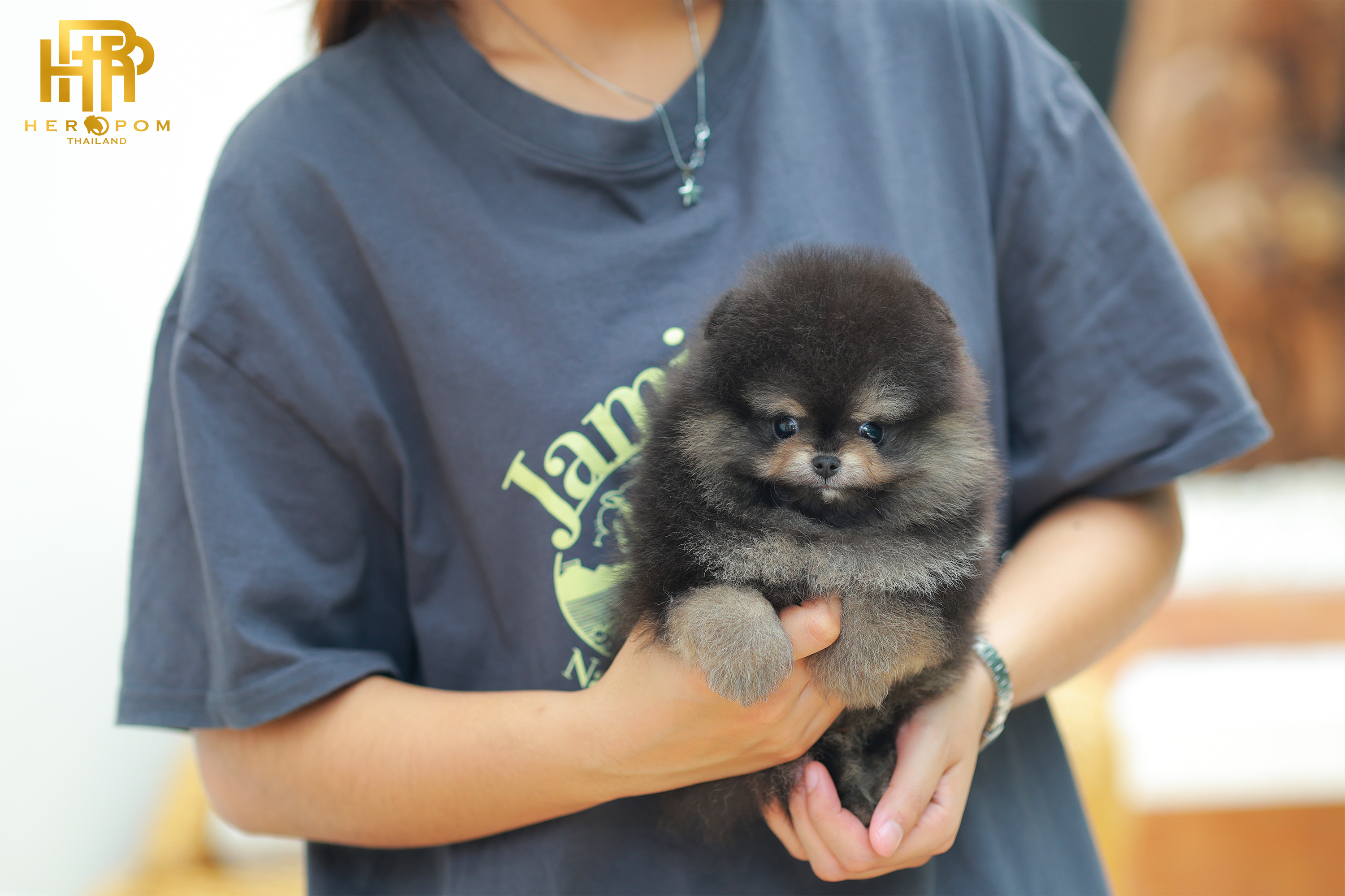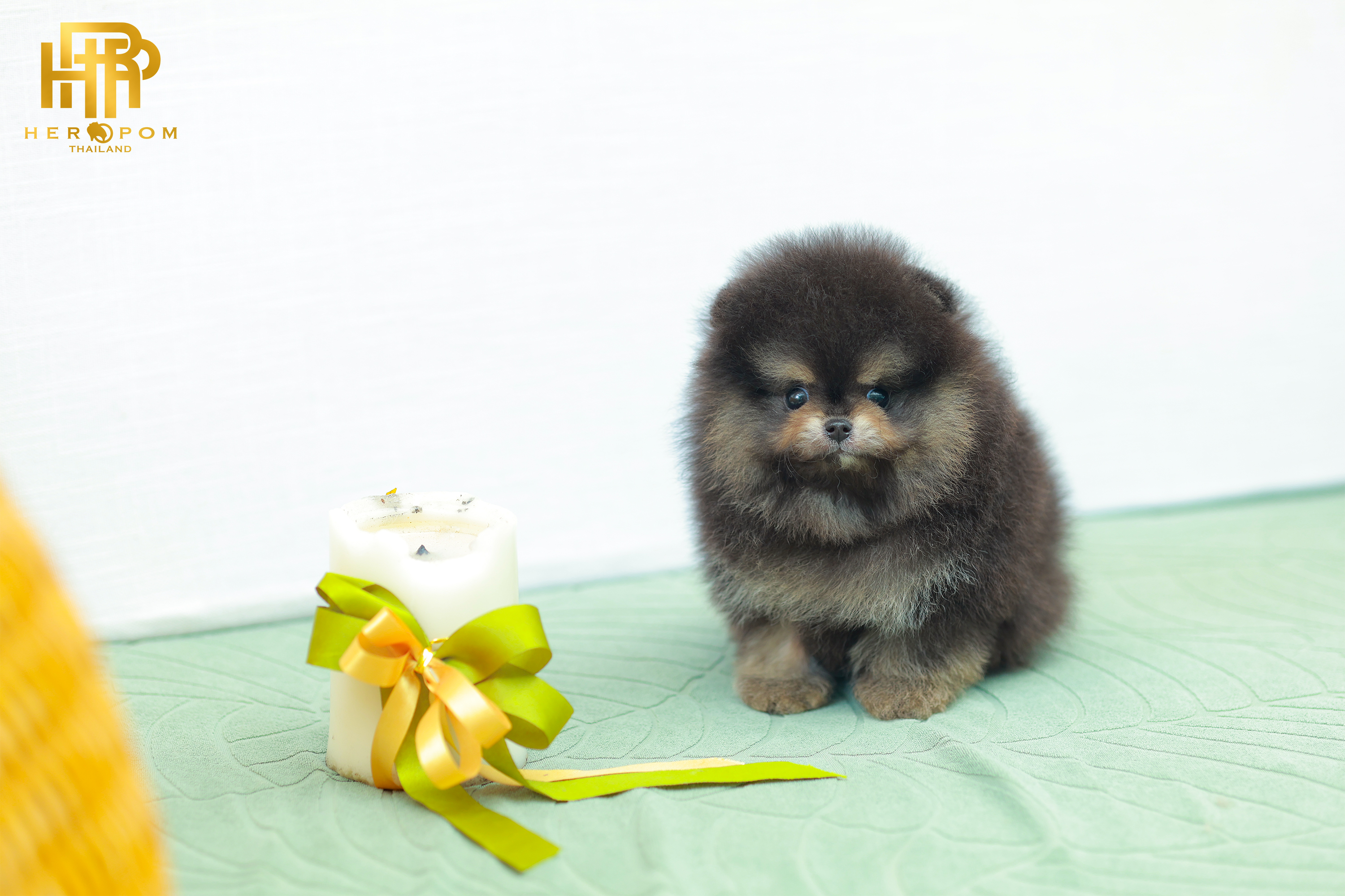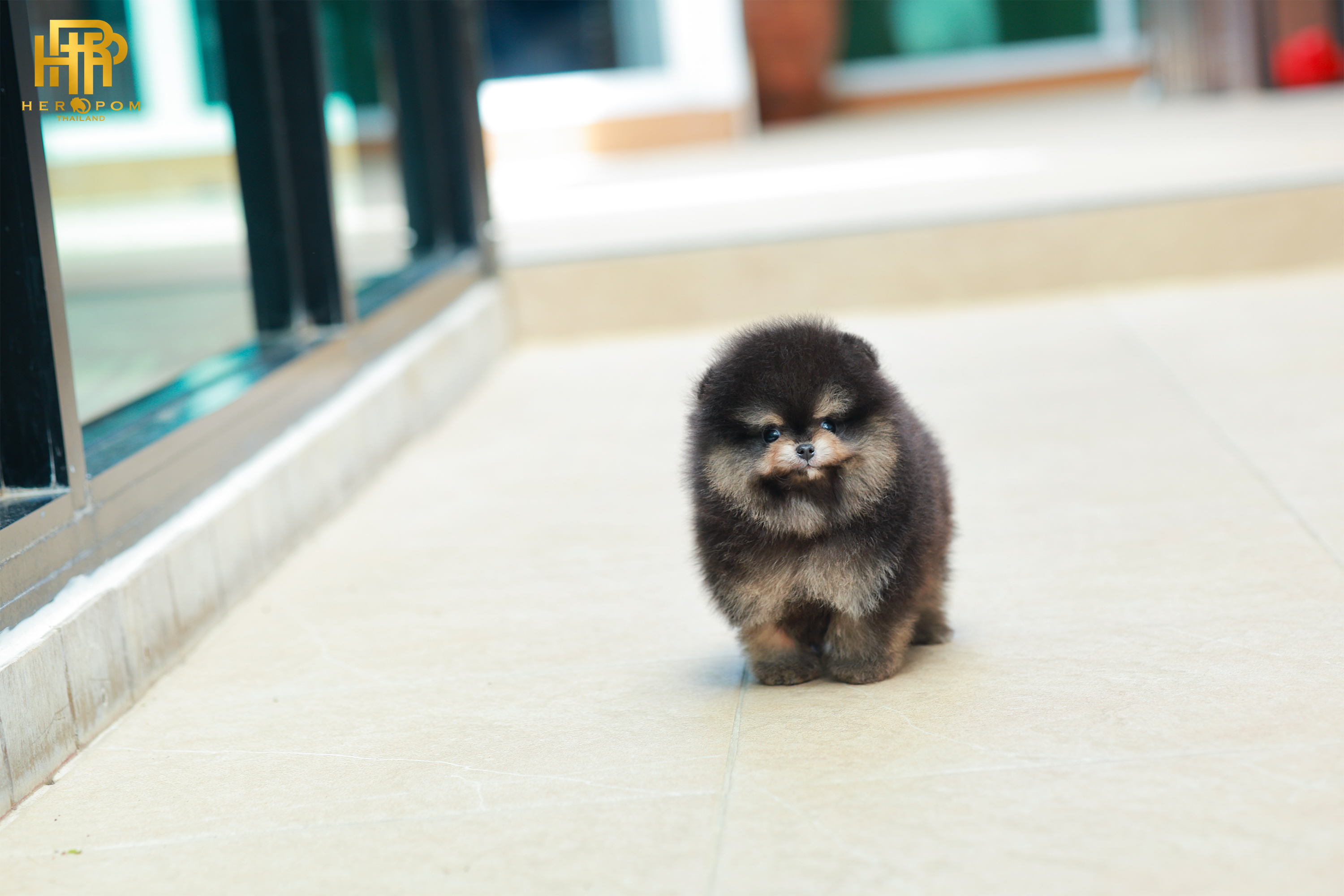 ปอมแท้ ปอมเมอเรเนียน HRM-68596 เพศชาย สีแบล็คแทน อายุ 2 เดือน หน้าตาน่ารัก ขาสั้น ขนแน่นฟู ขี้เล่นมาก