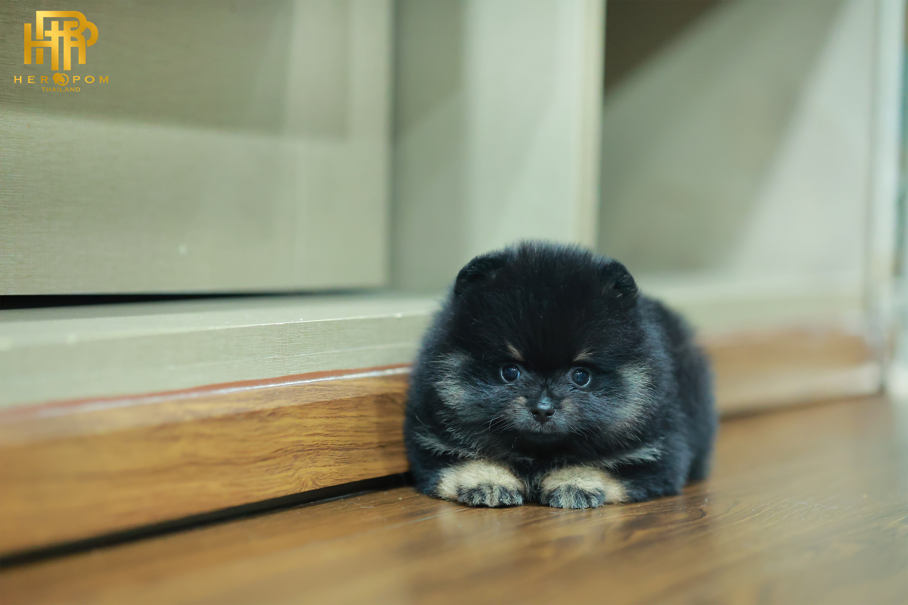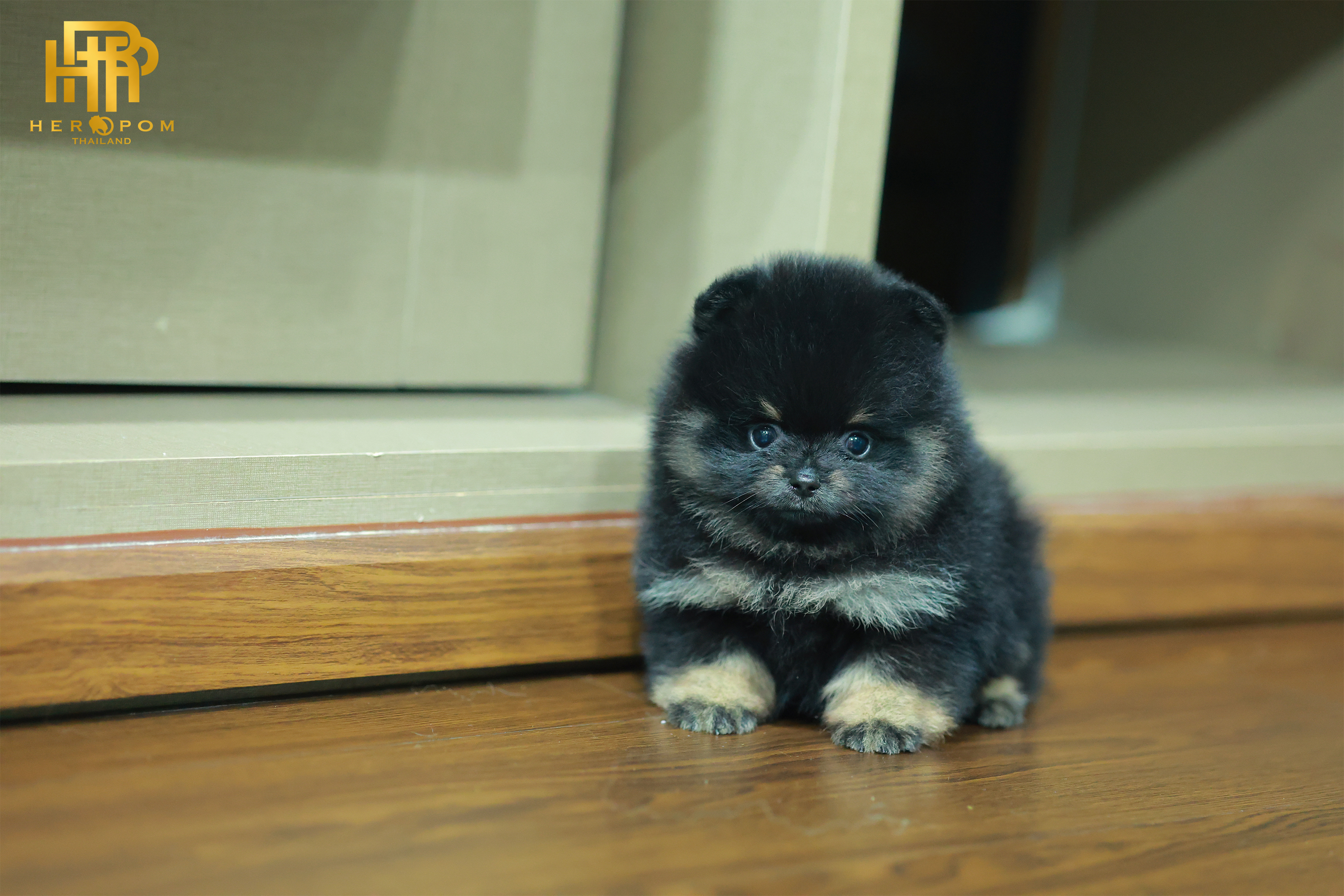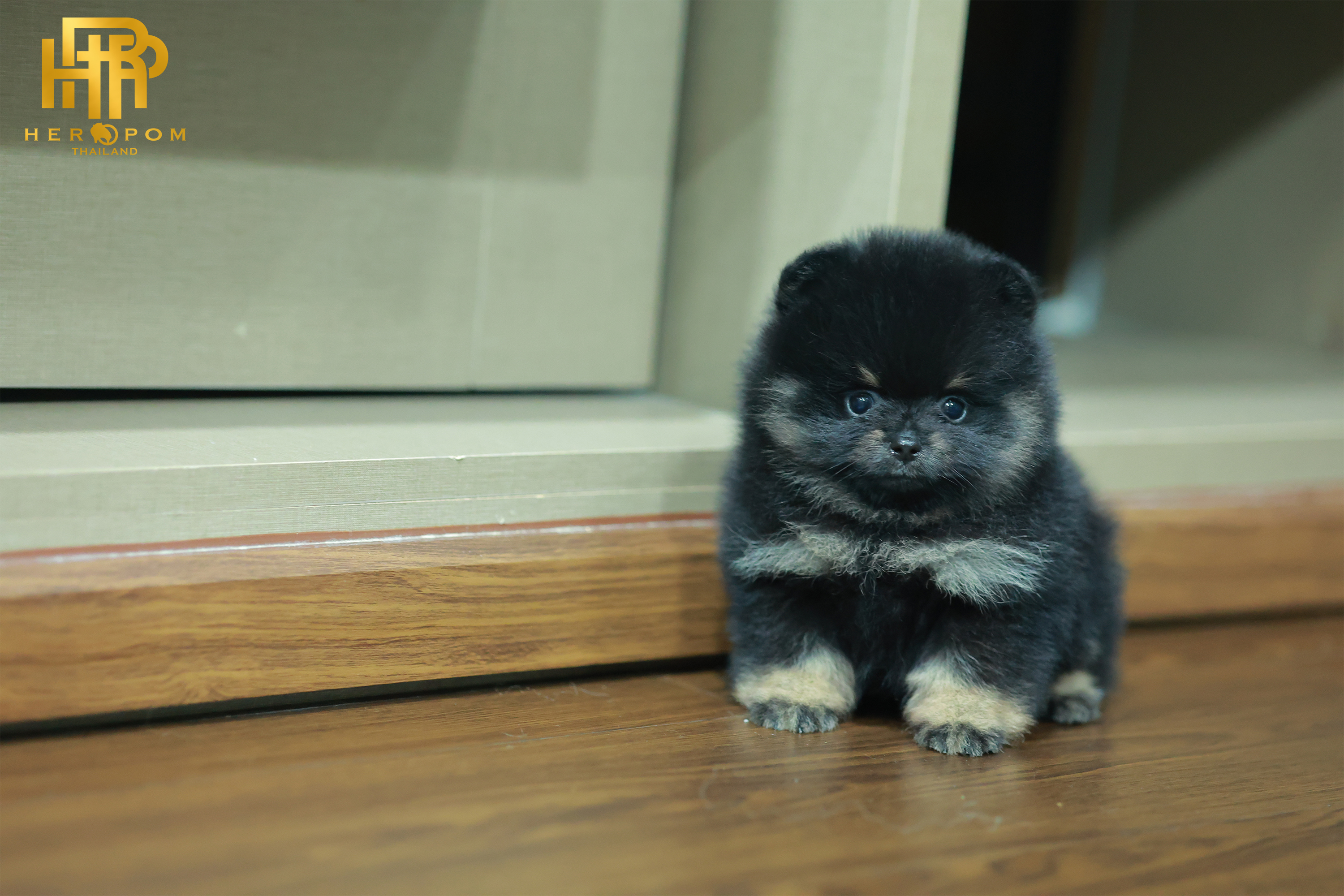 ปอมแท้ ปอมเมอเรเนียน HRF-68588 เพศหญิง สีแบล็คแทน อายุ 2 เดือน หน้าตาน่ารัก ขาสั้น ขนแน่นฟู ขี้เล่นมาก