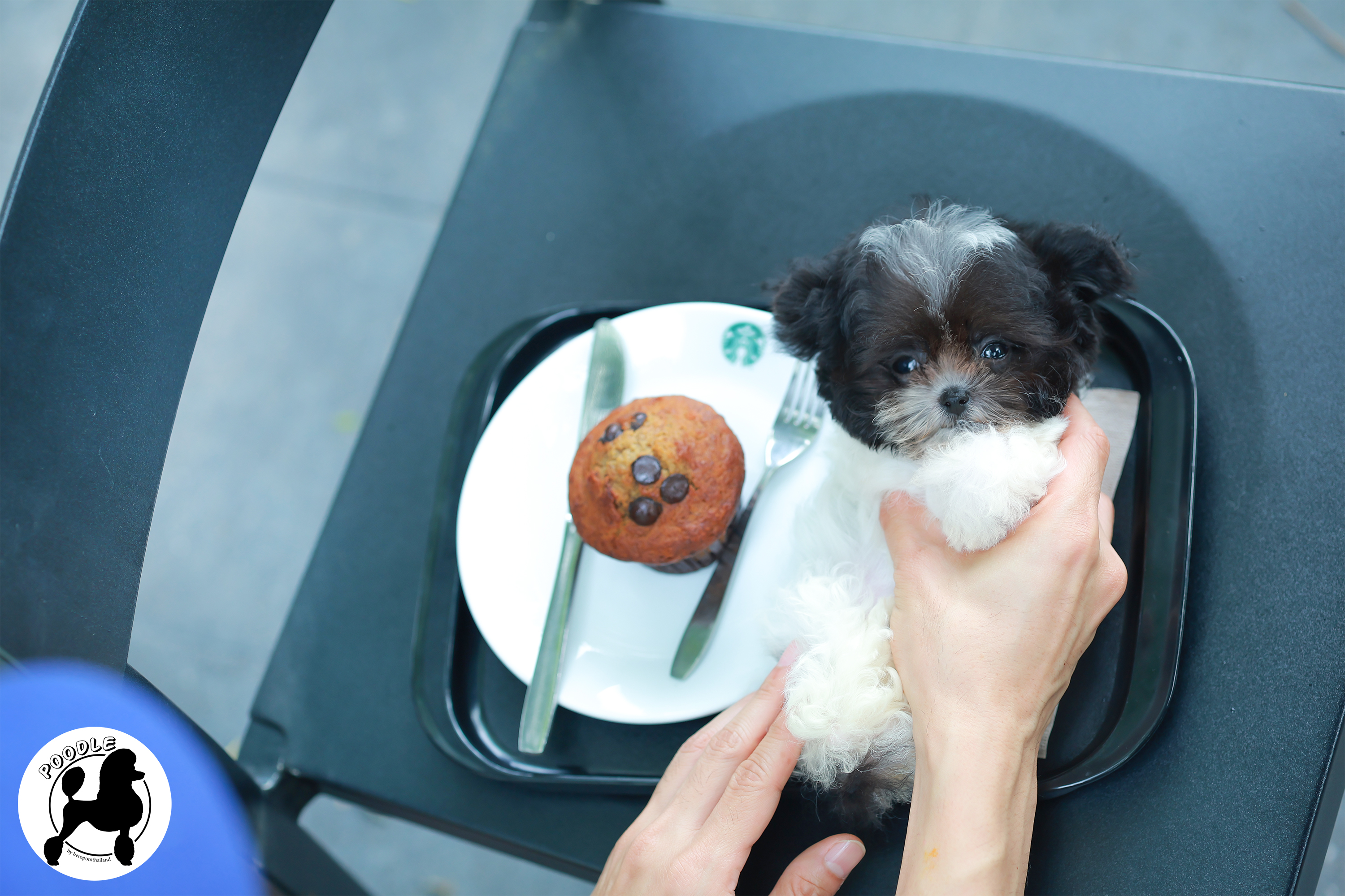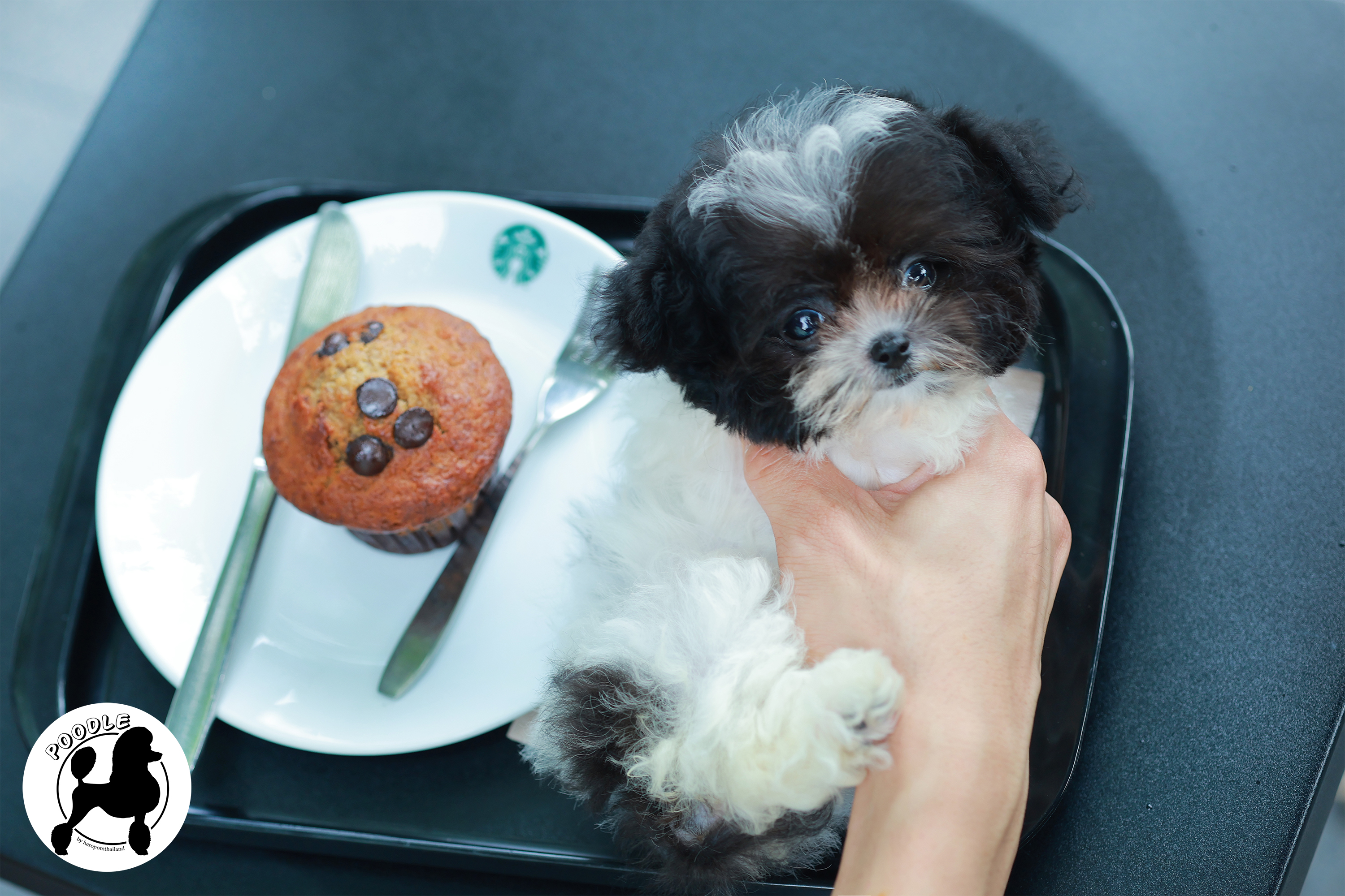 พุดเดิ้ล PDF-30653 เพศหญิง สีขาวดำ อายุ 2 เดือน ตัวเล็ก ขาสั้น หน้าสั้น ขนแน่นฟู
