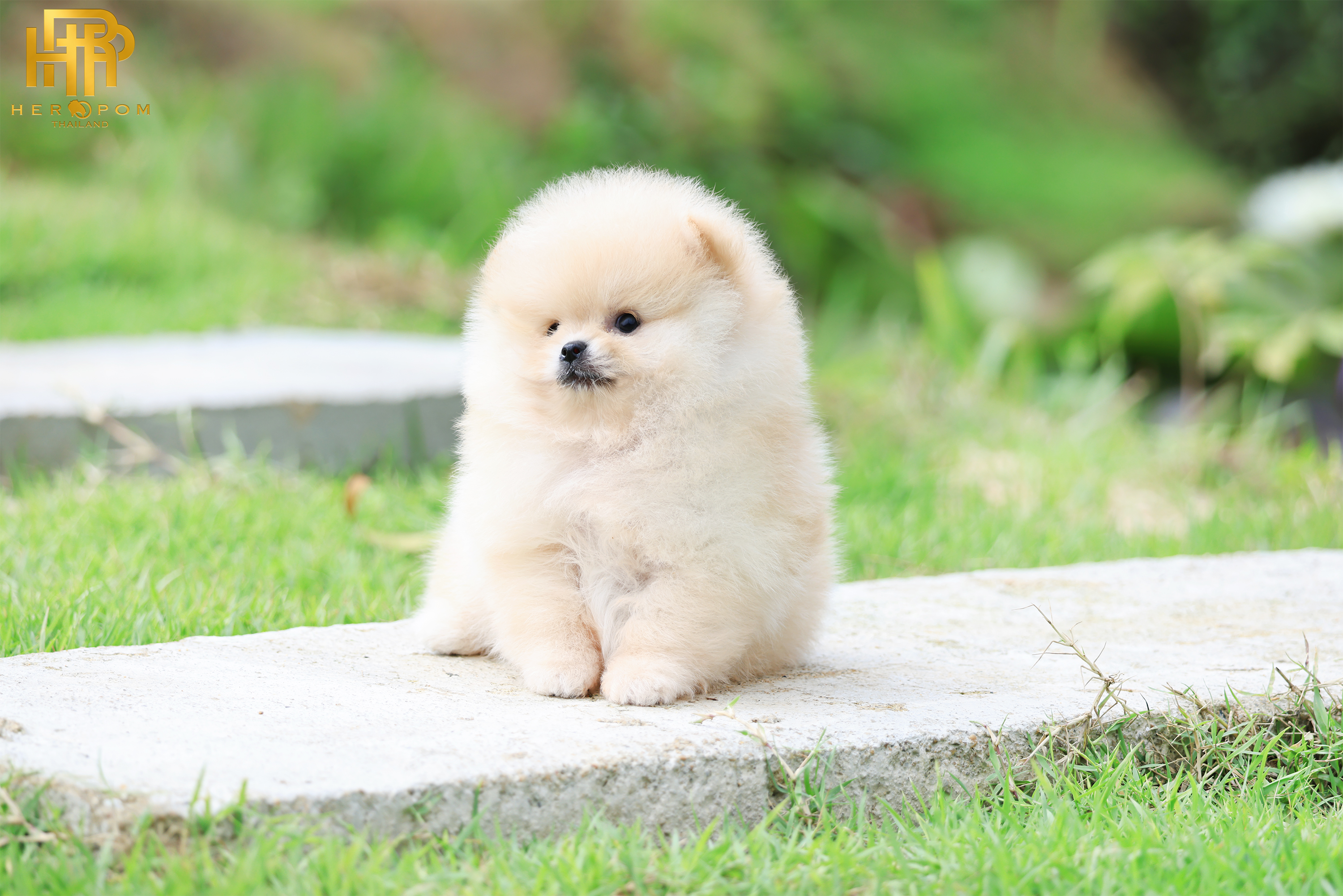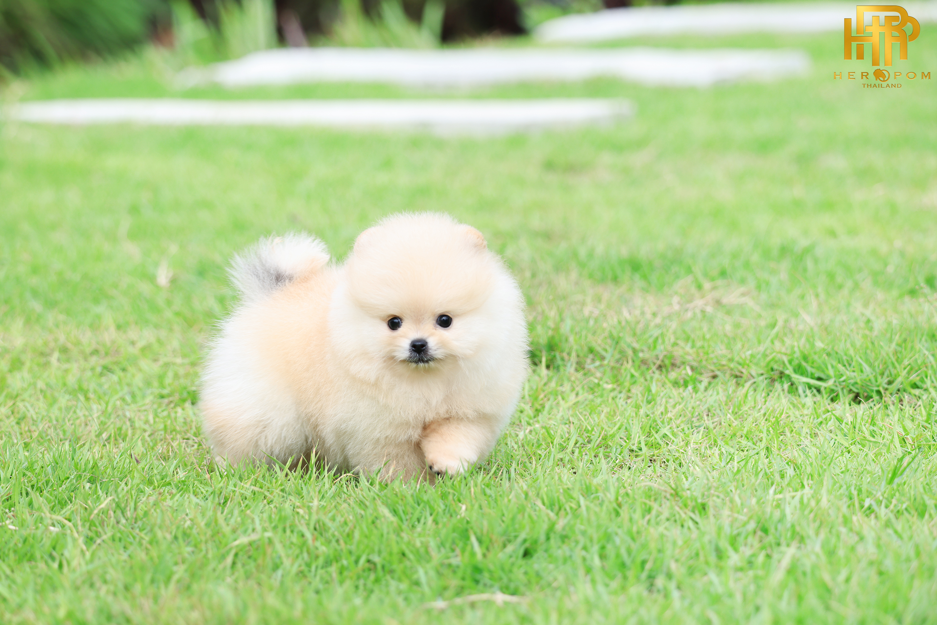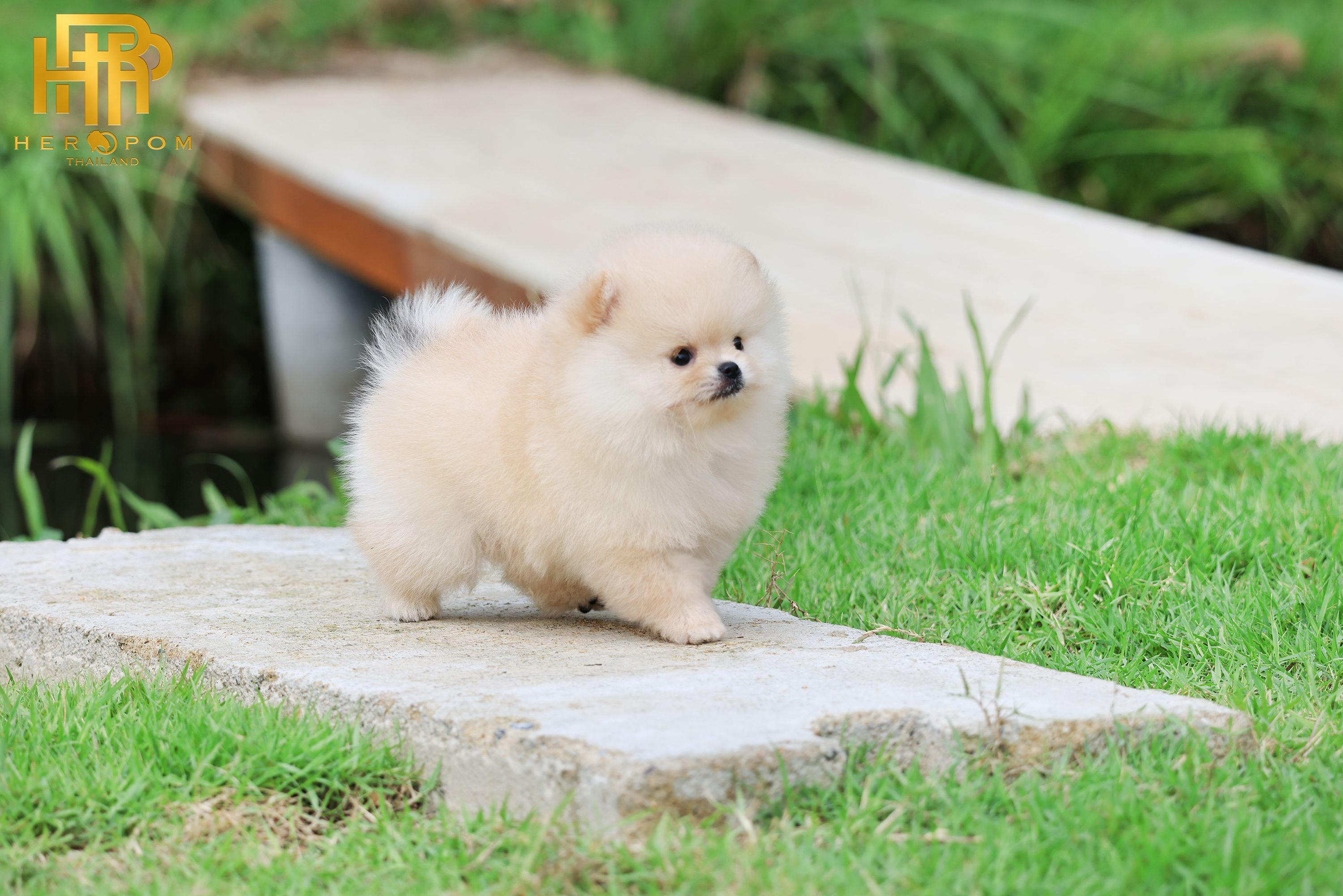ปอมแท้ ปอมเมอเรเนียน HRF-68356 เพศชาย สีครีม อายุ 2 เดือน หน้าตาน่ารัก ขาสั้น ขนแน่นฟู ขี้เล่นมาก