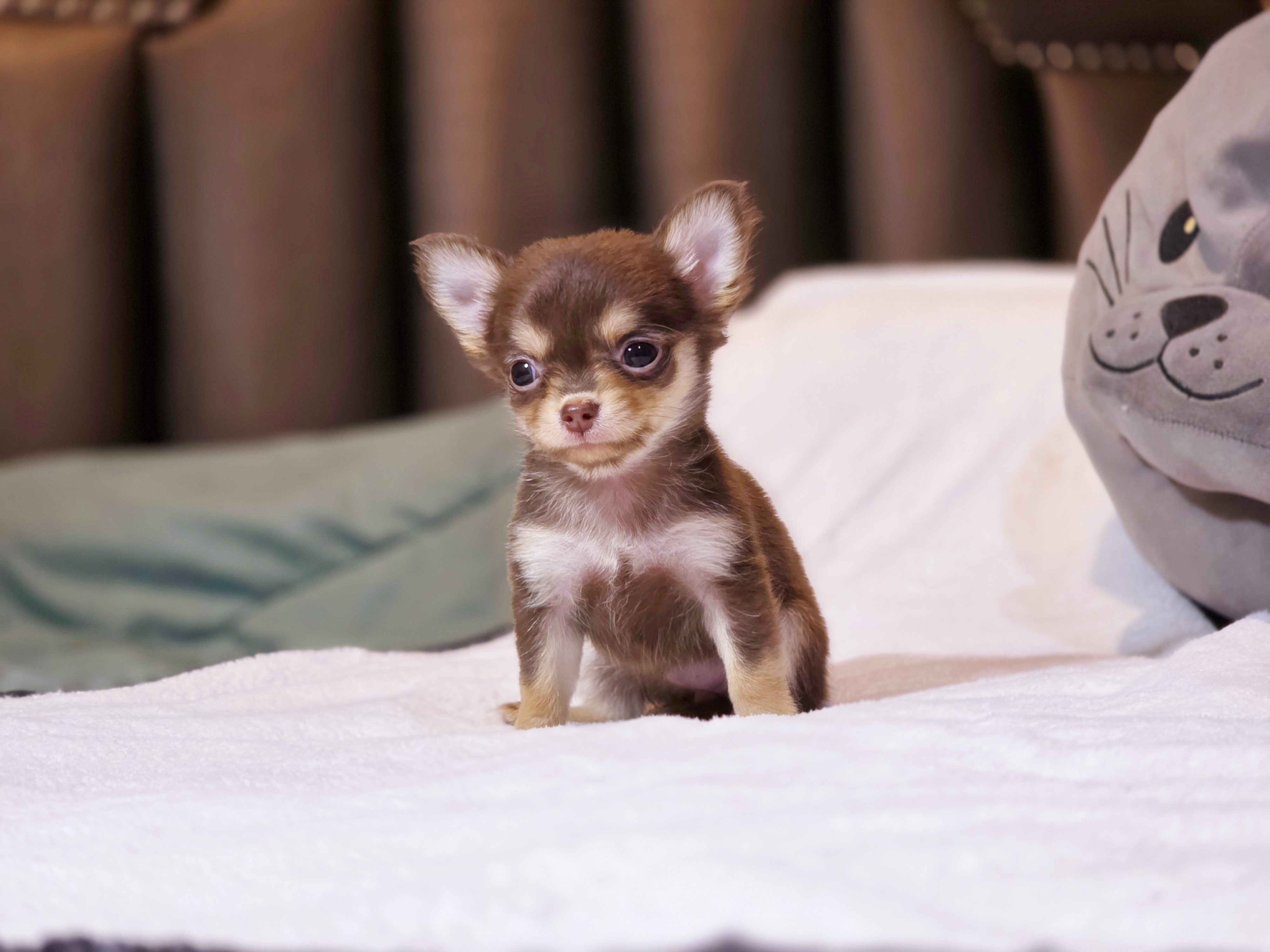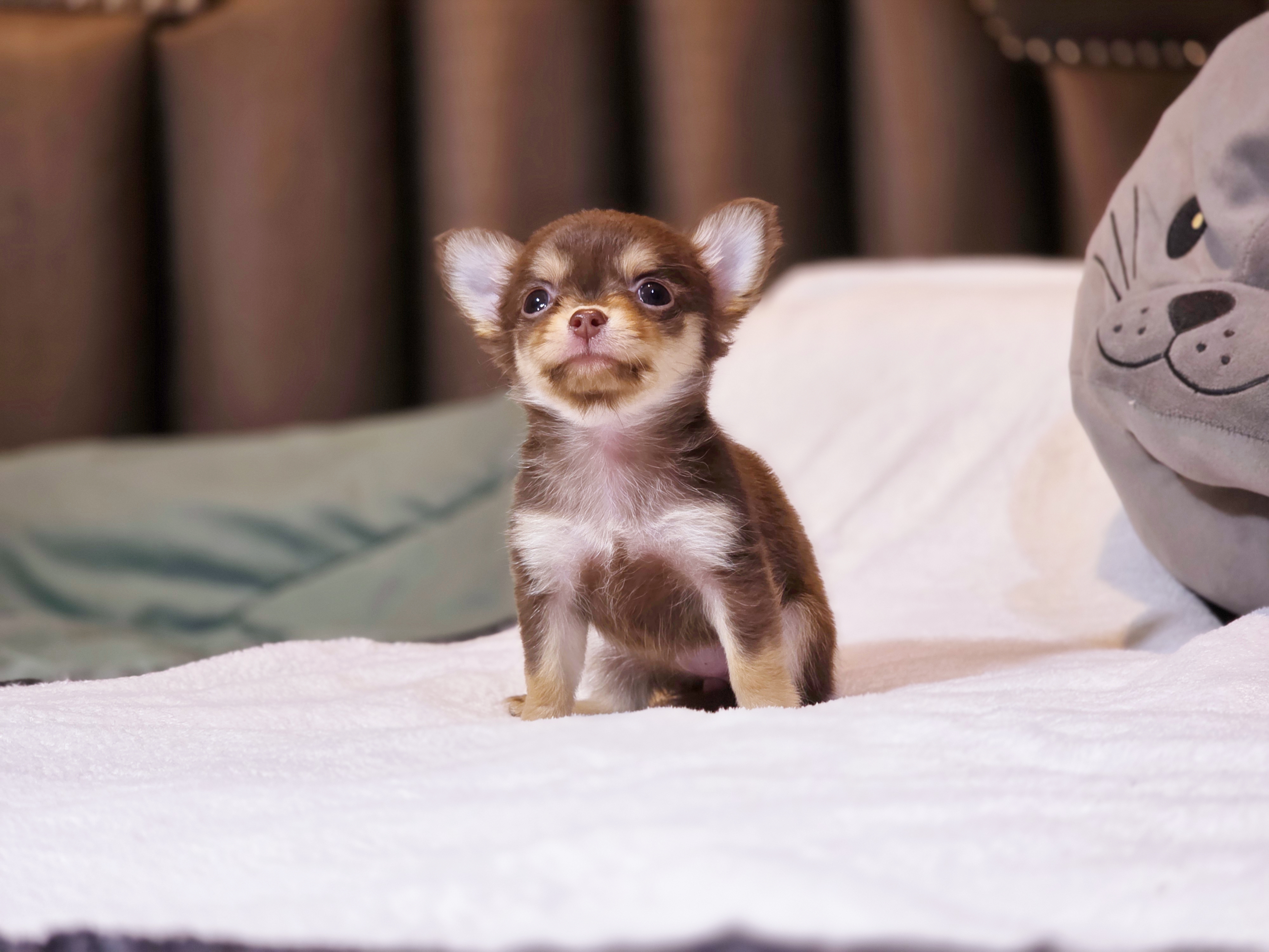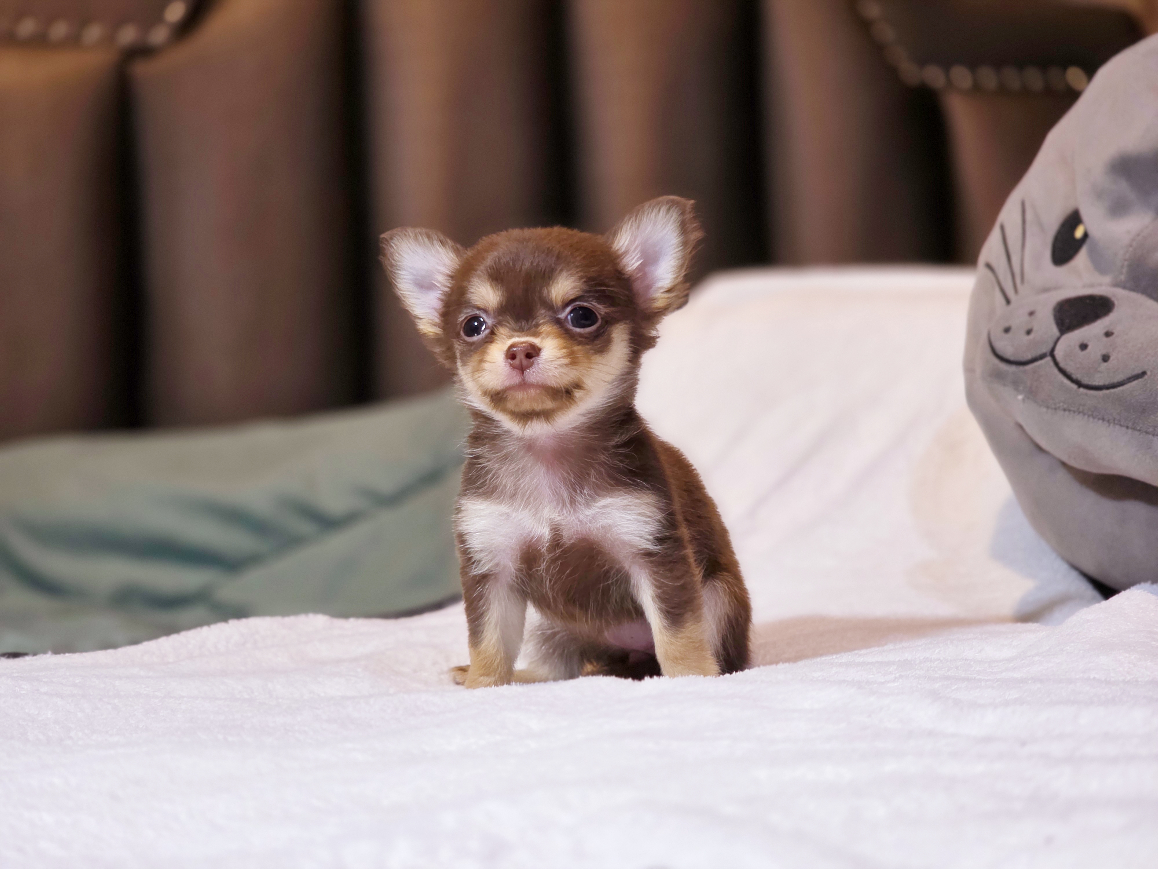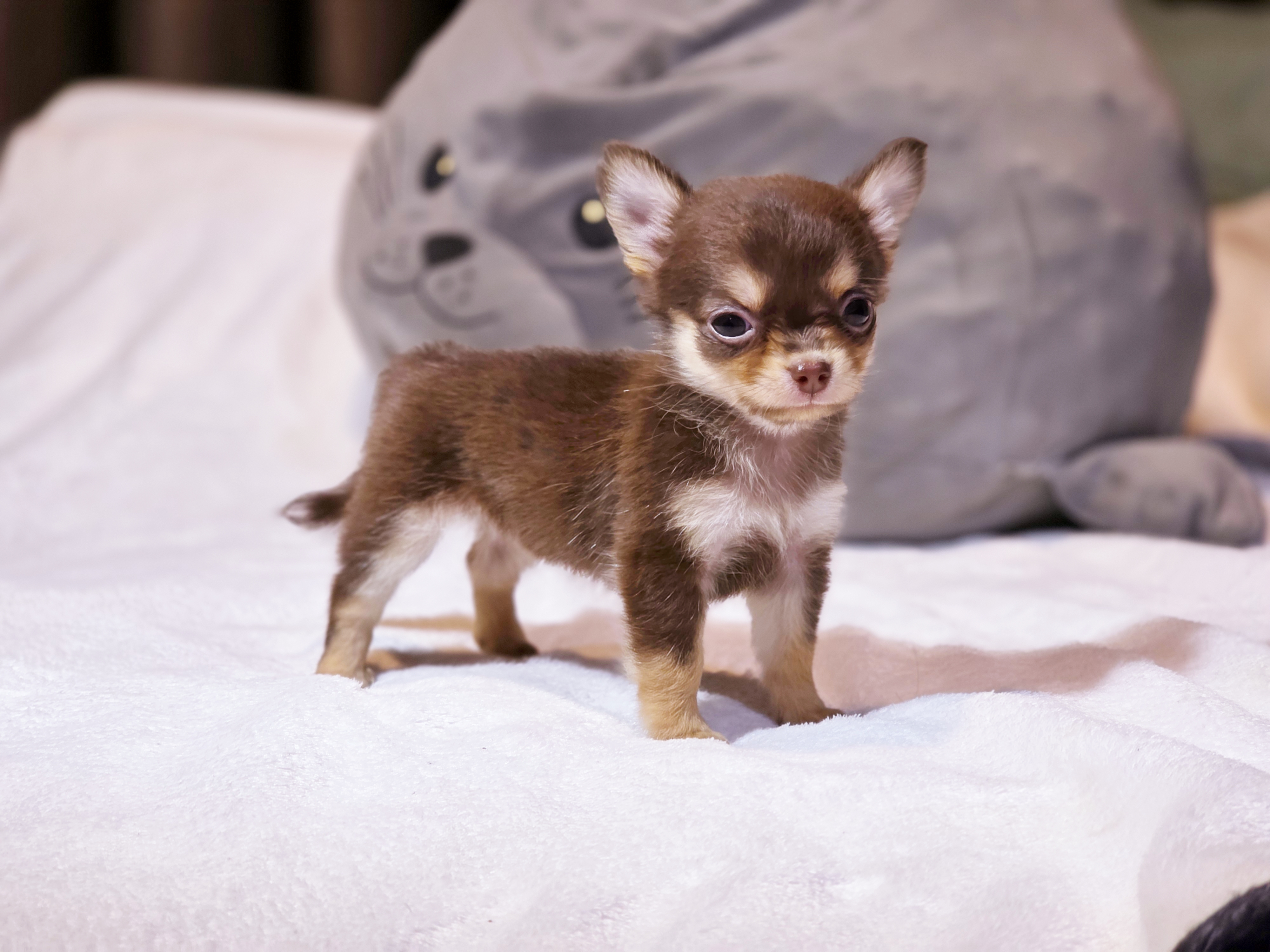 Chihuahua น้องไดอาน่า เพศเมีย ขนยาว สีช็อก sizeเล็ก