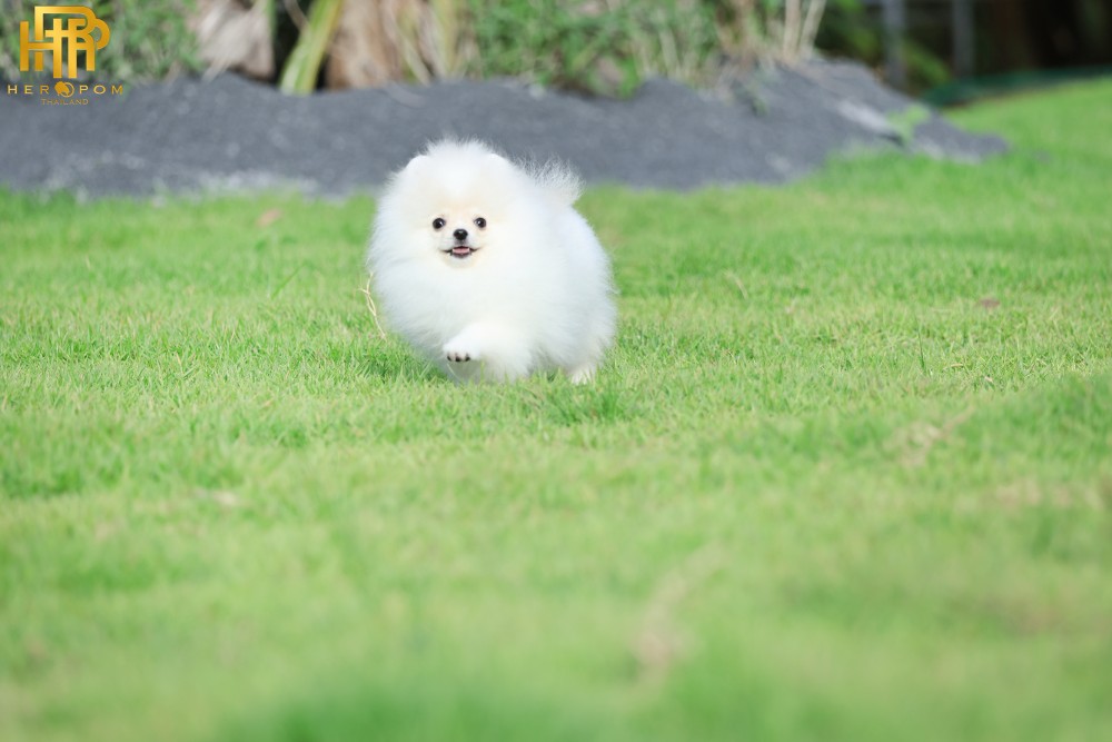 ปอมแท้ ปอมเมอเรเนียน HRF-26222 เพศหญิง สีขาว อายุ 2 เดือน หน้าตาน่ารัก ขาสั้น ขนแน่นฟู ขี้เล่นมาก