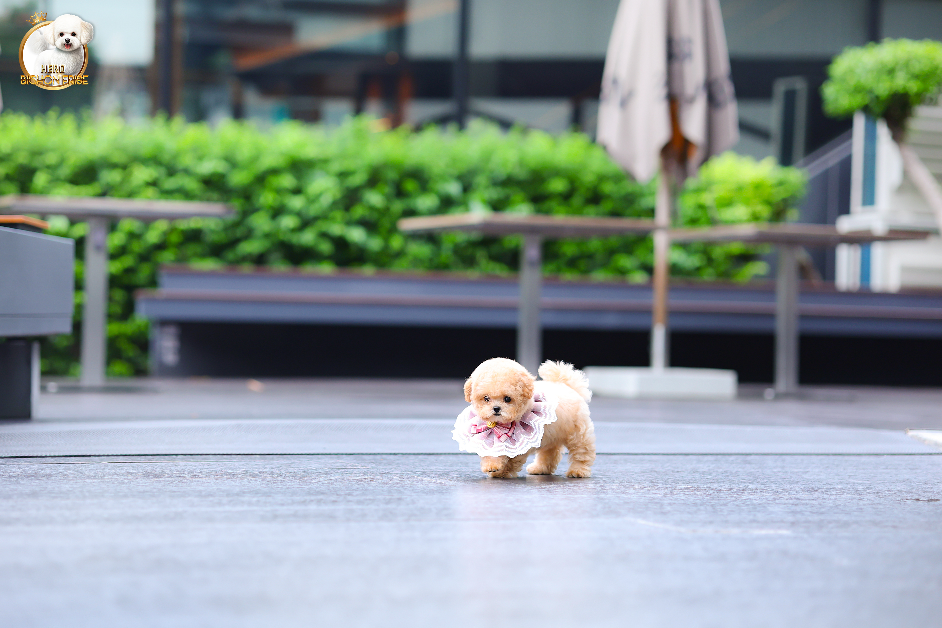 บิชองพู BCF-35597 เพศหญิง สีแชมเปญ อายุ 2 เดือน หน้าตาน่ารัก ขาสั้น ขนแน่นฟู ขี้เล่นมาก