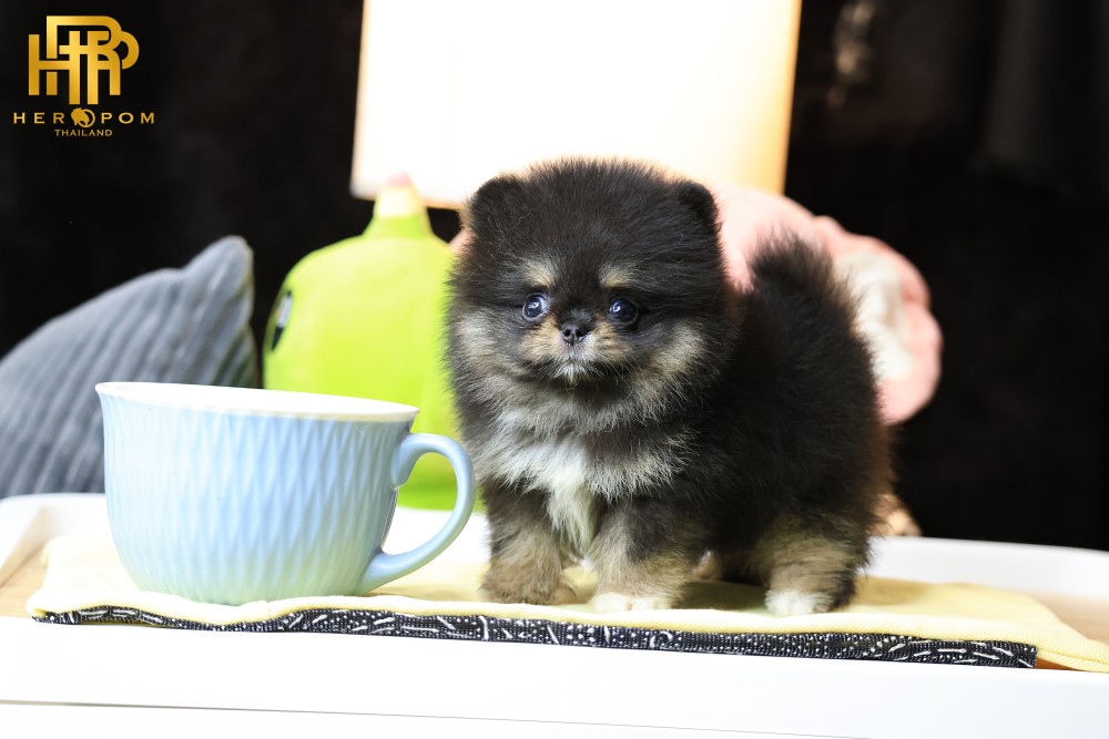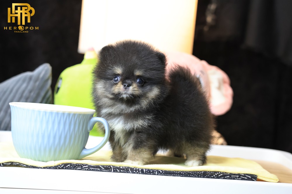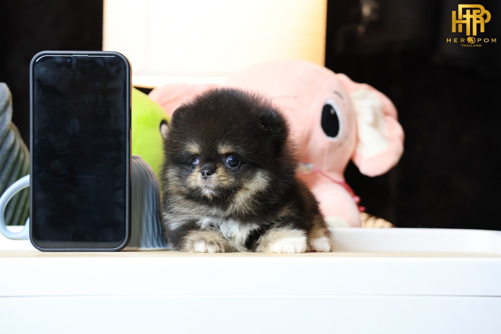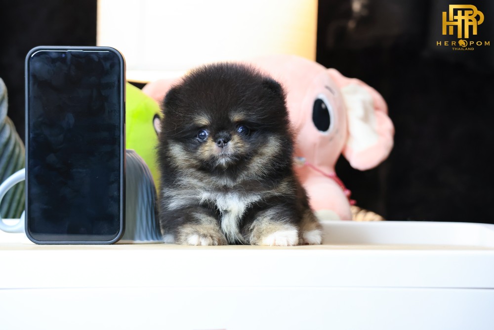 ปอมหน้าหมี ปอมแท้ ปอมเมอเรเนียน HRF-68752 เพศหญิง สีแบล็คแทน อายุ 2 เดือน หน้าตาน่ารัก ขาสั้น ขนแน่นฟู