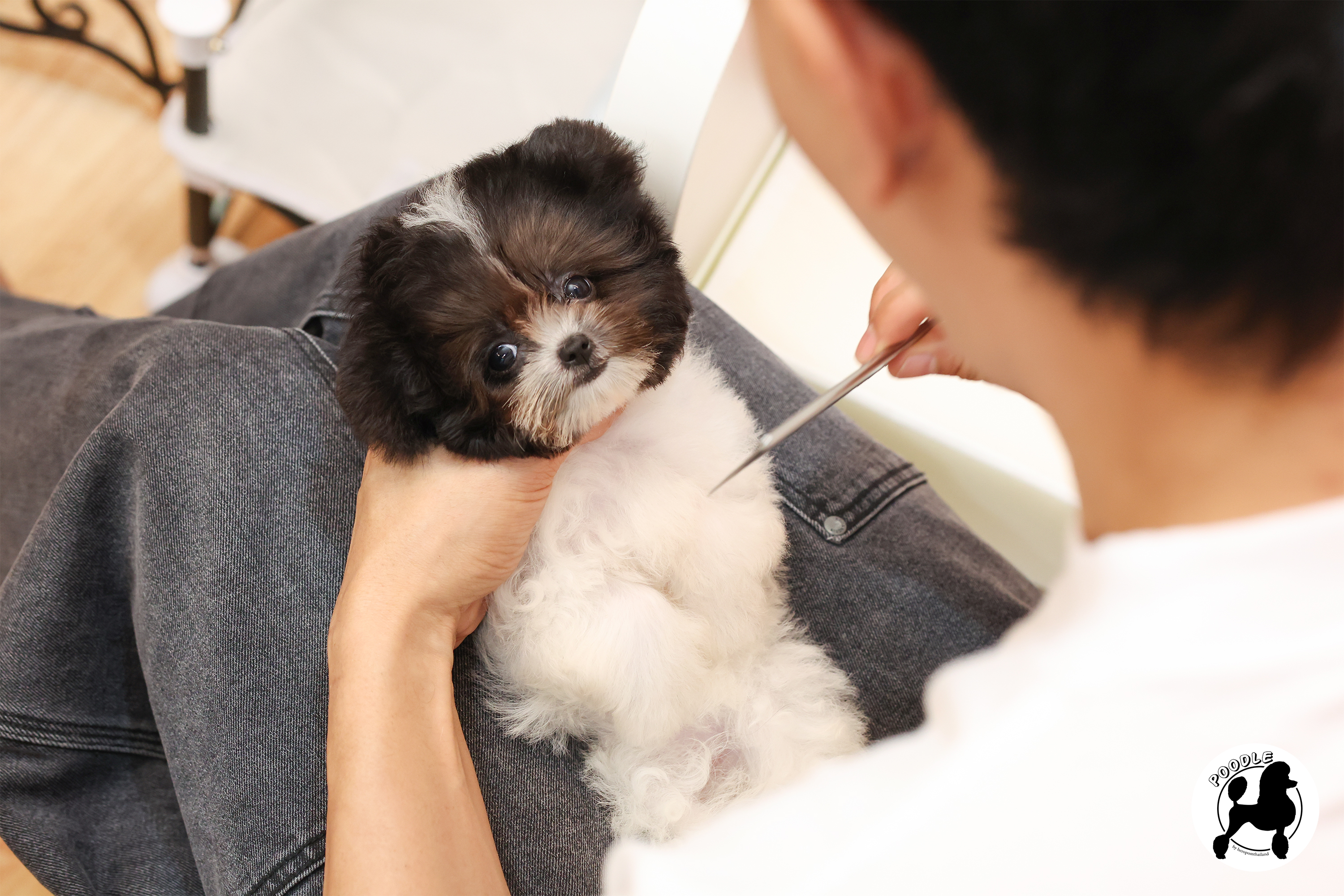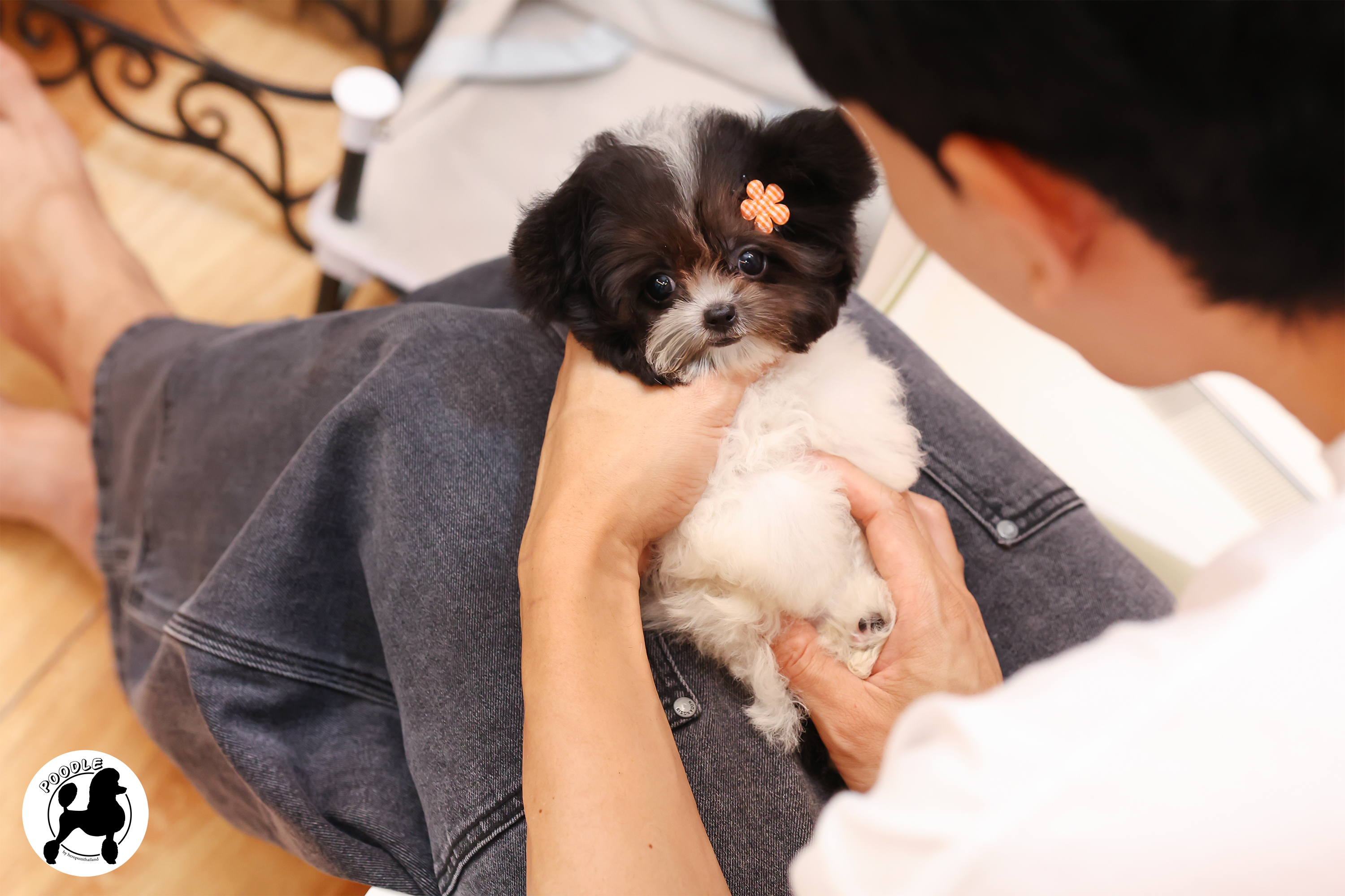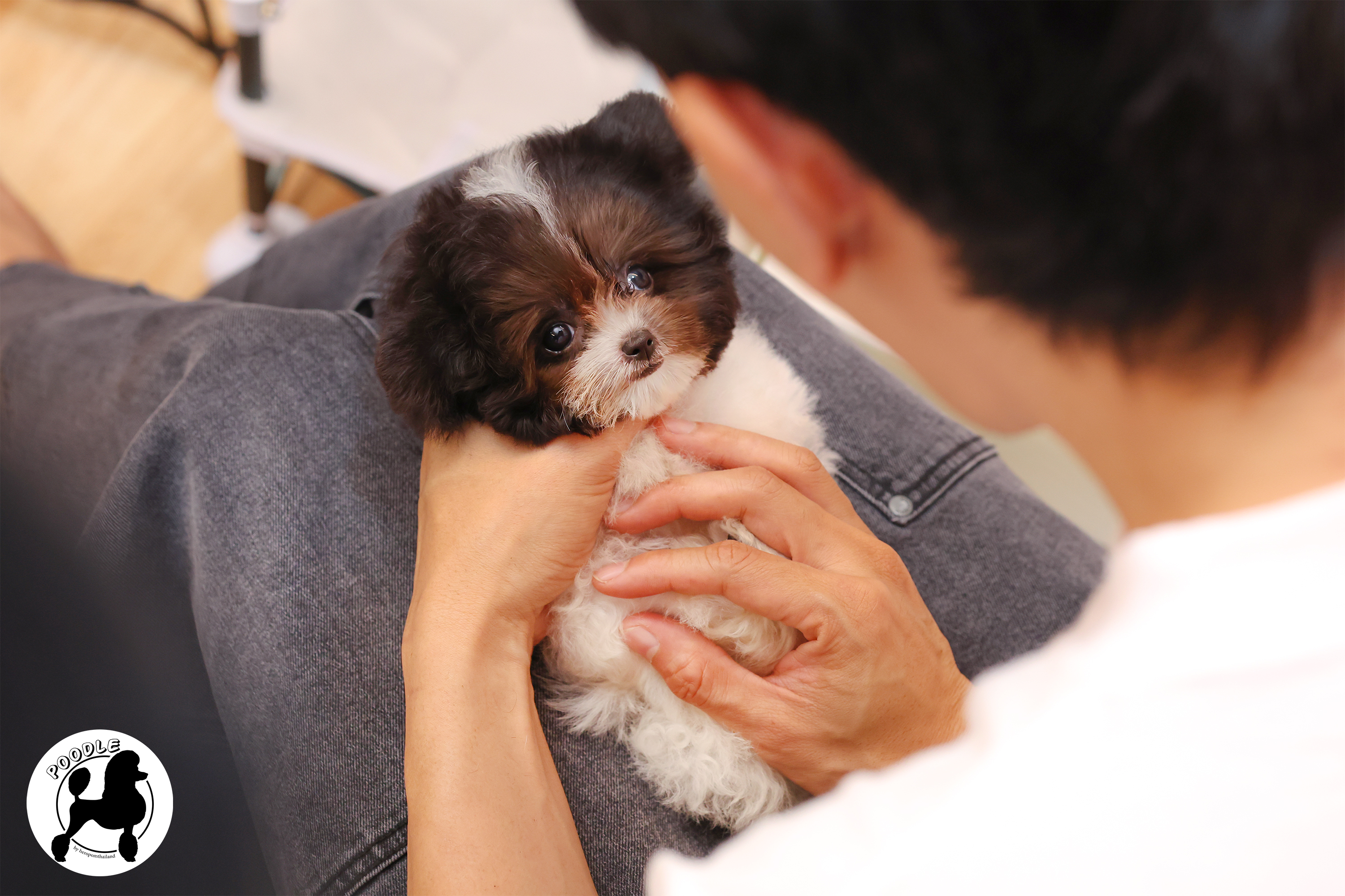พุดเดิ้ล PDF-30653 เพศหญิง สีขาวดำ อายุ 2 เดือน ตัวเล็ก ขาสั้น หน้าสั้น ขนแน่นฟู