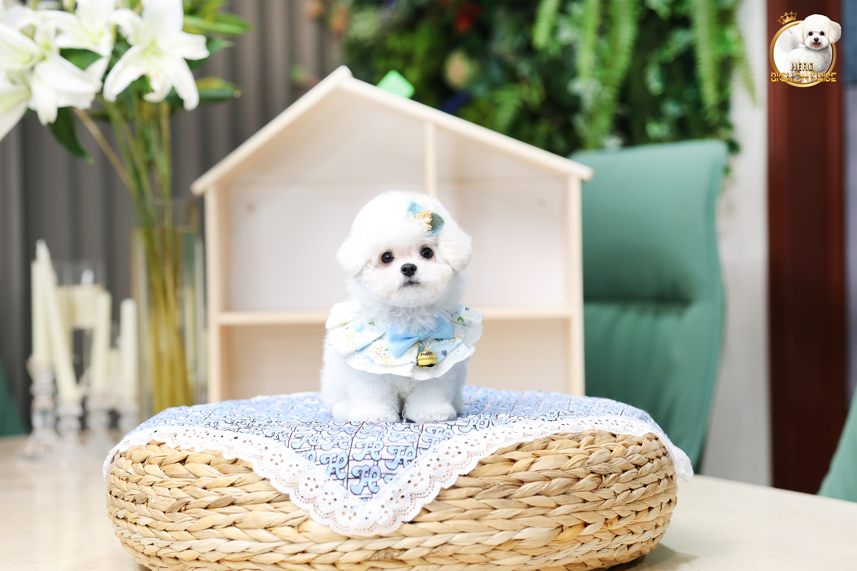 มินิบิชอง BCF-24577 เพศหญิง สีขาว อายุ 2 เดือน หน้าตาน่ารัก ขาสั้น ขนแน่นฟู ขี้เล่นมาก