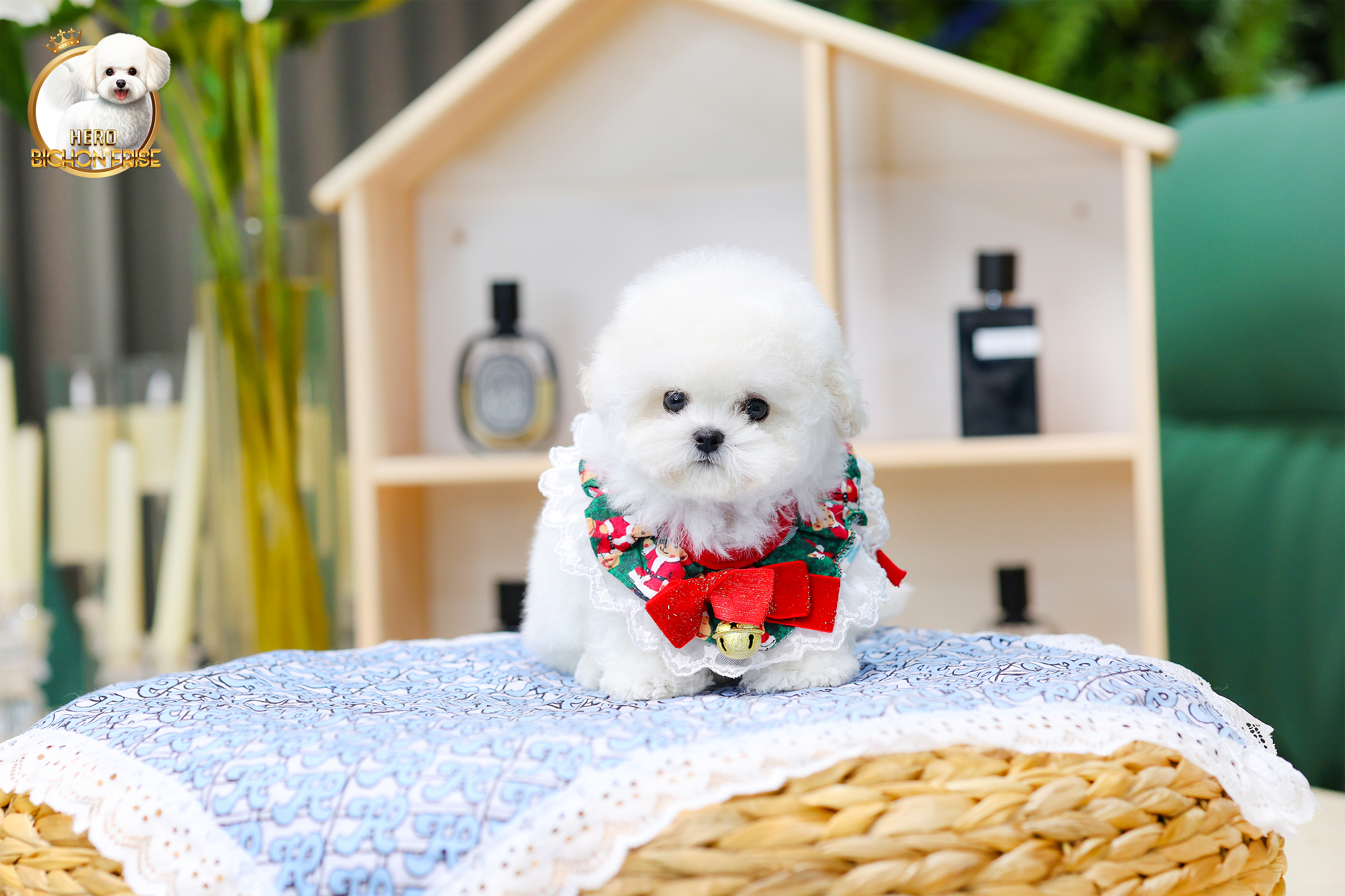 มินิบิชอง BCM-24562 เพศชาย สีขาว อายุ 2 เดือน หน้าตาน่ารัก ขาสั้น ขนแน่นฟู ขี้เล่นมาก