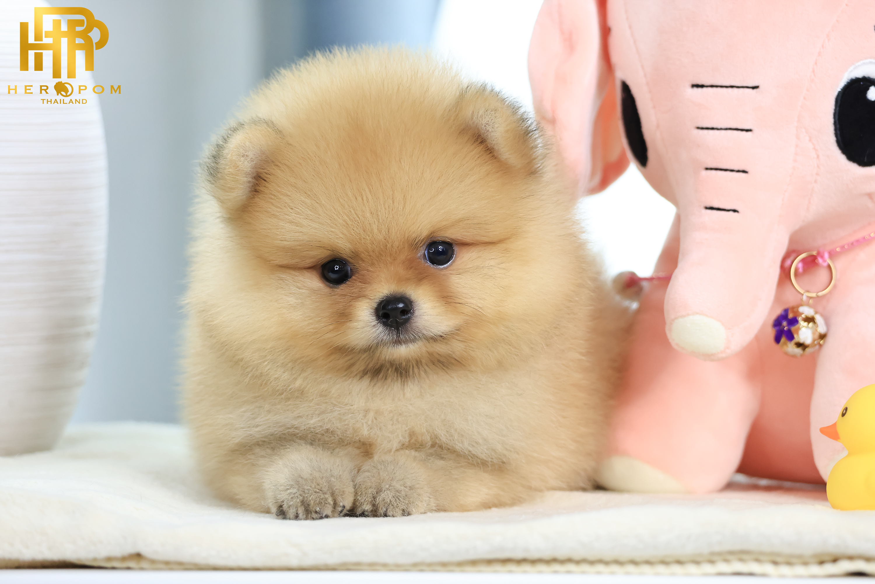 ปอมแท้ ปอมเมอเรเนียน HRM-68120 เพศชาย สีส้ม อายุ 2 เดือน หน้าตาน่ารัก ขาสั้น ขนแน่นฟู