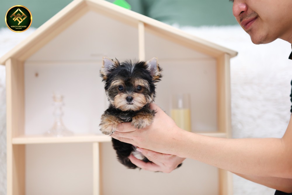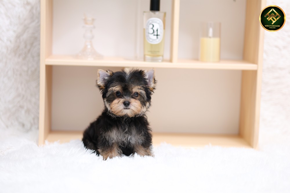 ยอร์คเชียร์ เทอร์เรีย HYM-68114 เพศชาย สีแบล็คแทน อายุ 2 เดือน หน้าตาน่ารัก ขาสั้น ขนแน่นฟู ขี้เล่นมาก