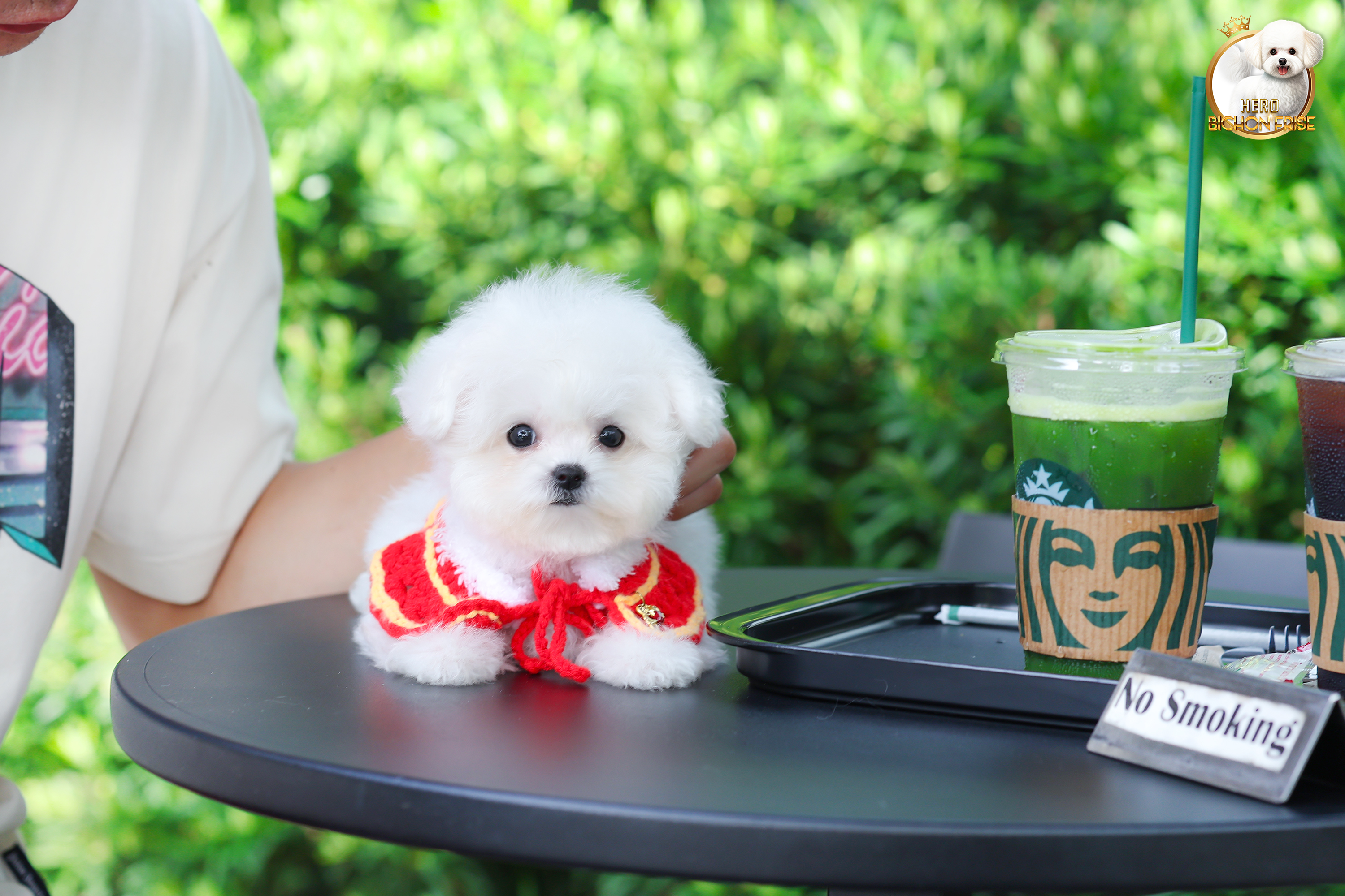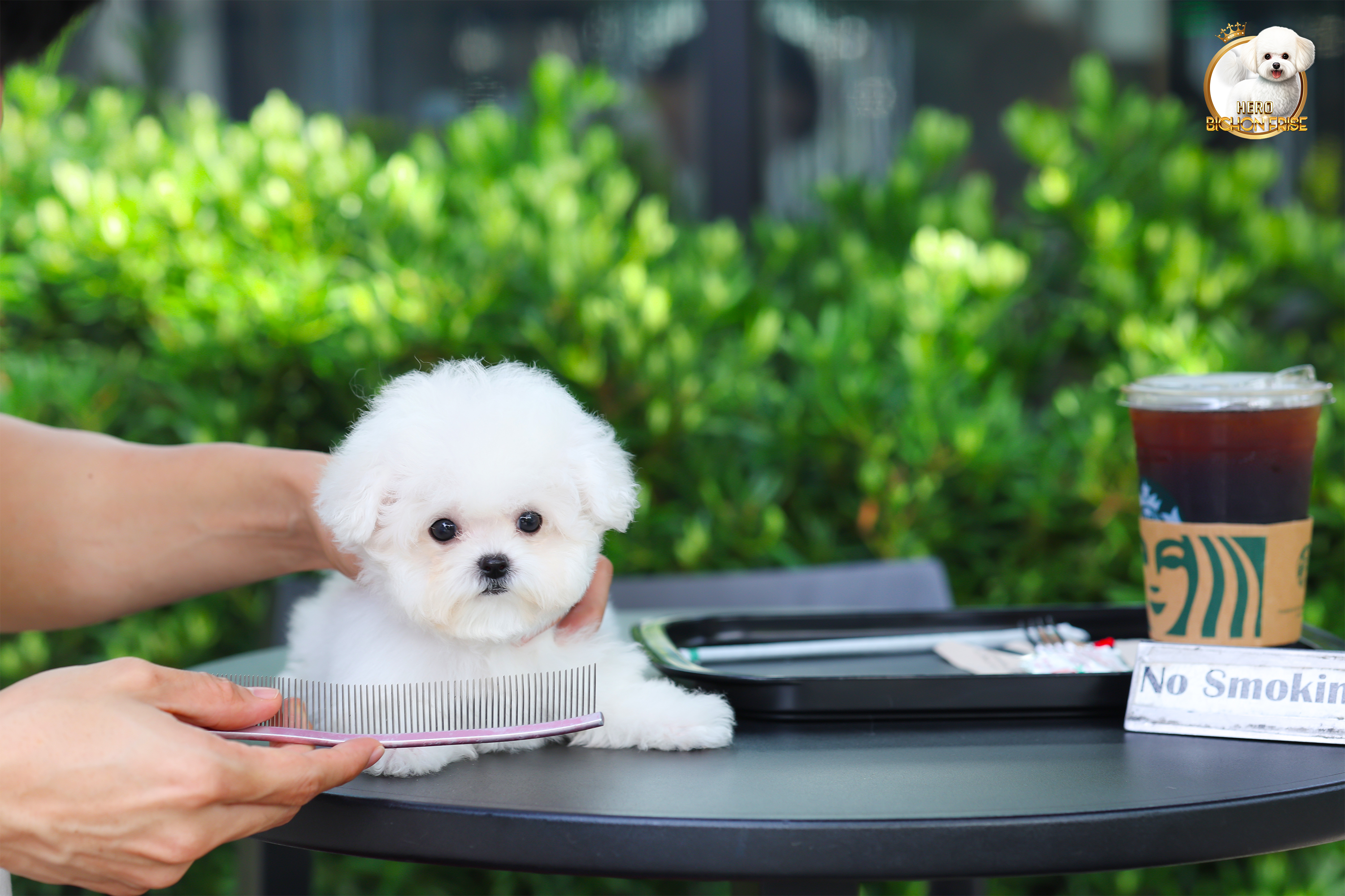 มินิบิชอง BCF-52910 เพศหญิง สีขาว อายุ 2 เดือน หน้าตาน่ารัก ขาสั้น ขนแน่นฟู ขี้เล่นมาก