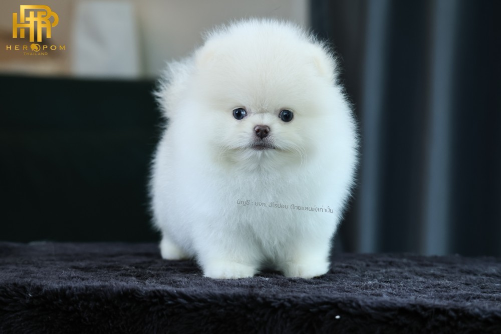 ปอมแท้ ปอมเมอเรเนียน HRM-68118 เพศชาย สีขาว อายุ 2 เดือน หน้าตาน่ารัก ขาสั้น ขนแน่นฟู ขี้เล่นมาก