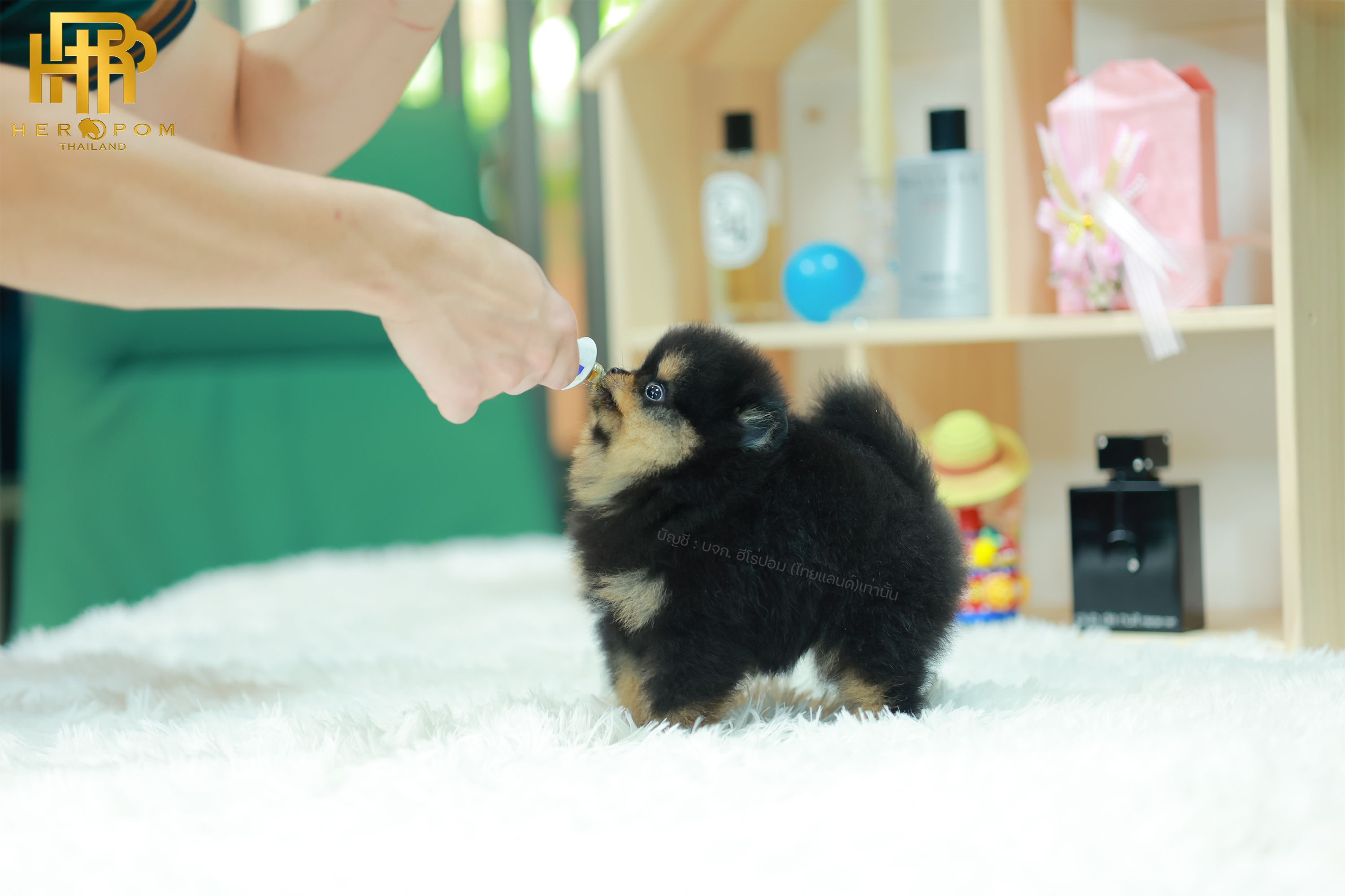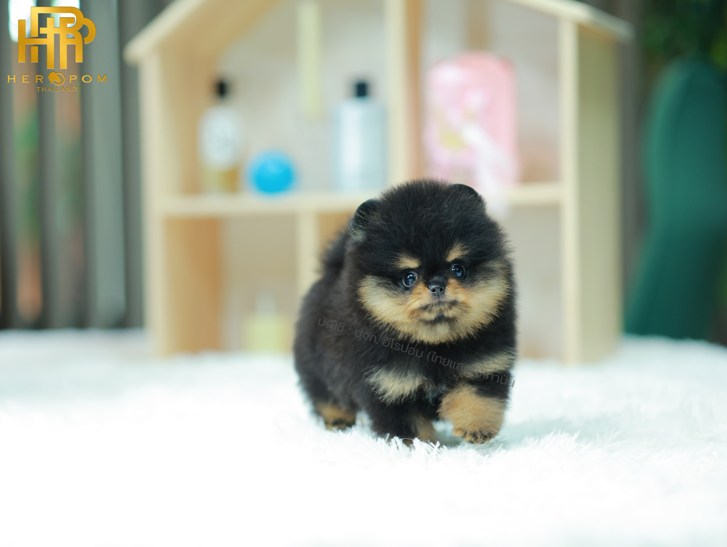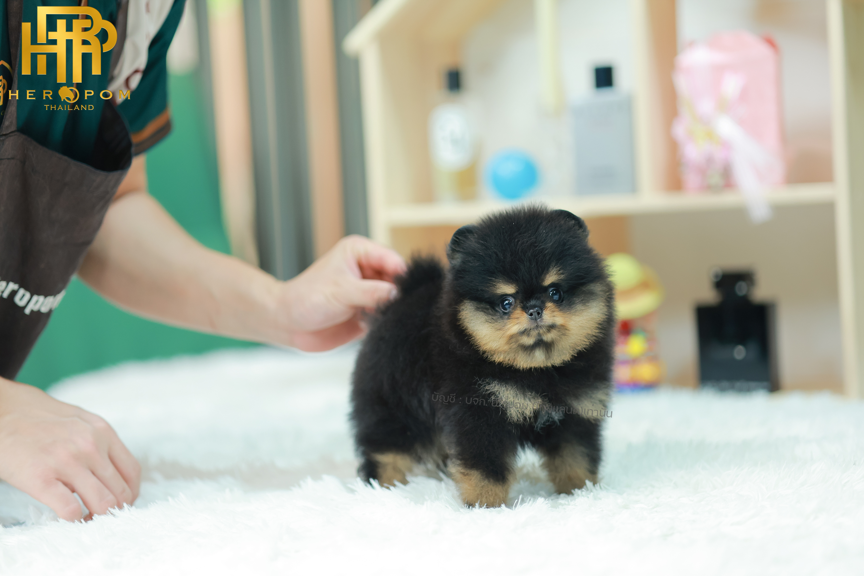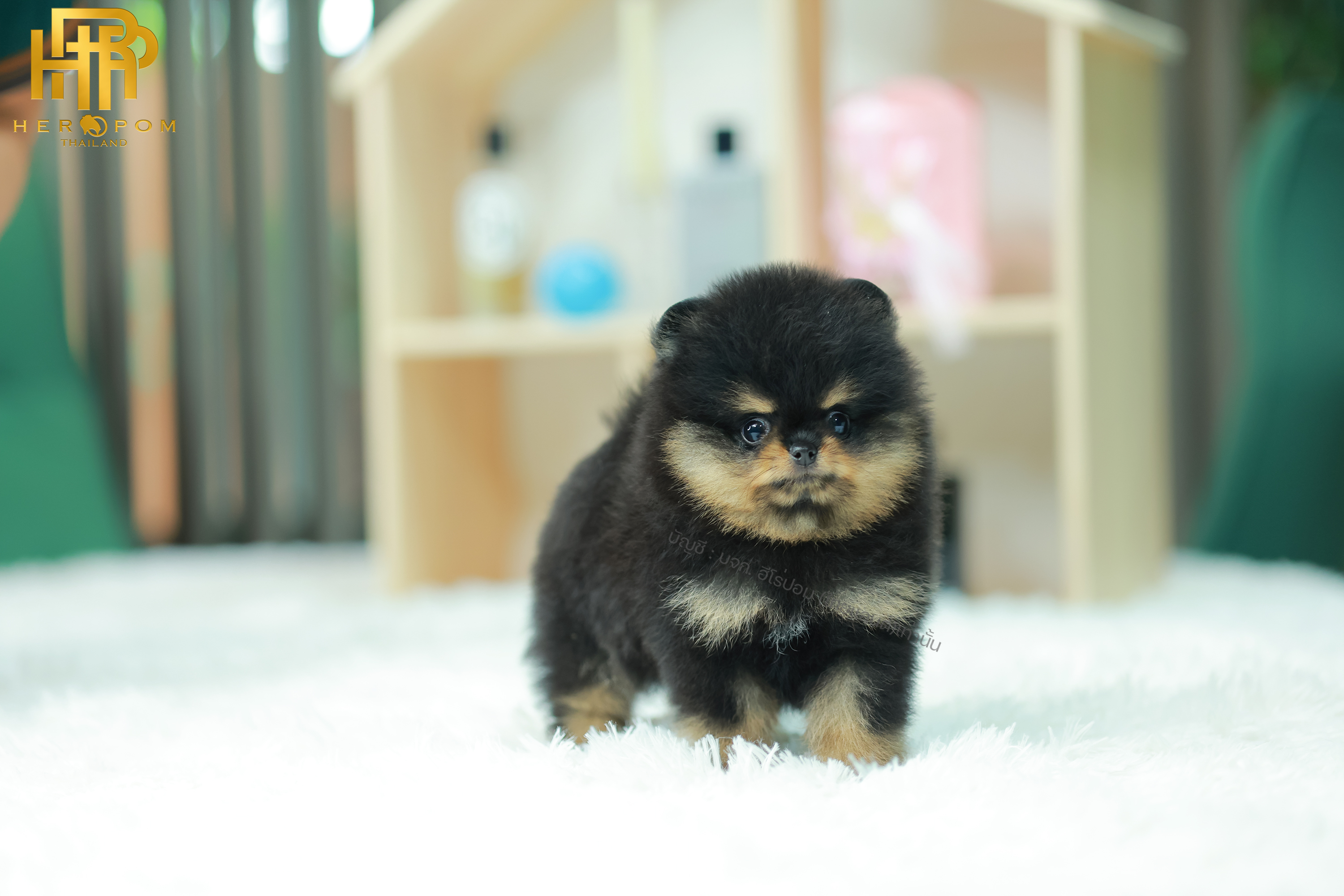 ปอมแท้ ปอมเมอเรเนียน HRF-68109 เพศหญิง สีแบล็คแทน อายุ 2 เดือน หน้าตาน่ารัก ขาสั้น ขนแน่นฟู ขี้เล่นมาก