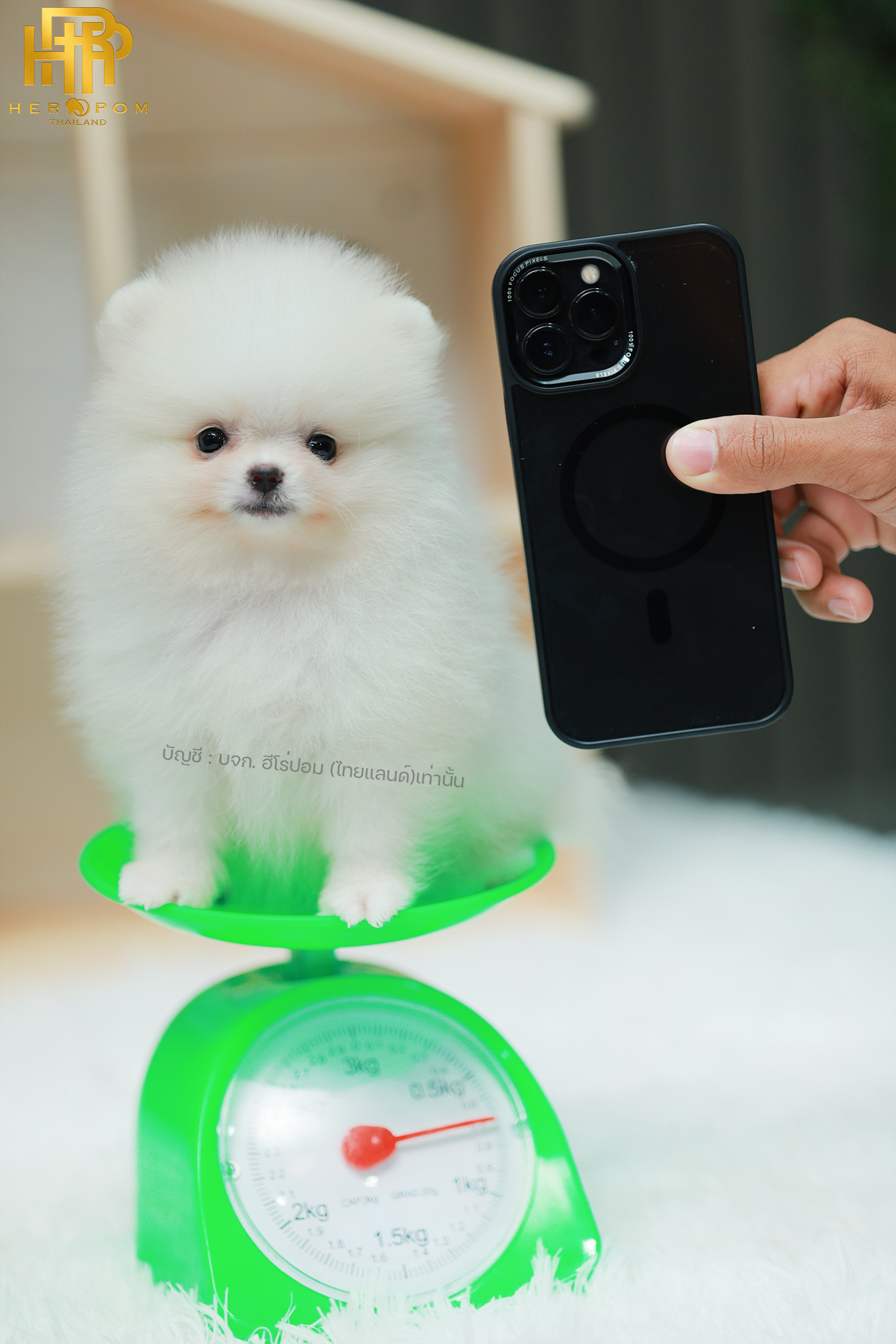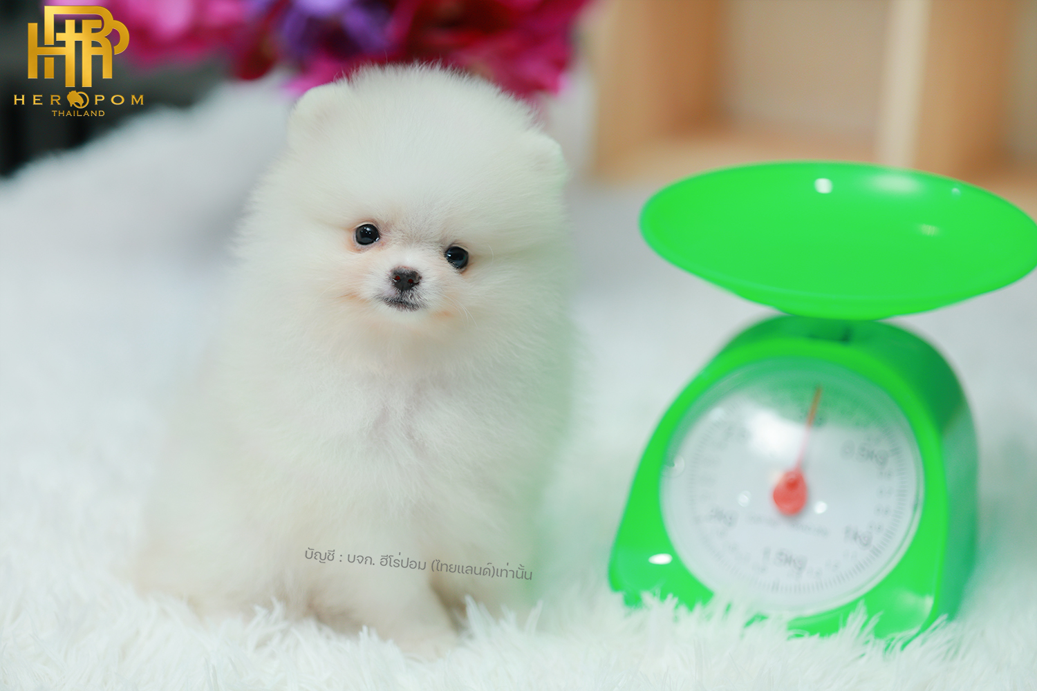 ปอมแท้ ปอมเมอเรเนียน HRF-68125 เพศหญิง สีขาว อายุ 2 เดือน หน้าตาน่ารัก ขาสั้น ขนแน่นฟู ขี้เล่นมาก