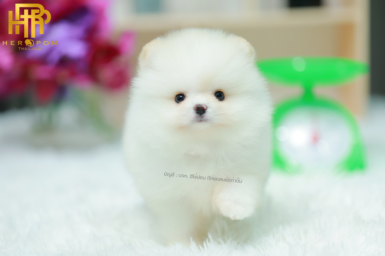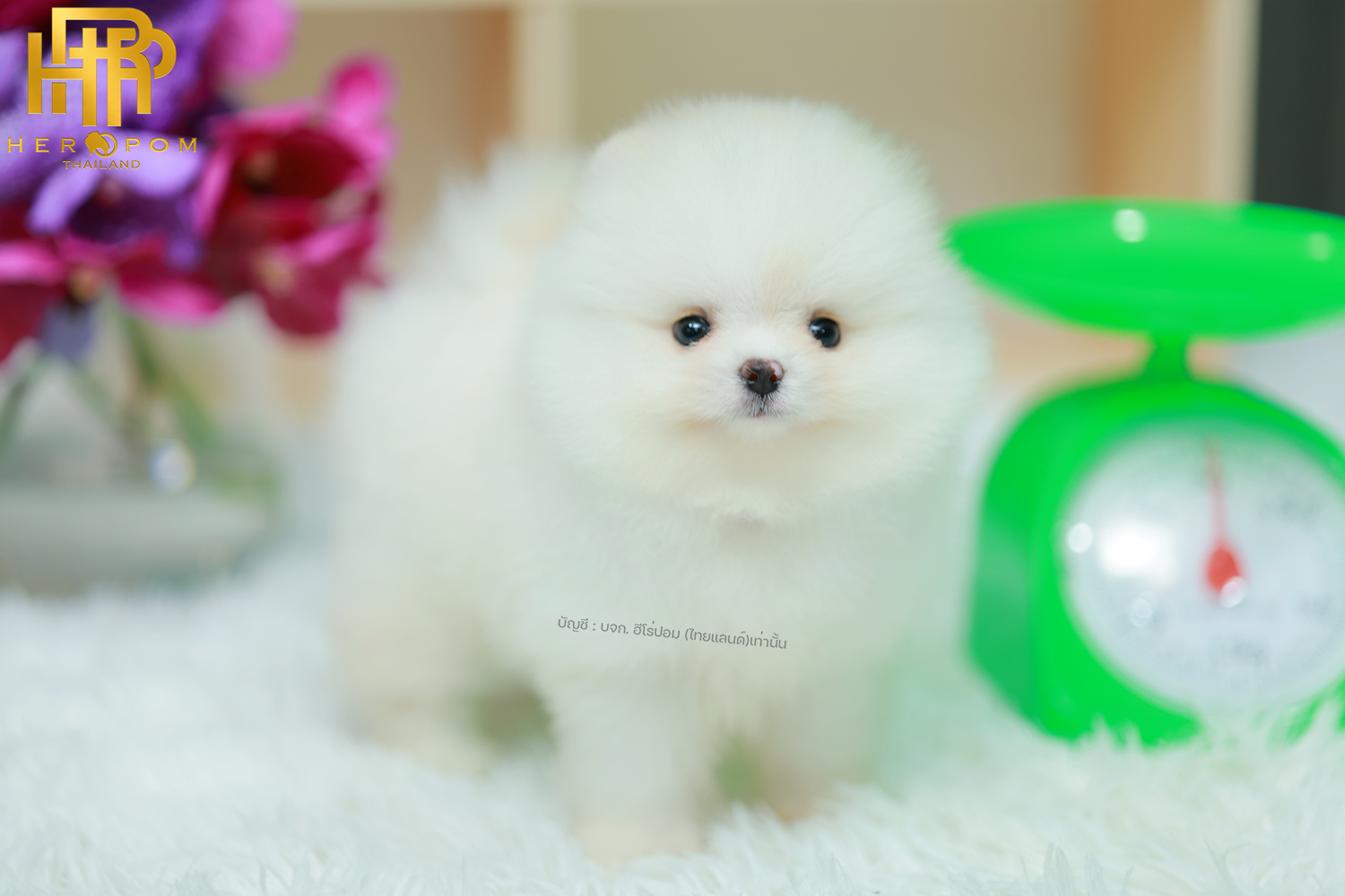 ปอมแท้ ปอมเมอเรเนียน HRF-68137 เพศหญิง สีขาว อายุ 2 เดือน หน้าตาน่ารัก ขาสั้น ขนแน่นฟู ขี้เล่นมาก