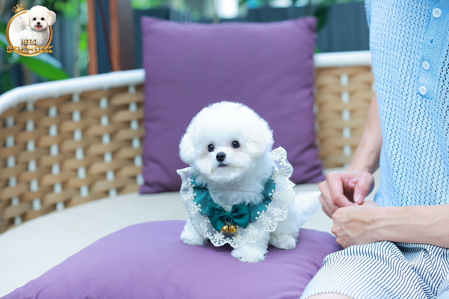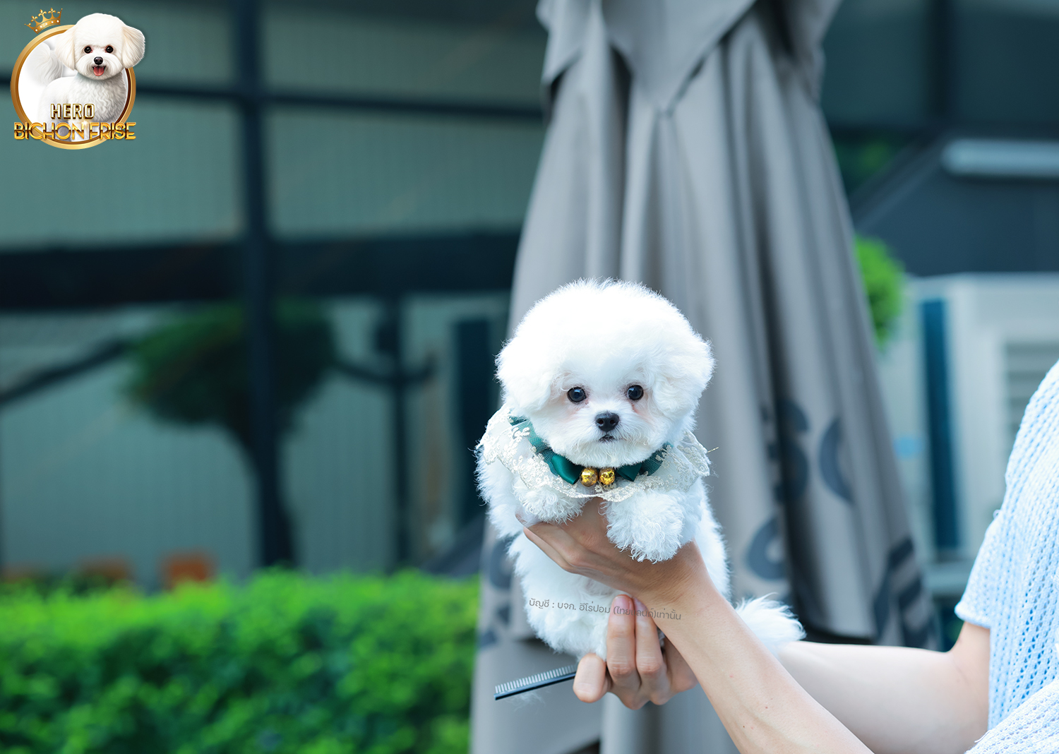 มินิบิชอง BCF-24577 เพศหญิง สีขาว อายุ 2 เดือน หน้าตาน่ารัก ขาสั้น ขนแน่นฟู ขี้เล่นมาก