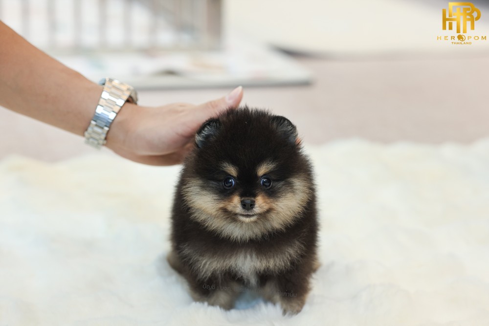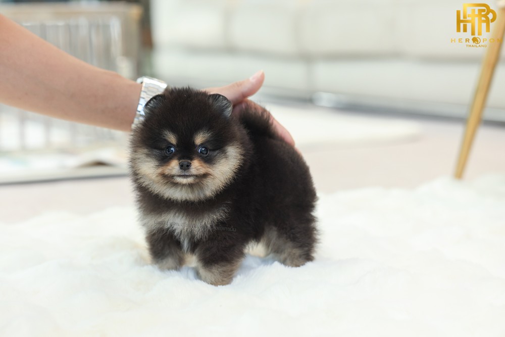 ปอมแท้ ปอมเมอเรเนียน HRM-68761 เพศชาย สีแบล็คแทน อายุ 2 เดือน หน้าตาน่ารัก ขาสั้น ขนแน่นฟู ขี้เล่นมาก