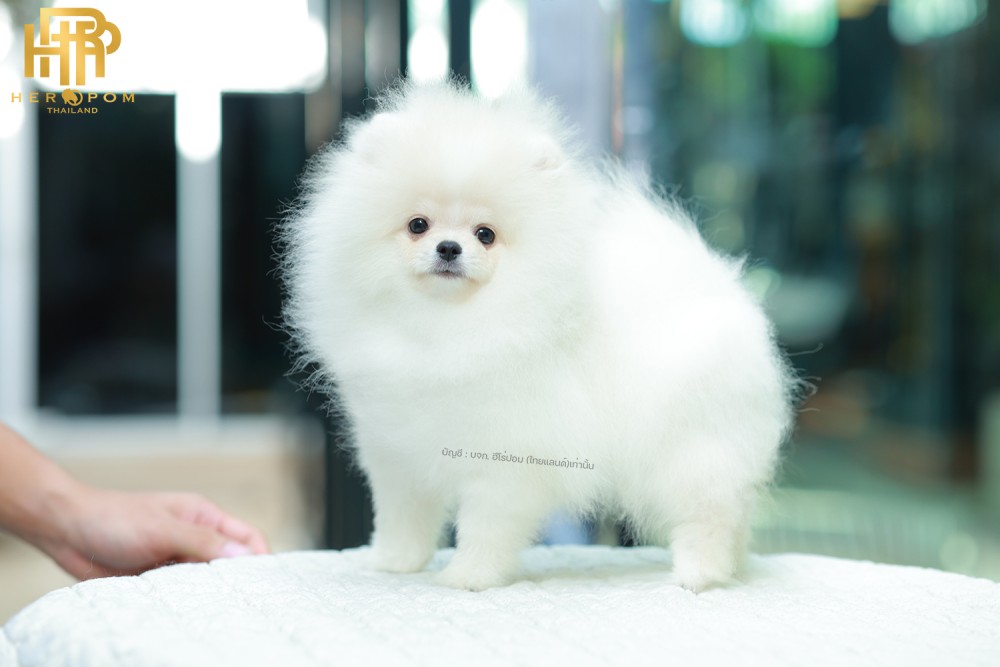 ปอมแท้ ปอมเมอเรเนียน HRF-26222 เพศหญิง สีขาว อายุ 2 เดือน หน้าตาน่ารัก ขาสั้น ขนแน่นฟู ขี้เล่นมาก