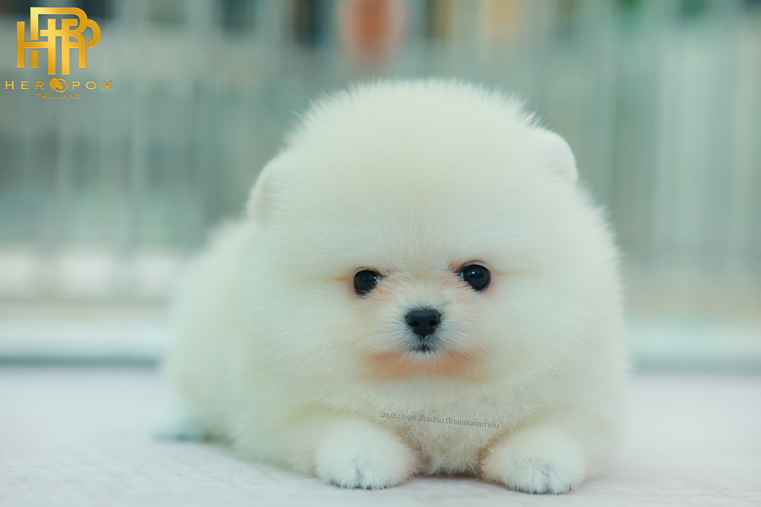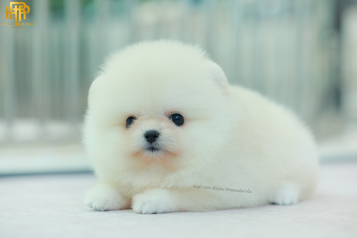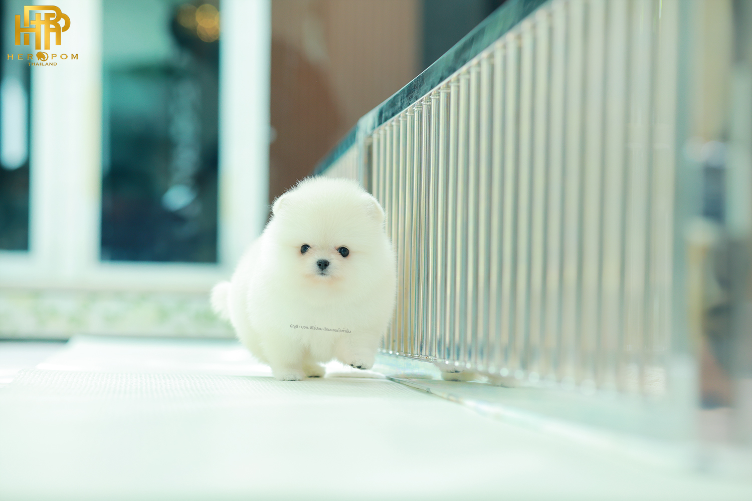 ปอมแท้ ปอมเมอเรเนียน HRF-68766 เพศหญิง สีขาว อายุ 2 เดือน หน้าตาน่ารัก ขาสั้น ขนแน่นฟู ขี้เล่นมาก